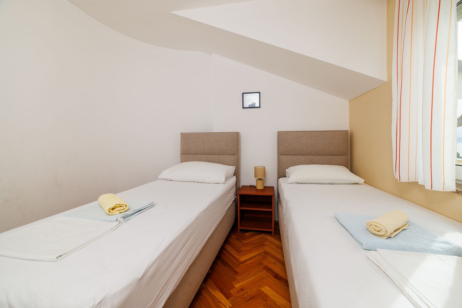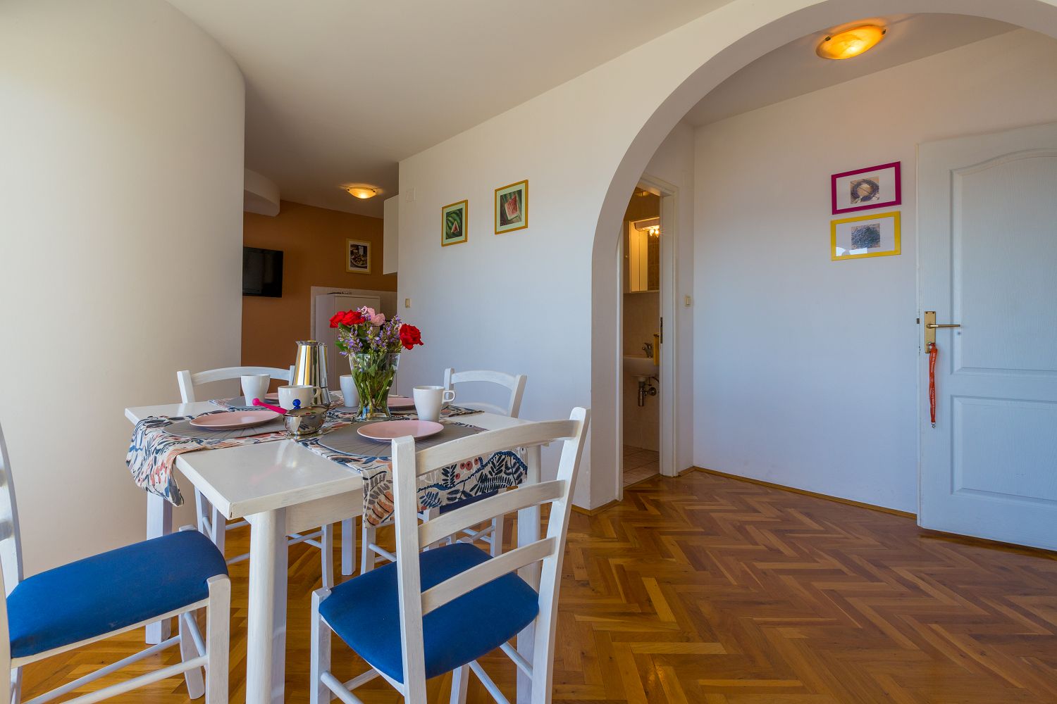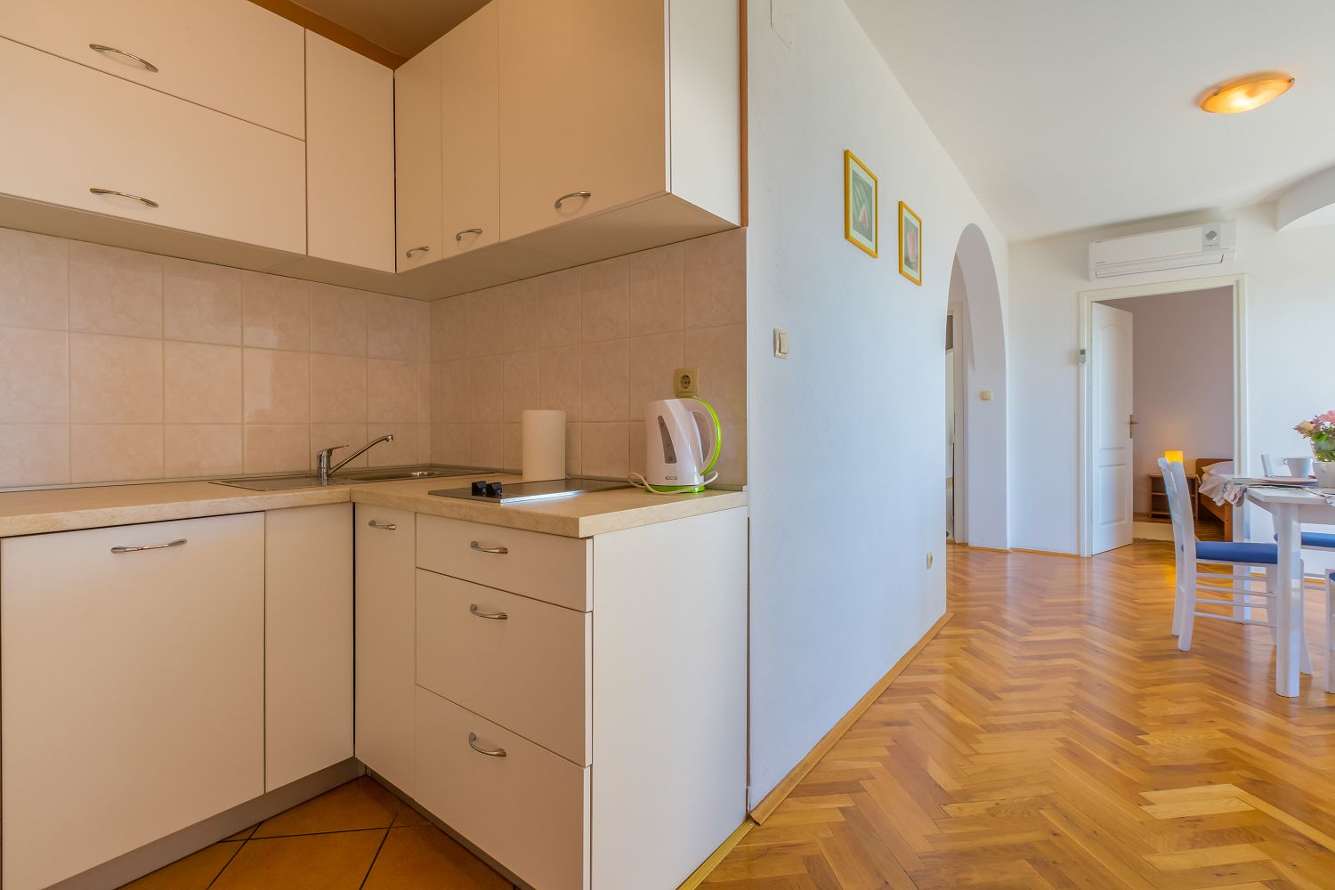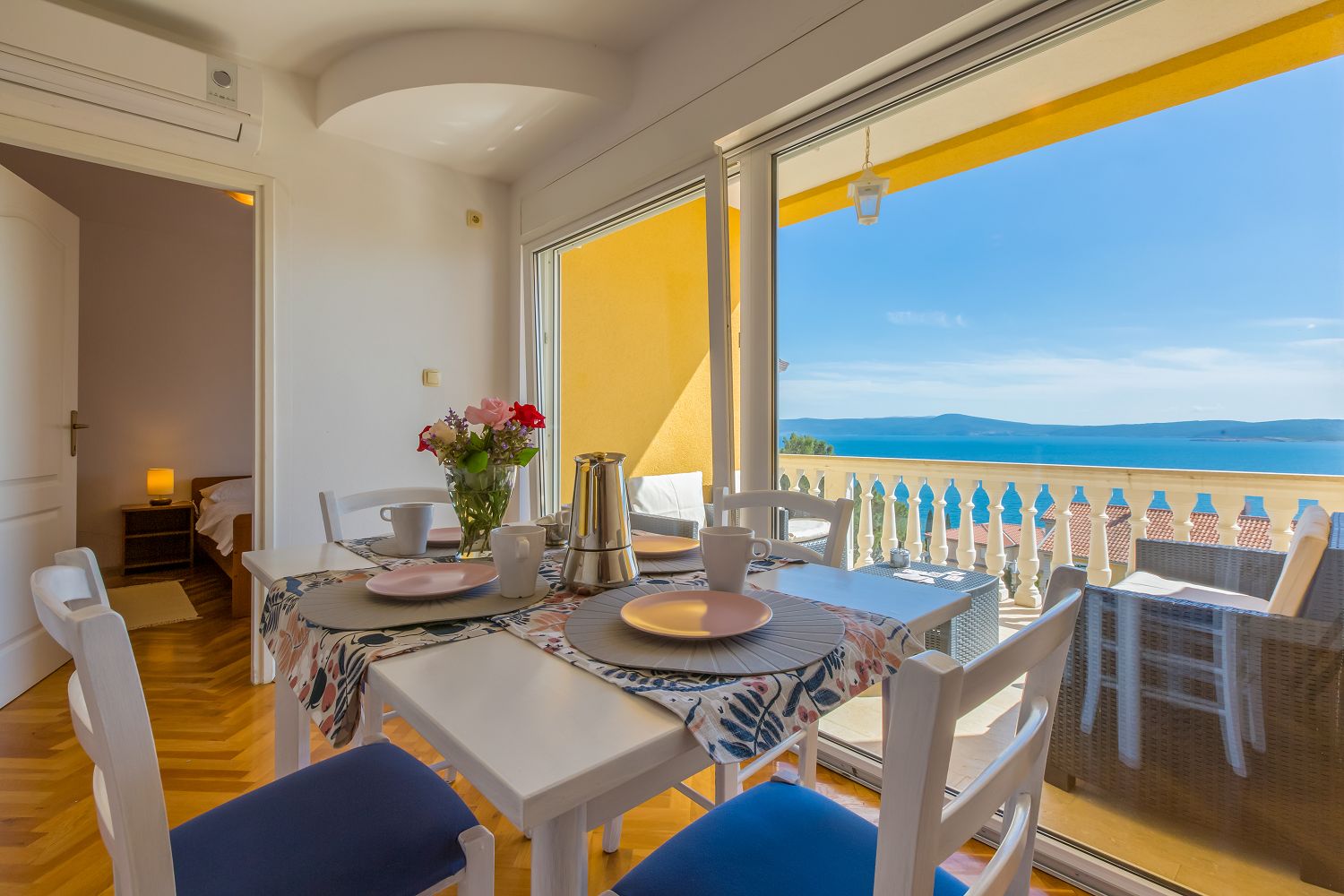 Die 45 m² große Ferienwohnung für vier Personen befindet sich im dritten Stock und verfügt über zwei Schlafzimmer, ein Badezimmer, einen Balkon mit Meerblick, eine Klimaanlage, Satellitenfernsehen, einen Parkplatz auf dem Grundstück und einen Grill. Die Ferienwohnung befindet sich in der Nähe des Stadtzentrums von Crikvenica und eines der schönsten Kiesstrände Crikvenicas. Aufgrund der Nähe zum Zentrum und zum Strand ist sie sehr gut für Gäste geeignet, die ihr Fahrzeug nicht viel nutzen möchten.