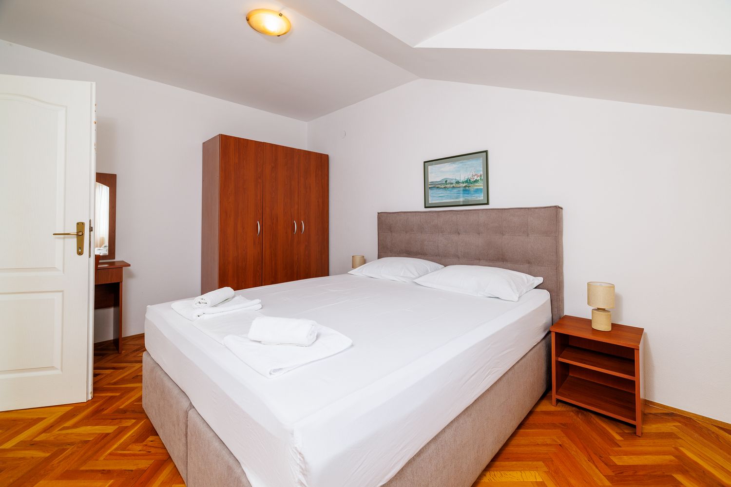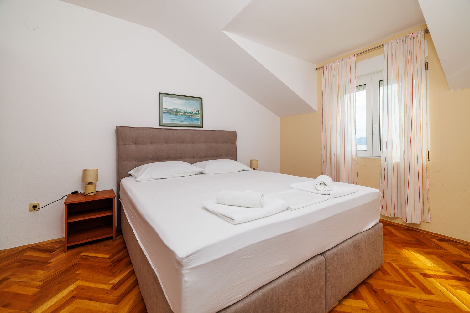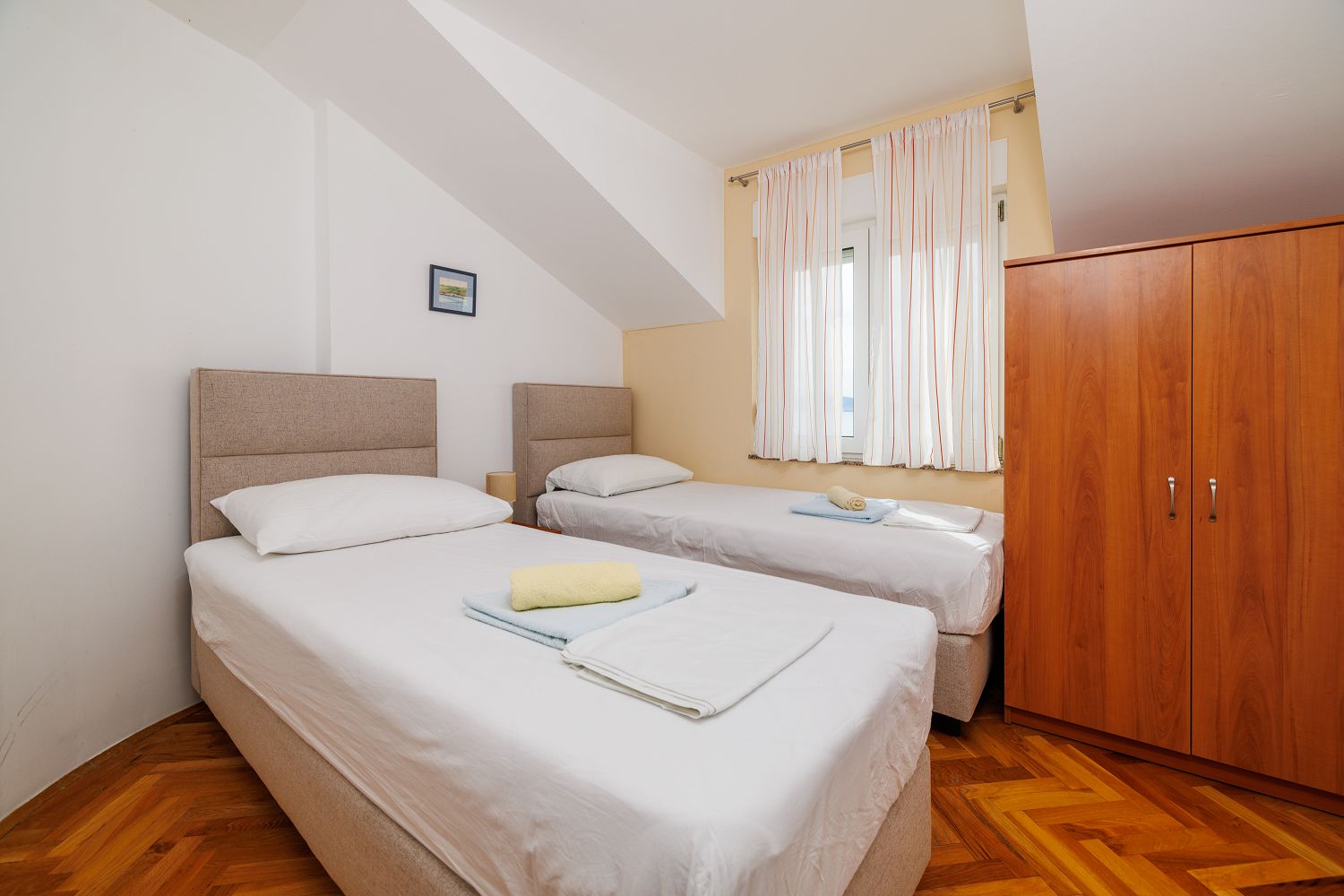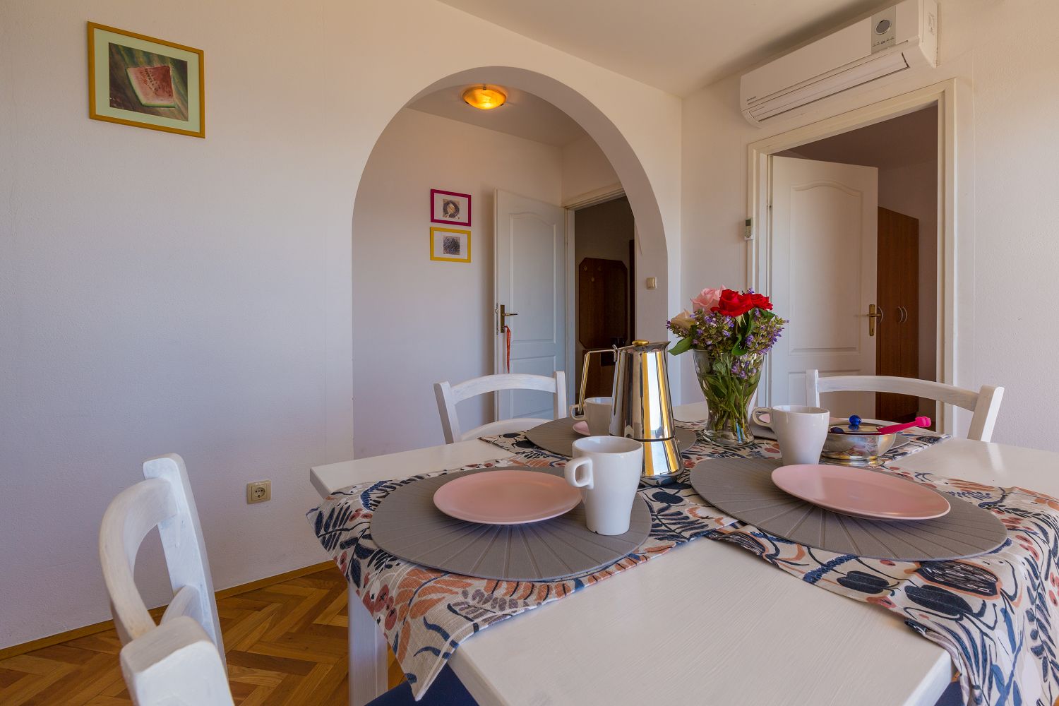 Die 45 m² große Ferienwohnung für vier Personen befindet sich im dritten Stock und verfügt über zwei Schlafzimmer, ein Badezimmer, einen Balkon mit Meerblick, eine Klimaanlage, Satellitenfernsehen, einen Parkplatz auf dem Grundstück und einen Grill. Die Ferienwohnung befindet sich in der Nähe des Stadtzentrums von Crikvenica und eines der schönsten Kiesstrände Crikvenicas. Aufgrund der Nähe zum Zentrum und zum Strand ist sie sehr gut für Gäste geeignet, die ihr Fahrzeug nicht viel nutzen möchten.