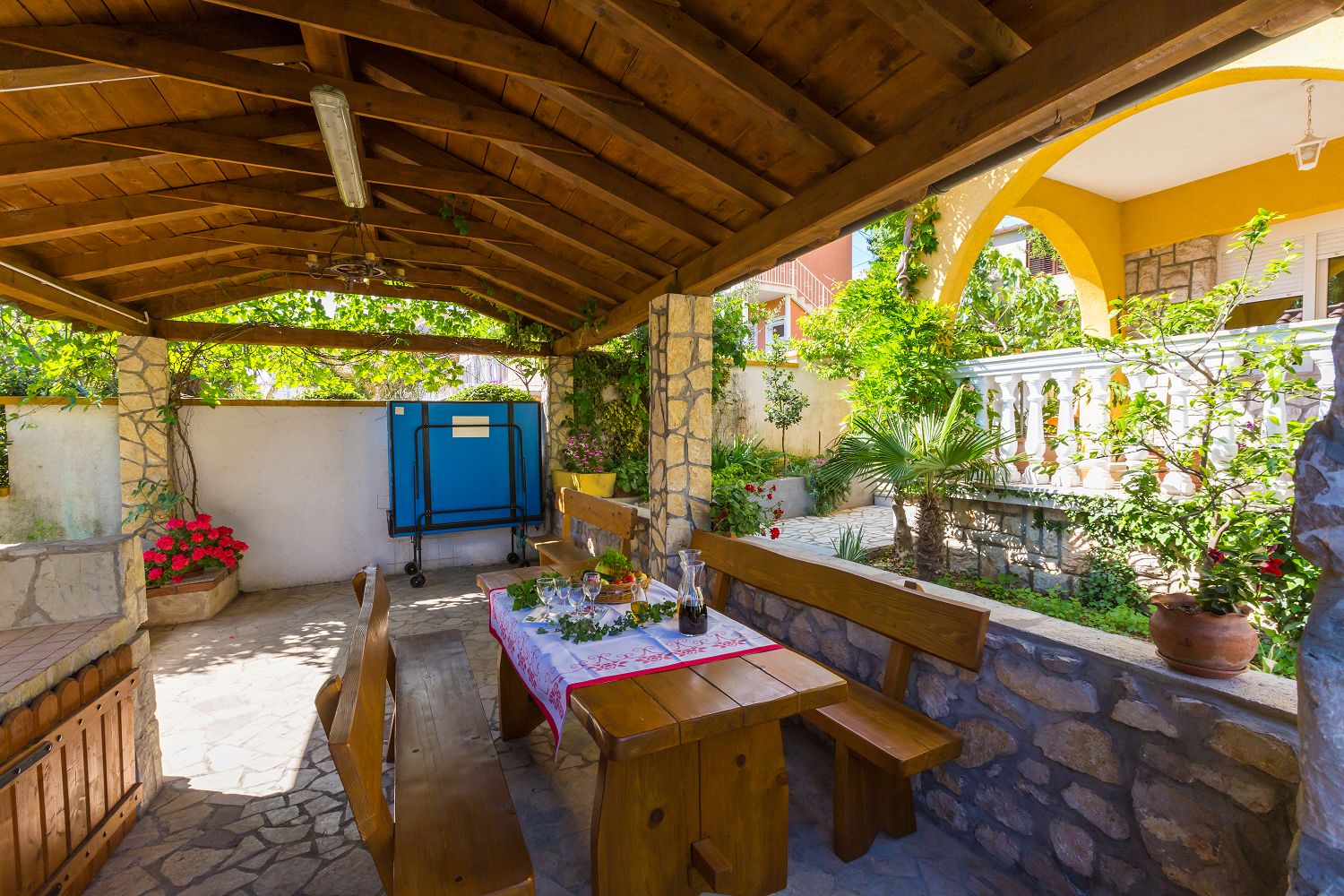 Vom Objekt bis zum Strand sind es 300 Meter und die Entfernung zum Zentrum beträgt 700 Meter. Das nächstgelegenste Lebensmittelgeschäft befindet sich 360 Meter von der Ferienimmobilie entfernt. In 145 Metern ist das umliegende Restaurant zu erreichen.