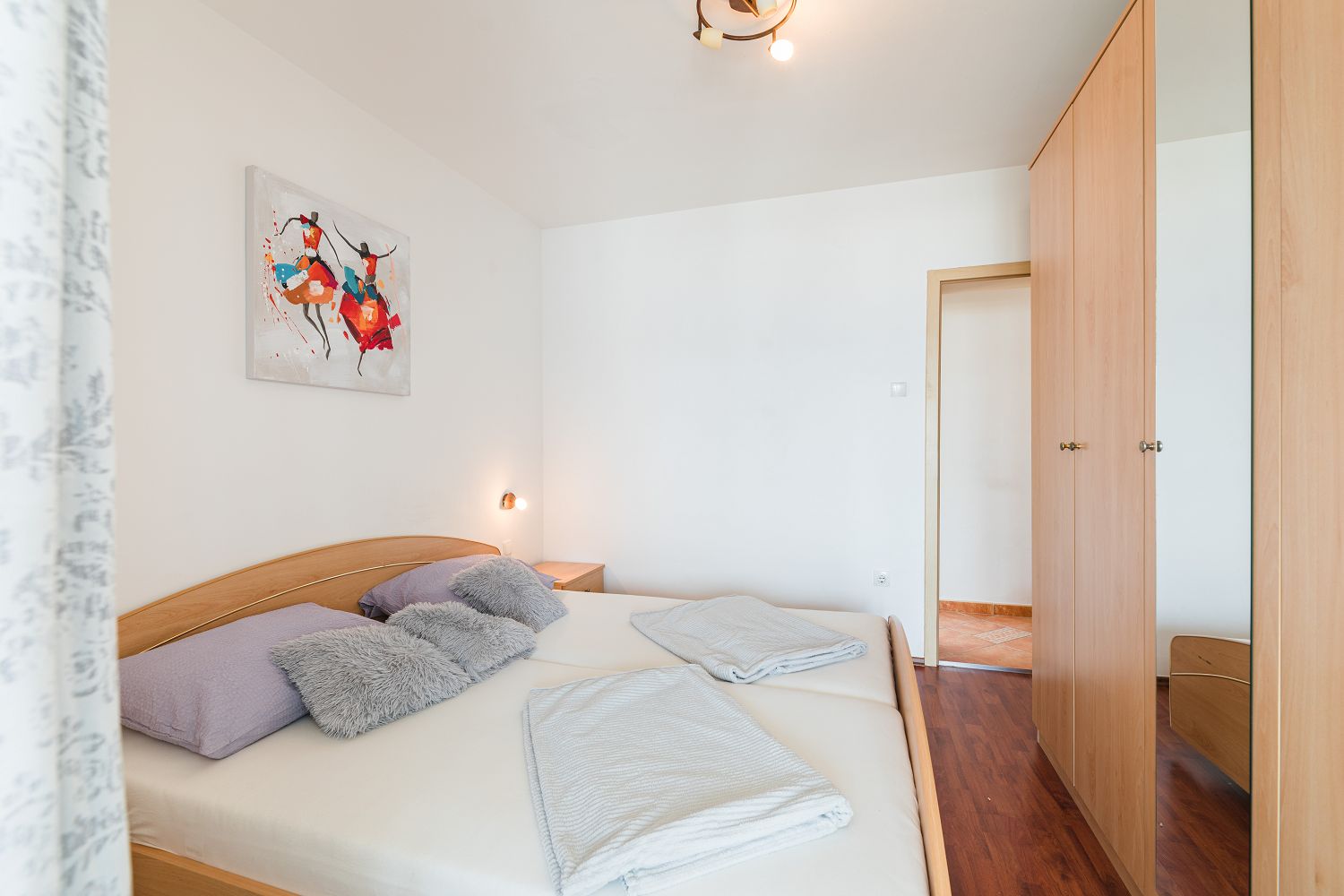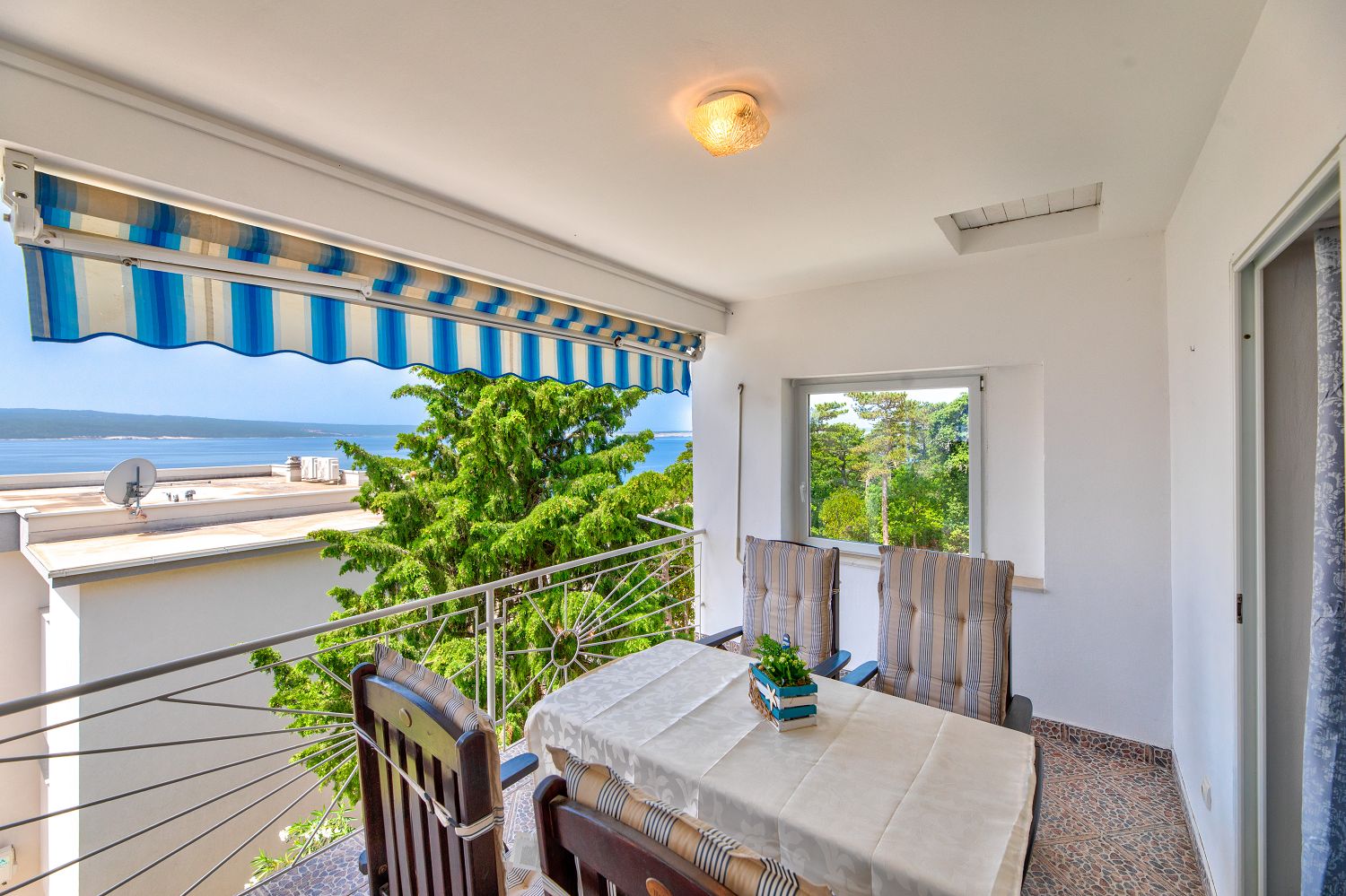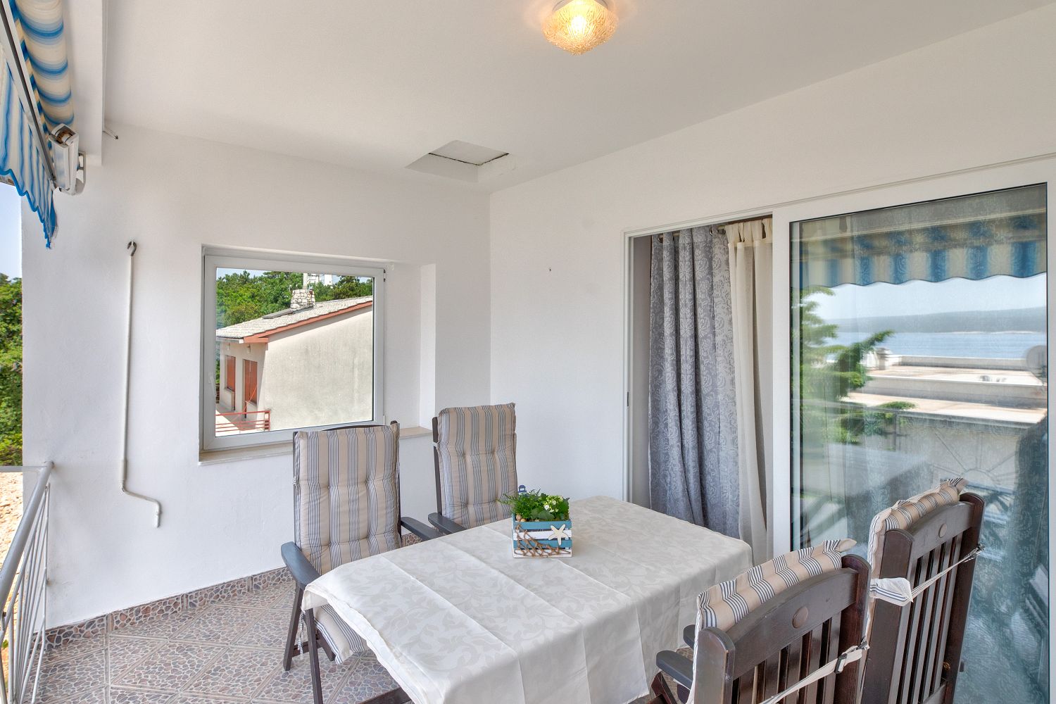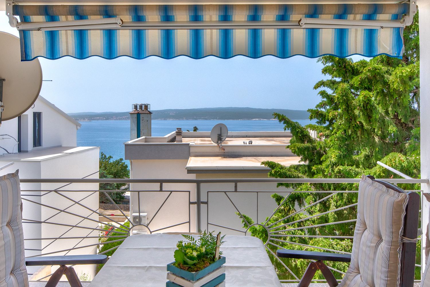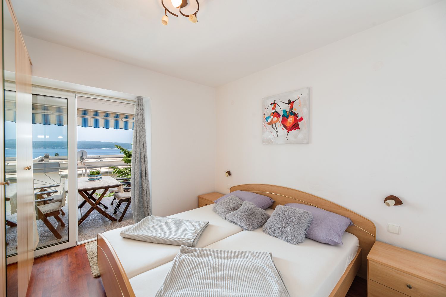 Diese sehr gemütliche und zweckmäßig eingerichtete Ferienwohnung für vier Personen befindet sich in einer wunderschönen Lage, nur wenige Gehminuten vom Meer entfernt. Sie besteht aus einem Wohn-/Esszimmer und einer offenen Küche, zwei Schlafzimmern, einem Badezimmer und einem tollen, überdachten Balkon mit Meerblick. Von einem Schlafzimmer und dem Essbereich aus gelangt man auf den zur Meerseite gelegenen Balkon.
