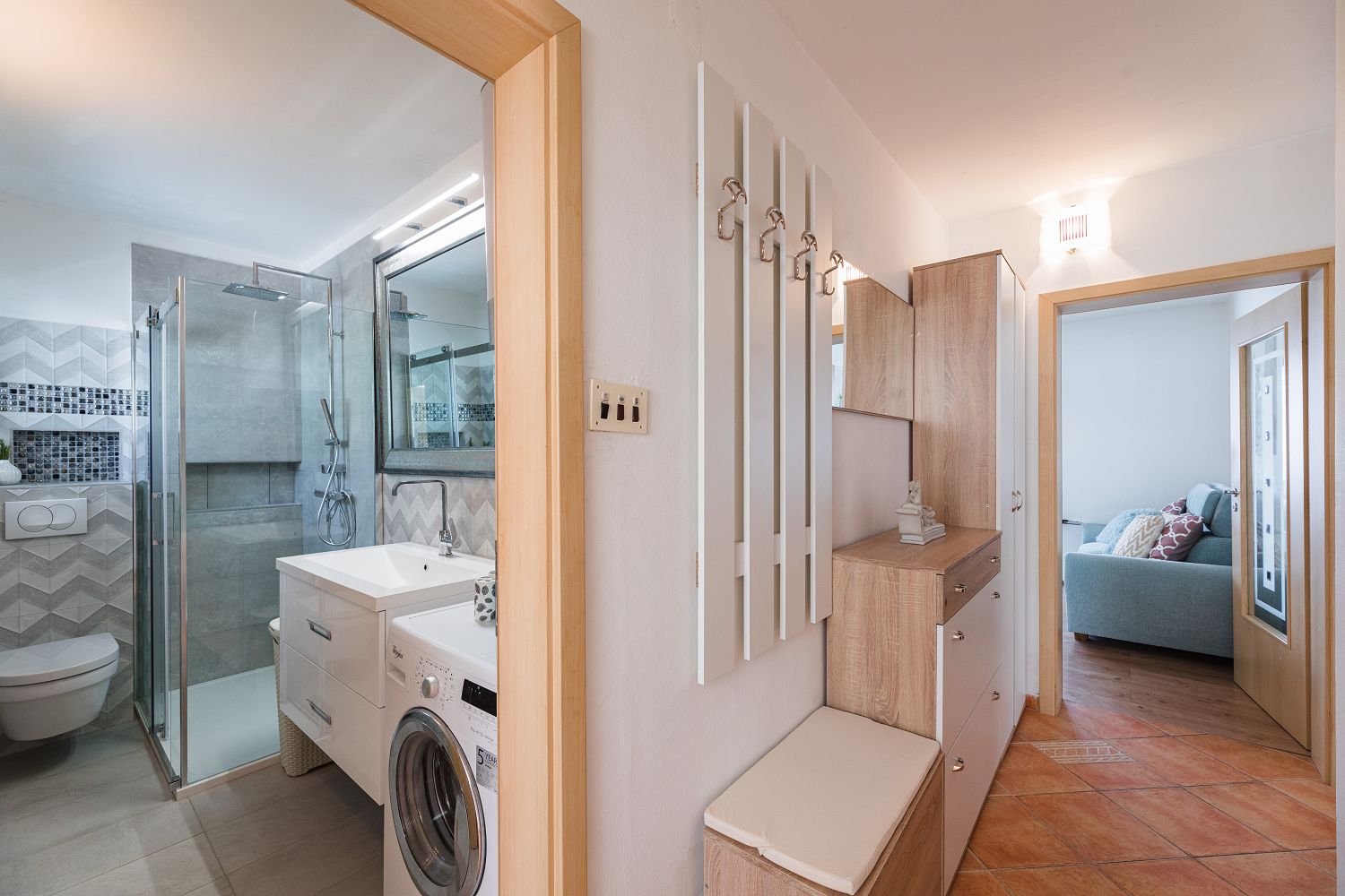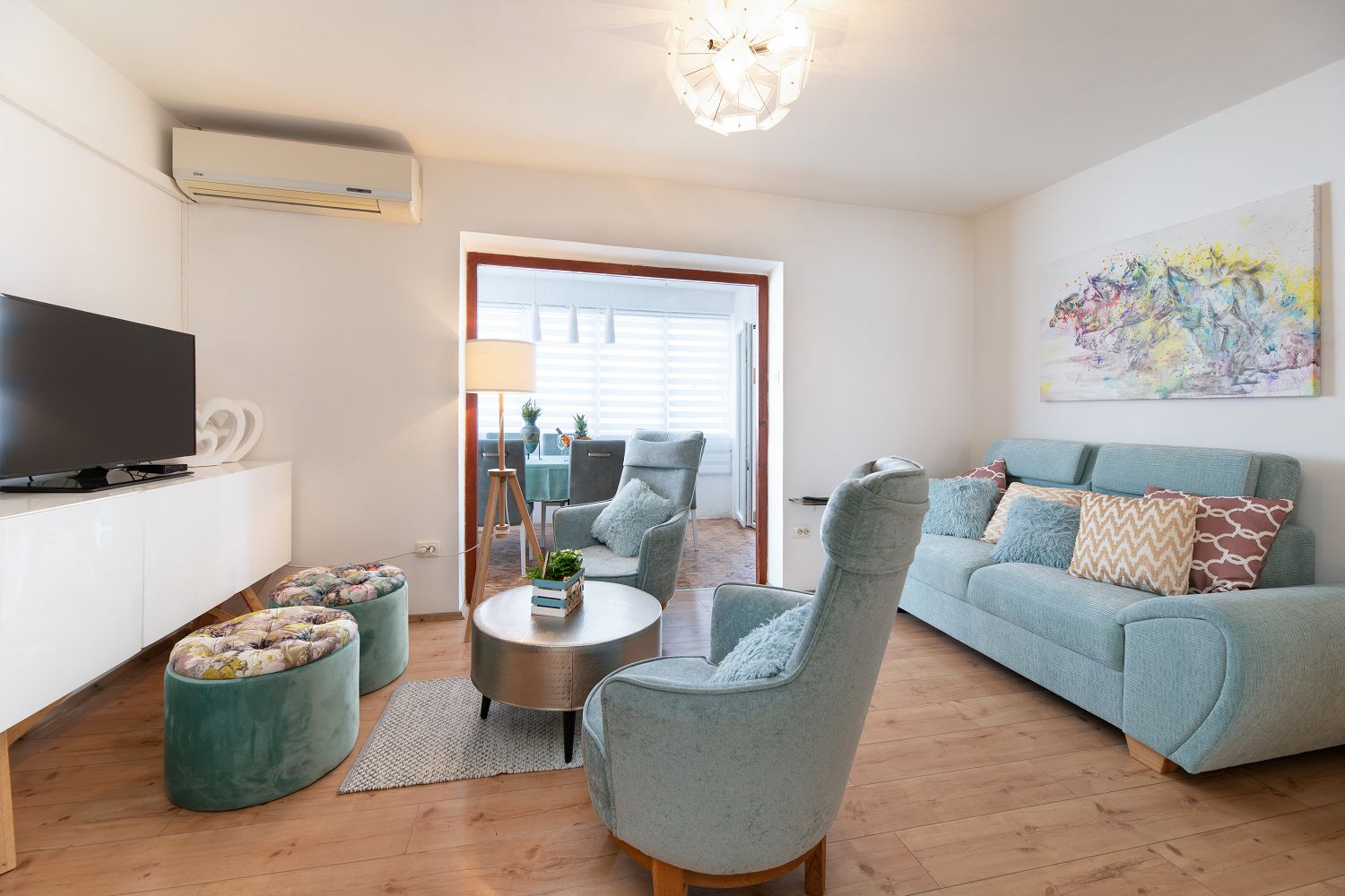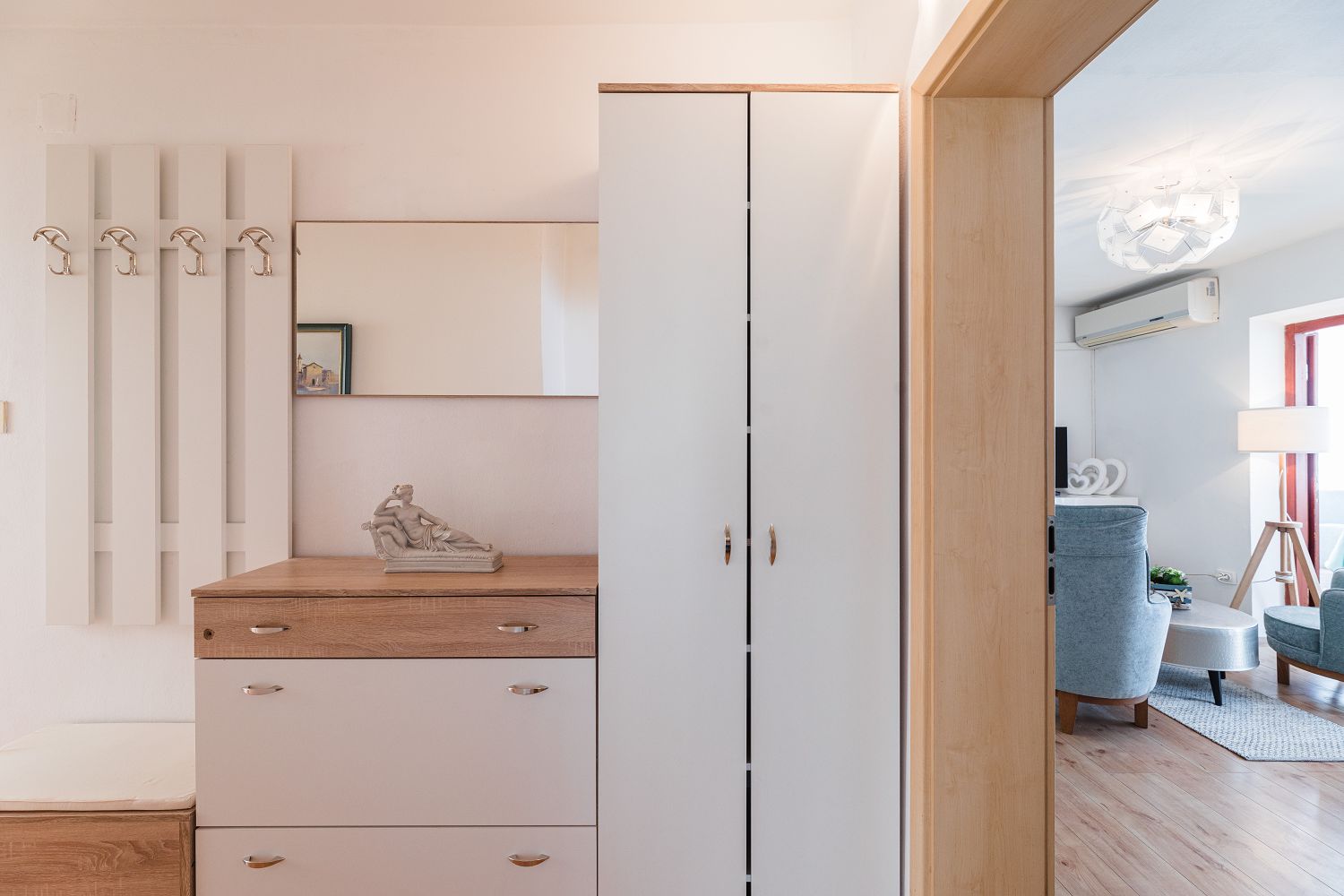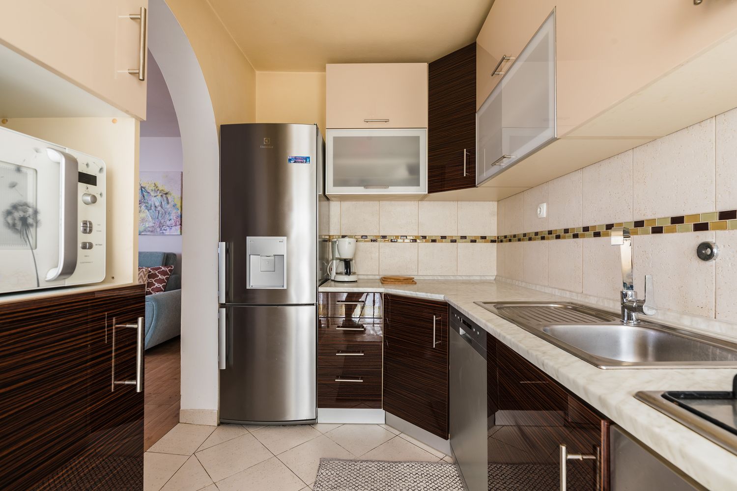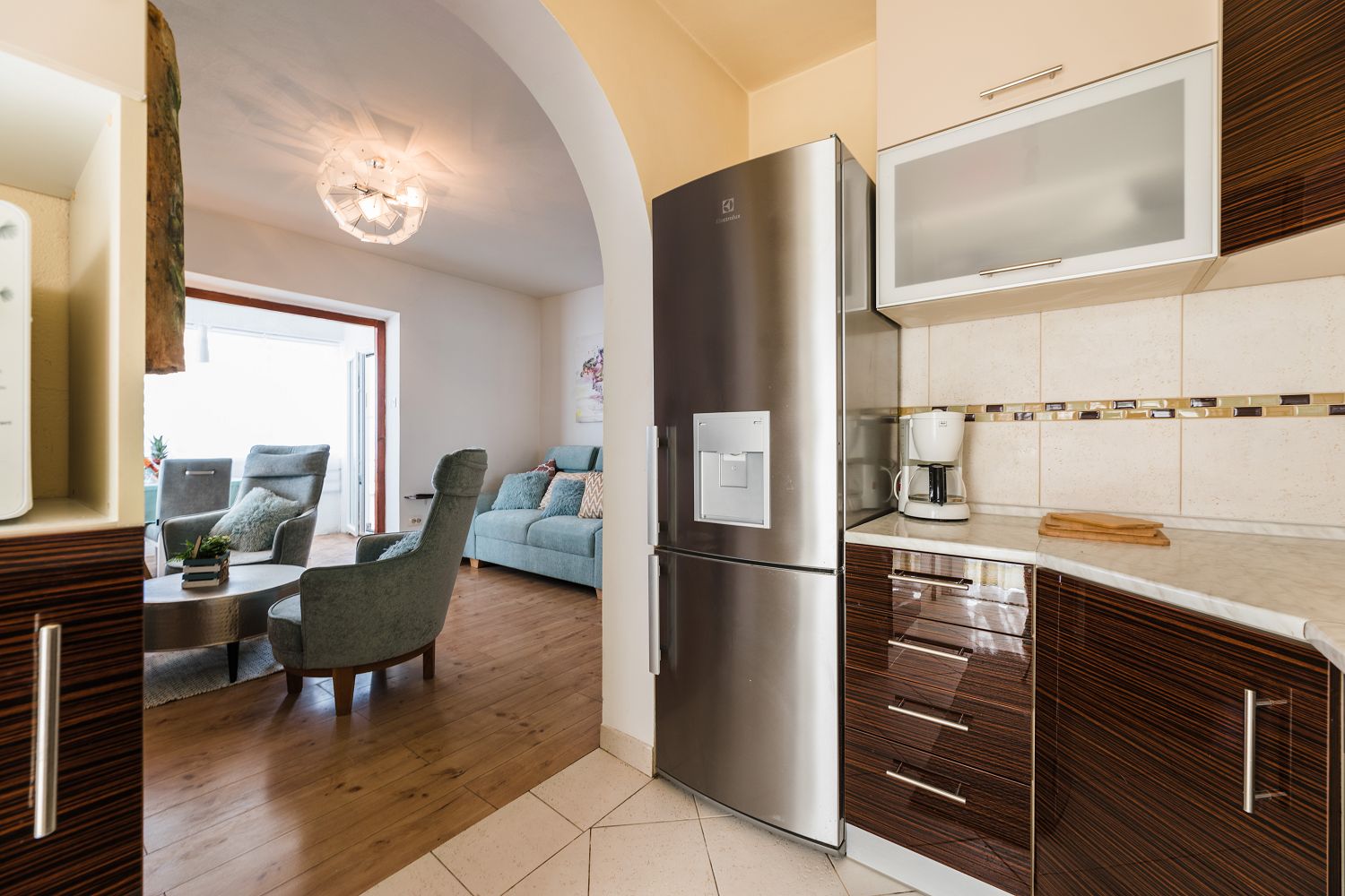 Diese sehr gemütliche und zweckmäßig eingerichtete Ferienwohnung für vier Personen befindet sich in einer wunderschönen Lage, nur wenige Gehminuten vom Meer entfernt. Sie besteht aus einem Wohn-/Esszimmer und einer offenen Küche, zwei Schlafzimmern, einem Badezimmer und einem tollen, überdachten Balkon mit Meerblick. Von einem Schlafzimmer und dem Essbereich aus gelangt man auf den zur Meerseite gelegenen Balkon.