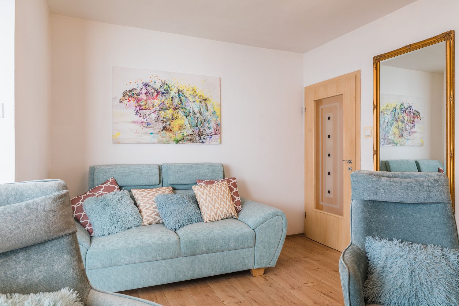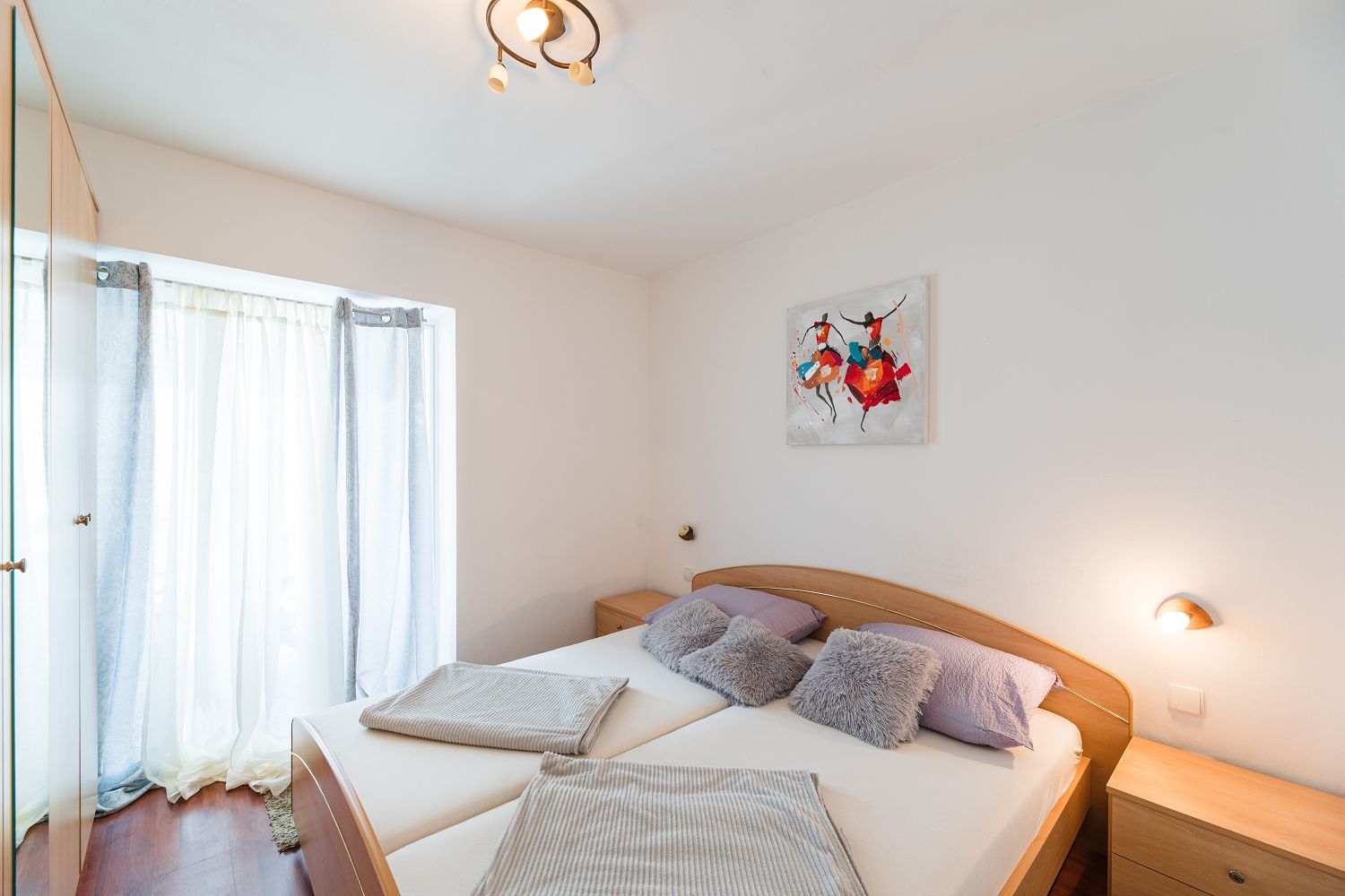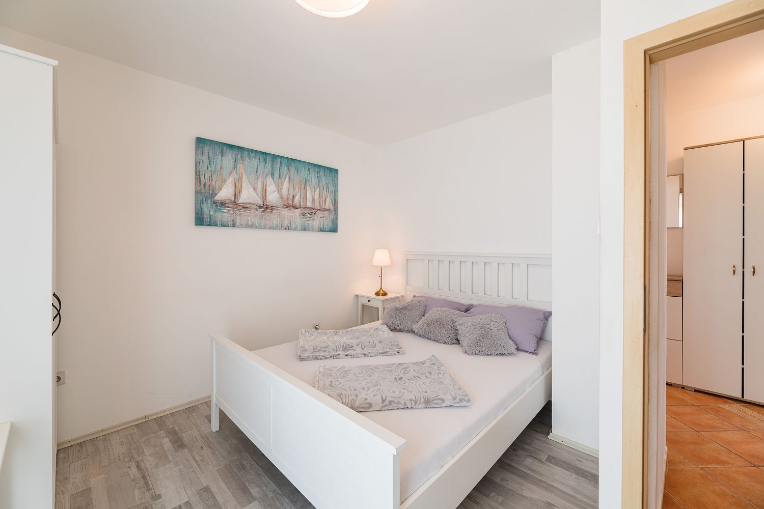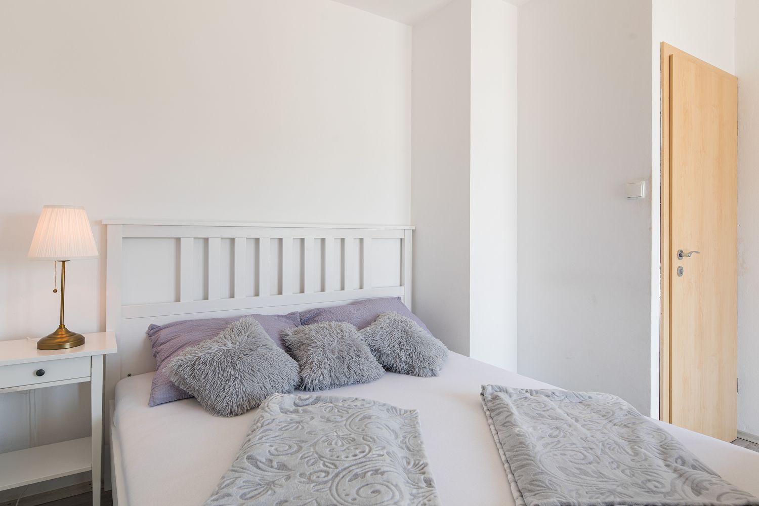 Es stehen noch zwei weitere, kleinere Balkone zur Verfügung. Einer ist vom zweiten Schlafzimmer aus erreichbar, der andere von der Küche. Der kostenfreie Parkplatz befindet sich auf dem Grundstück des Hauses und ist abschließbar. Es ist nur das Mitbringen kleiner Haustiere/Hunde möglich. Bitte geben Sie bei der Buchung die Art des Haustieres an.