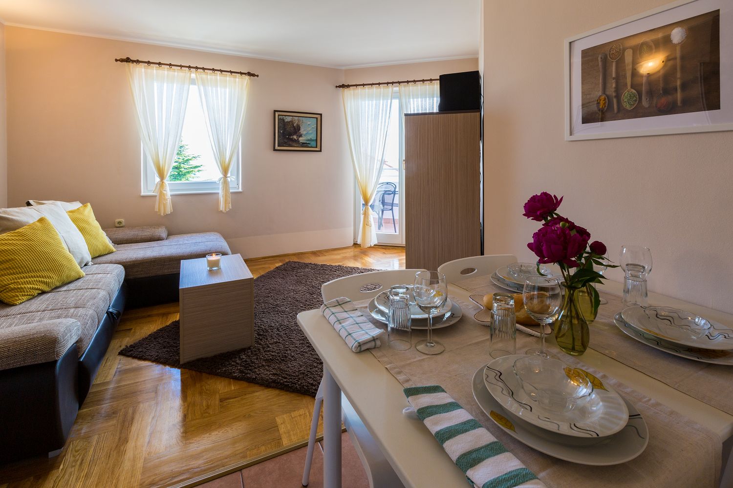 Die im Jahr 2014 neu eingerichtete Ferienwohnung liegt oberhalb des Zentrums und des Sandstrandes von Crikvenica. Der nächste Strand ist der bekannte Sandstrand von Crikvenica. Die Wohnung ist sehr geschmackvoll eingerichtet und verfügt über ein Schlafzimmer, ein Badezimmer, ein Wohn-Esszimmer mit Küche, in dem sich eine ausziehbare Schlafcouch für zwei Personen befindet, sowie einen schönen Balkon mit Meerblick.