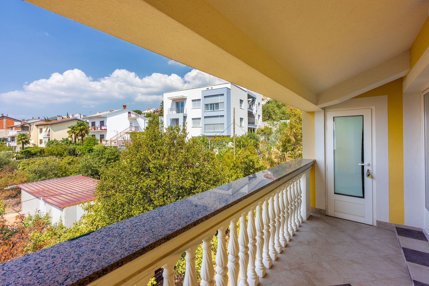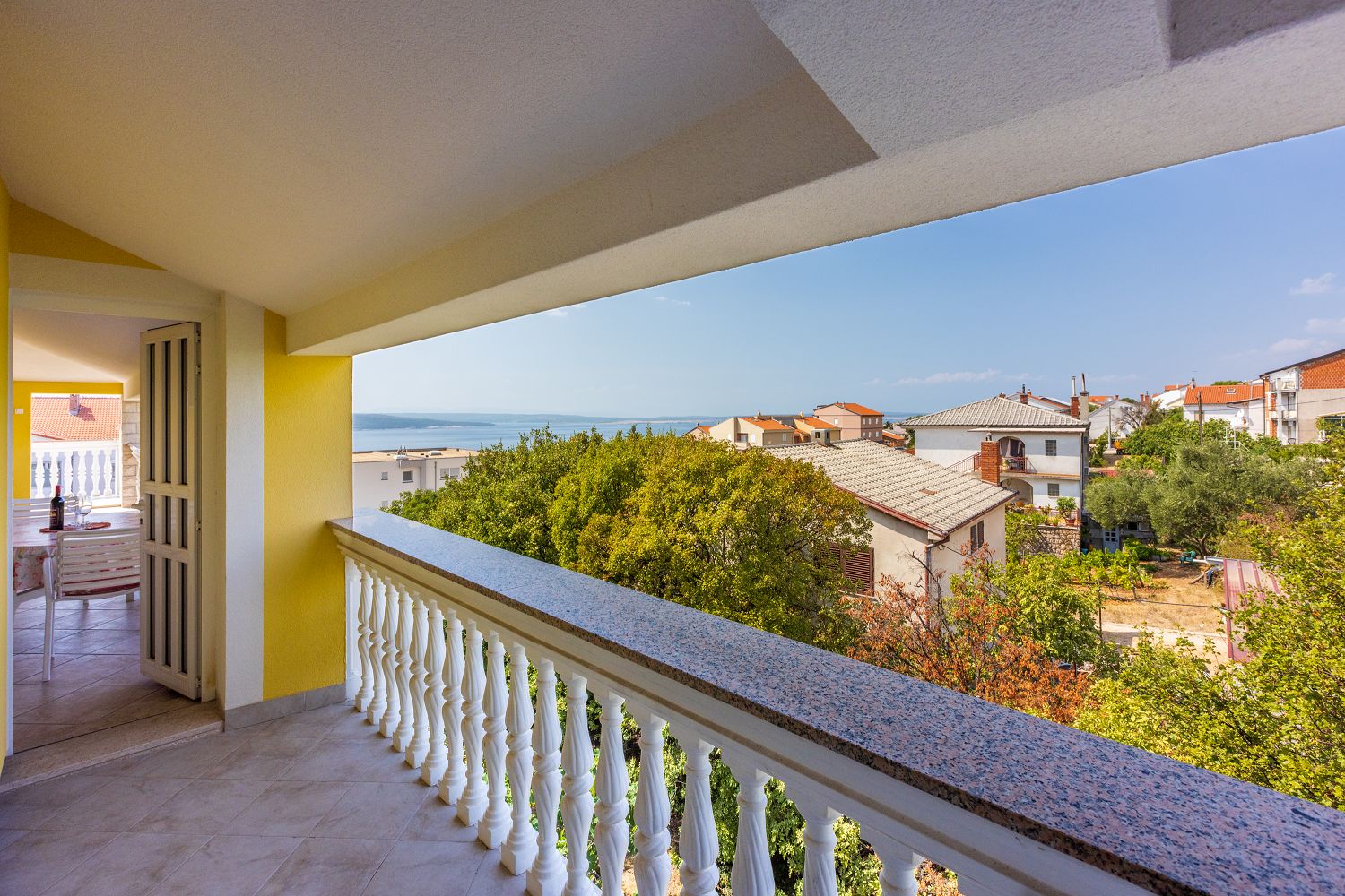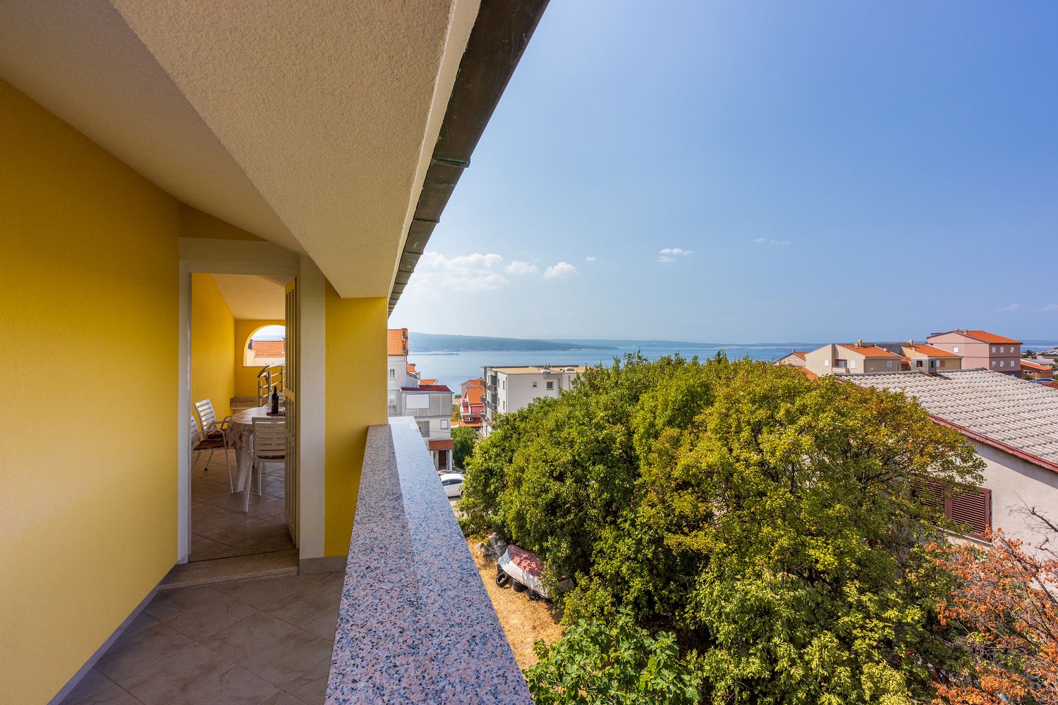 Diese gemütliche Ferienwohnung liegt in einer ruhigen Wohnsiedlung in Crikvenica. Es handelt sich um ein 61 m² großes Apartment im 3. Obergeschoss. Es besteht aus einem Wohn-/Esszimmer und einer Küche, zwei Schlafzimmern, einem Badezimmer, einem überdachten Balkon und einer Terrasse, die als Durchgang genutzt wird.