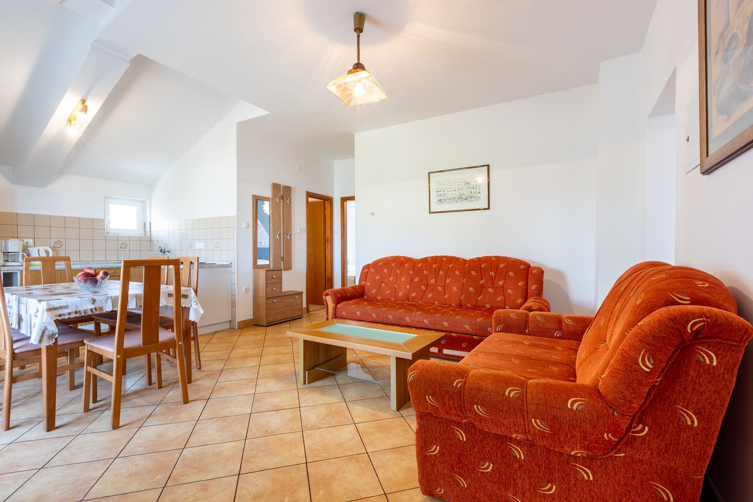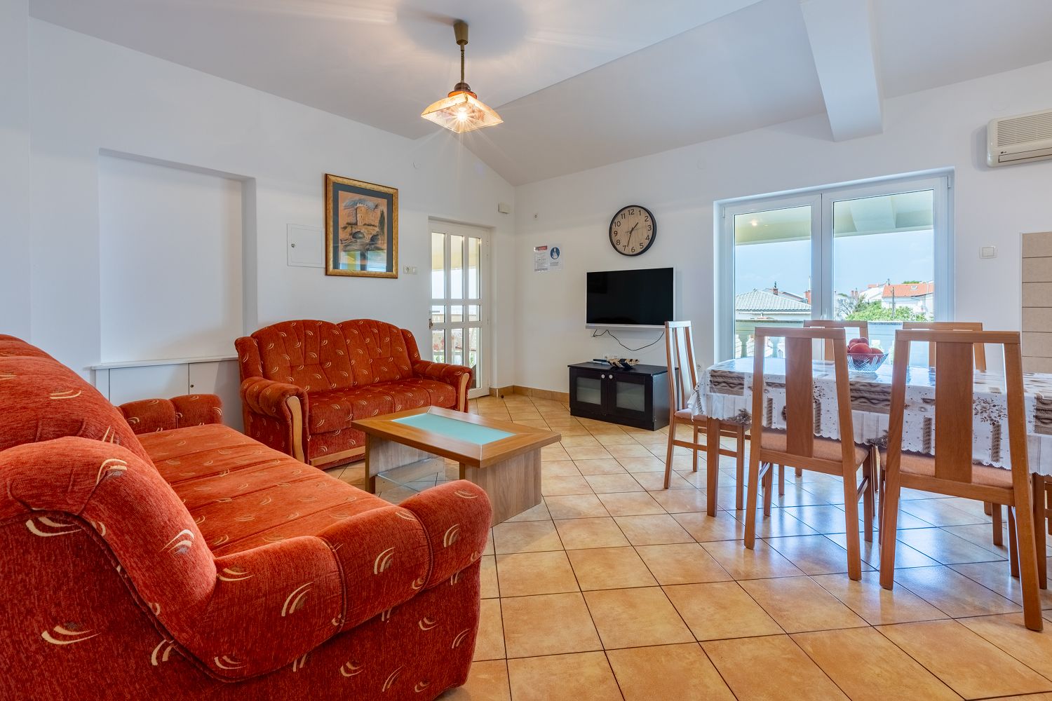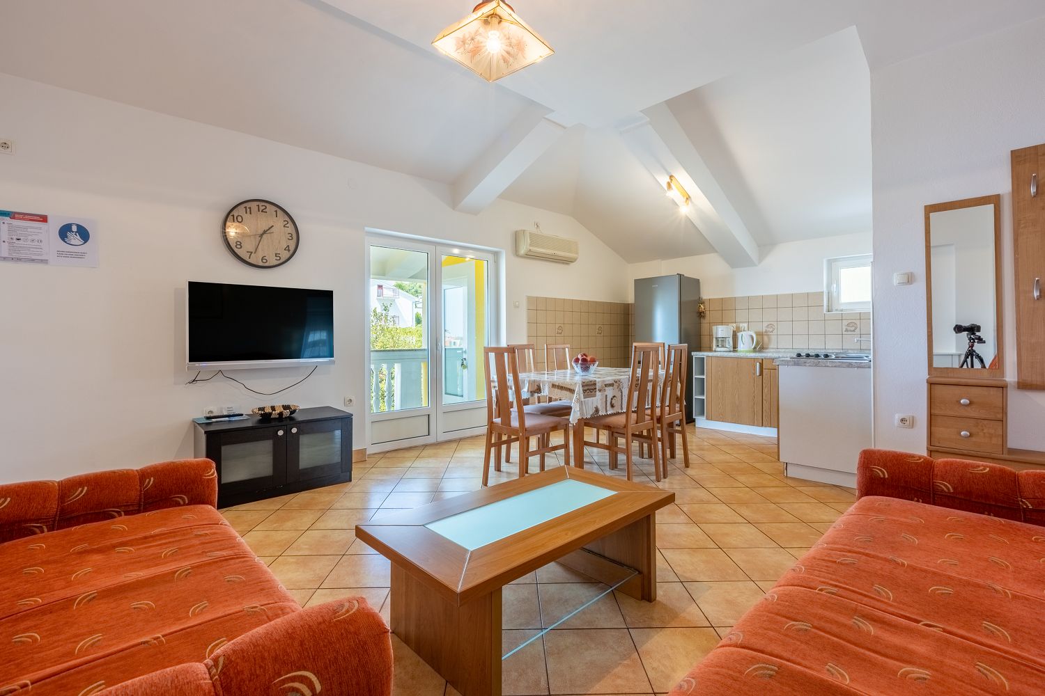 Diese gemütliche Ferienwohnung liegt in einer ruhigen Wohnsiedlung in Crikvenica. Es handelt sich um ein 61 m² großes Apartment im 3. Obergeschoss. Es besteht aus einem Wohn-/Esszimmer und einer Küche, zwei Schlafzimmern, einem Badezimmer, einem überdachten Balkon und einer Terrasse, die als Durchgang genutzt wird.