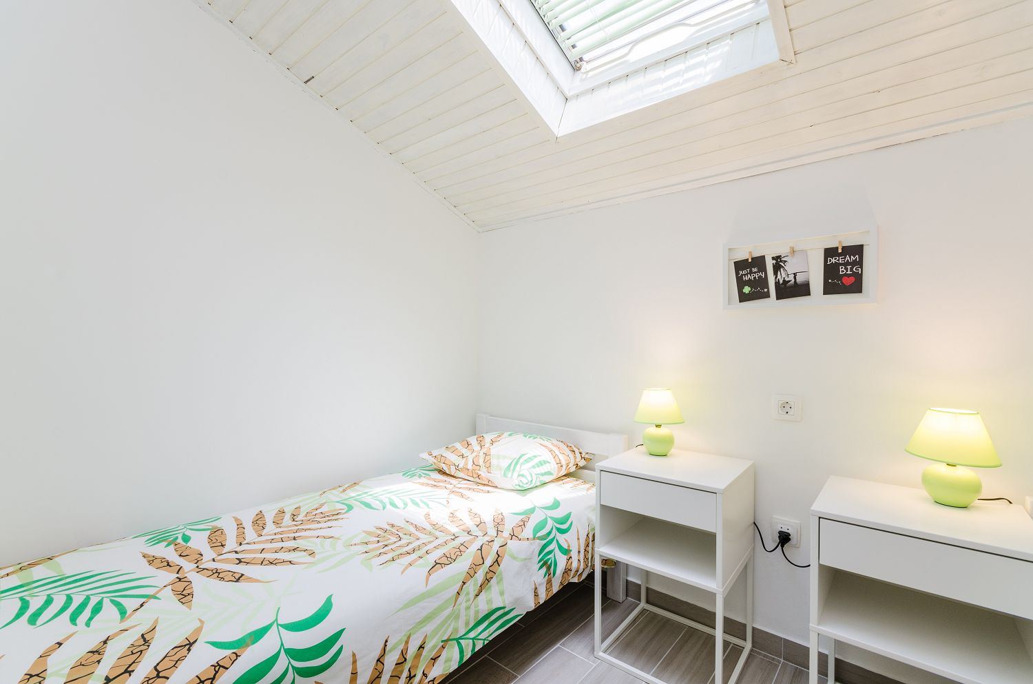 Die 40 m² große Unterkunft im 3. Stock teilt sich in zwei Schlafzimmer, ein Badezimmer und ein Esszimmer mit Küche auf. Sie ist mit Klimaanlage, Mikrowelle, Satellitenfernsehen, WLAN-Internetzugang und Grillmöglichkeit ausgestattet. Vom Objekt bis zum Strand sind es 600 Meter und die Entfernung zum Zentrum beträgt 1,1 km. Das nächstgelegenste Lebensmittelgeschäft befindet sich 600 Meter von der Ferienimmobilie entfernt. In 300 Metern ist das umliegende Restaurant zu erreichen.