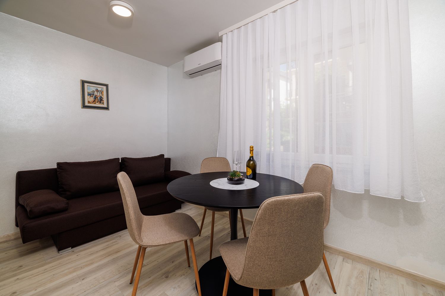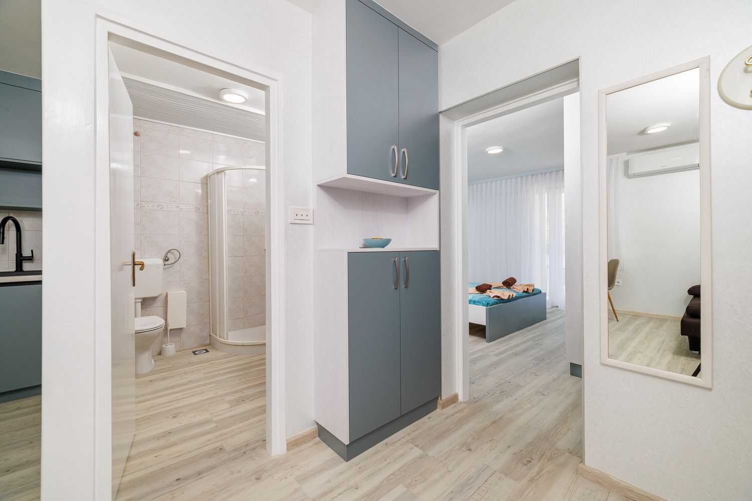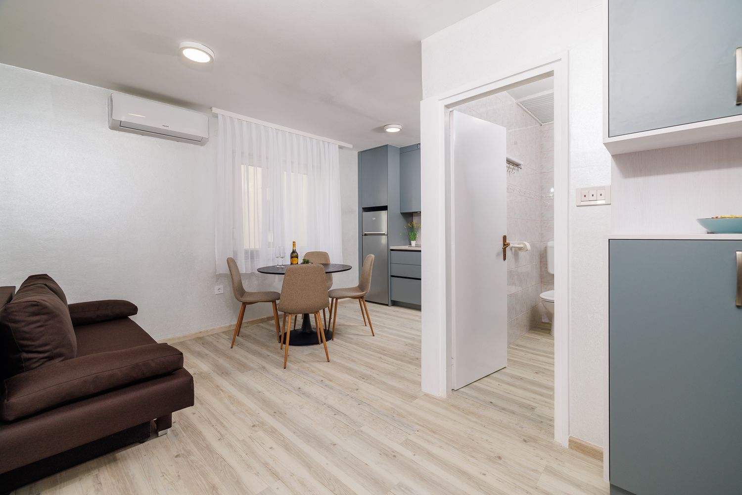 Diese charmante Ferienwohnung für zwei bis drei Personen befindet sich an der wunderschönen Strandpromenade des beliebten Ferienorts Crikvenica. Die Lage könnte nicht besser sein. Nur wenige Schritte trennen Sie vom glitzernden Meer und der lebendigen Atmosphäre der Strandpromenade. Vom Objekt bis zum Strand sind es 50 Meter und die Entfernung zum Zentrum beträgt 500 Meter. Das nächstgelegenste Lebensmittelgeschäft befindet sich 500 Meter von der Ferienimmobilie entfernt. In 20 Metern ist das umliegende Restaurant zu erreichen.