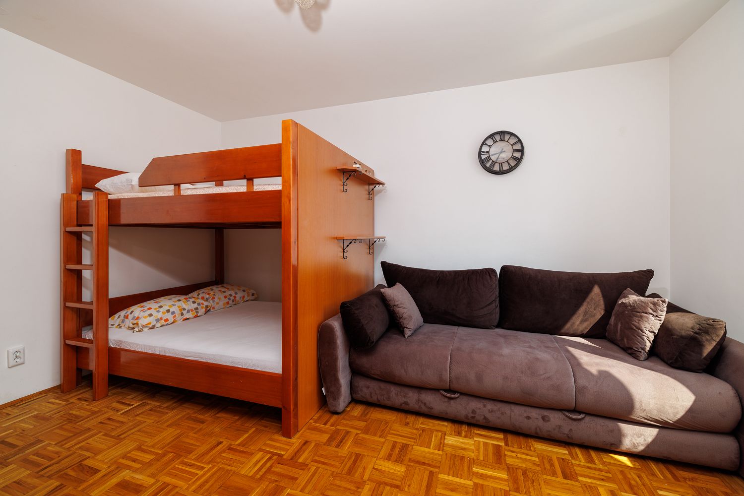 Willkommen in Ihrem gemütlichen Studioapartment im wunderschönen Crikvenica in Kroatien! Das charmante Apartment bietet Platz für bis zu vier Personen und ist ideal für Paare, kleine Familien oder Freundesgruppen, die einen unvergesslichen Urlaub an der Adria verbringen möchten. Ihr Studioapartment liegt nur 250 Meter vom traumhaften Sandstrand entfernt – perfekt für entspannte Tage am Meer. Das Ortszentrum von Crikvenica mit einer Vielzahl an Restaurants, Cafés und Einkaufsmöglichkeiten erreichen Sie in nur sieben Gehminuten. Ein Lebensmittelgeschäft ist lediglich 100 Meter entfernt und ein kleines Café für Ihren morgendlichen Kaffee befindet sich im Erdgeschoss des Hauses. Das Apartment verfügt über zwei Schlafmöglichkeiten: ein Etagenbett mit den Maßen 140 cm x 180 cm sowie eine ausziehbare Schlafcouch, die im ausgezogenen Zustand 160 cm x 200 cm misst.