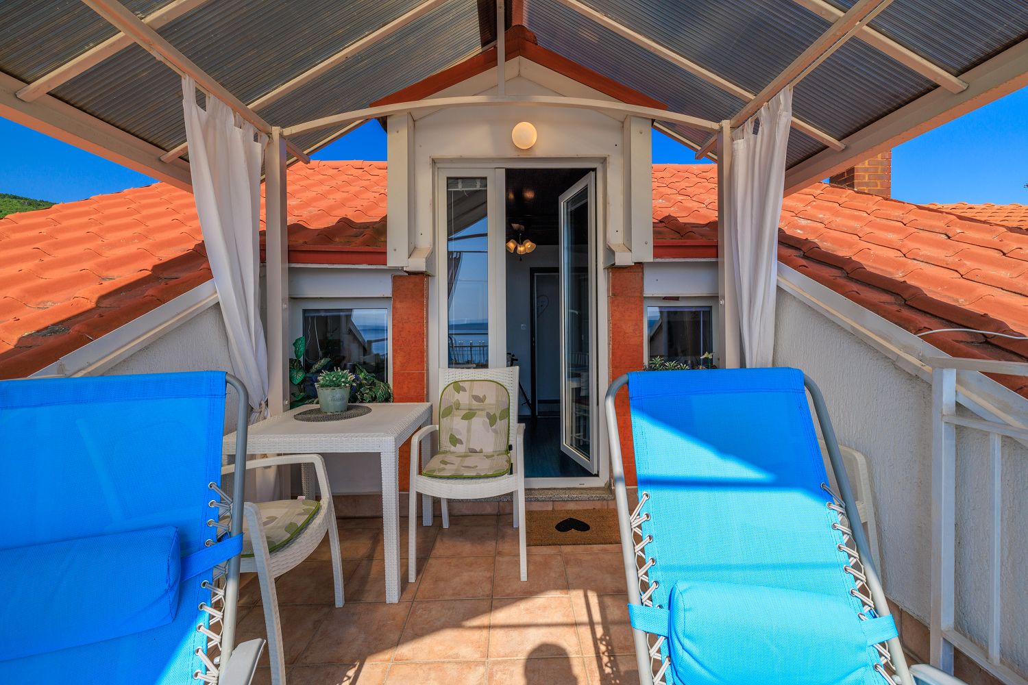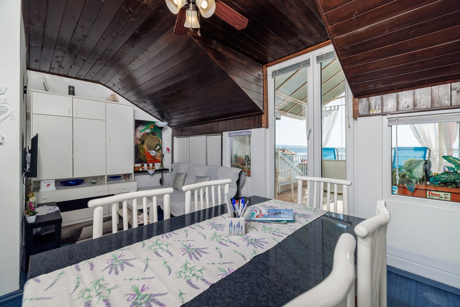Dieses charmante Apartment im Badeort Crikvenica bietet alles, was Sie für einen unvergesslichen Urlaub benötigen. Es ist perfekt für eine Familie mit einem Kind und liegt in ausgezeichneter Lage oberhalb des beliebten Sandstrandes von Crikvenica. Nur 450 Meter trennen Sie von einem großen Strand mit zahlreichen Einrichtungen für Kinder und Erwachsene. Die Wohnung besteht aus einem gemütlichen Wohn- und Esszimmer, das mit einer voll ausgestatteten Küche verbunden ist. Ein komfortables Schlafzimmer sorgt für erholsame Nächte und das moderne Badezimmer bietet alles, was Sie für Ihren Aufenthalt benötigen. Der großzügige Balkon mit traumhaftem Meerblick lädt zum Entspannen und Genießen ein. Für zusätzlichen Komfort sorgen eine Klimaanlage im Flur und ein Ventilator im Wohnbereich, die stets für eine angenehme Temperatur sorgen. WLAN-Internet steht Ihnen ebenfalls zur Verfügung und eine Waschmaschine bietet zusätzlichen Komfort. Ein Parkplatz auf dem Grundstück ermöglicht unkompliziertes und bequemes Parken. Genießen Sie die perfekte Kombination aus Komfort, Ruhe und einer erstklassigen Lage in Crikvenica! Buchen Sie noch heute und erleben Sie unvergessliche Momente am Meer! Die Ferienwohnung liegt in einem ruhigen Wohnviertel oberhalb des Sandstrandes von Crikvenica.
