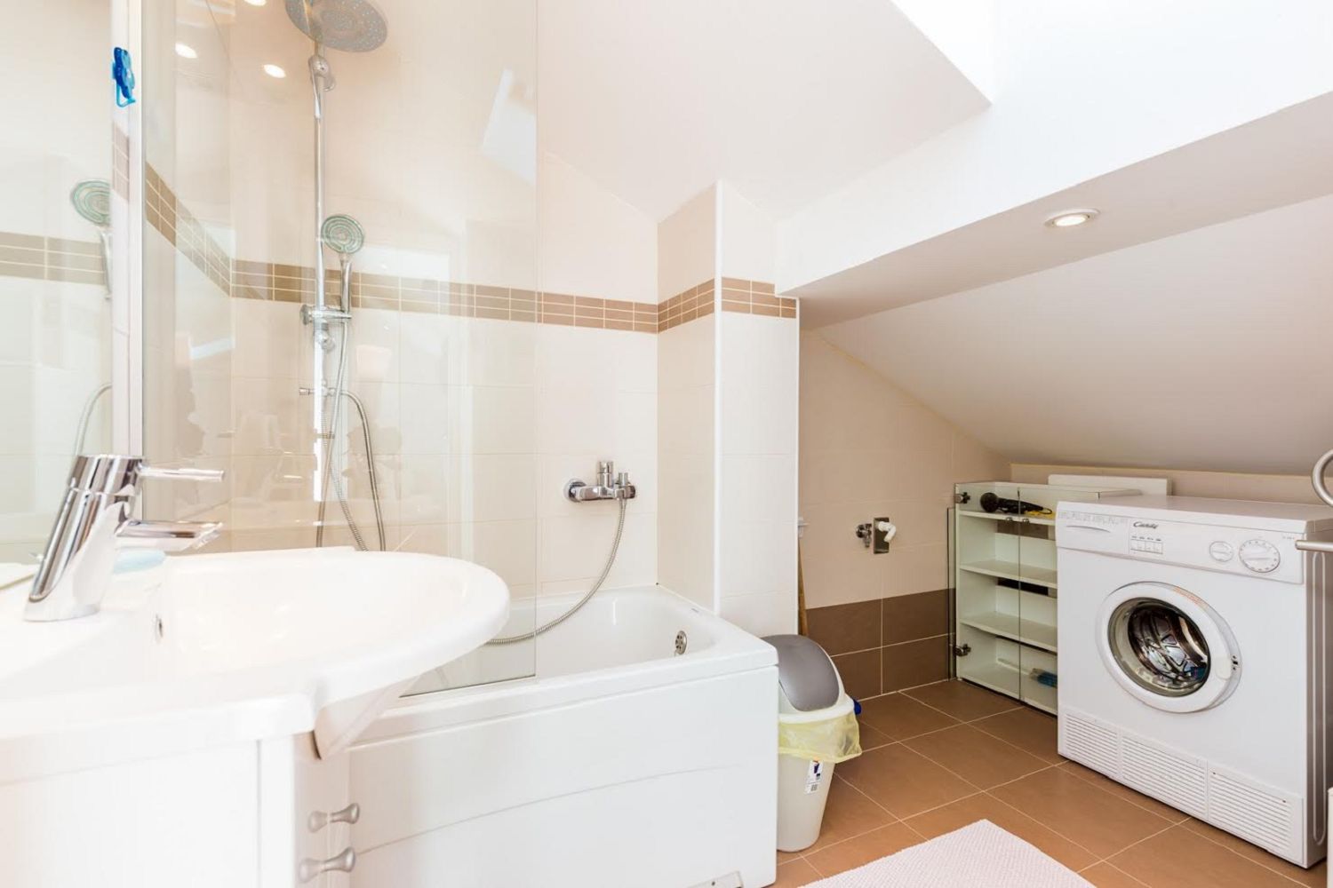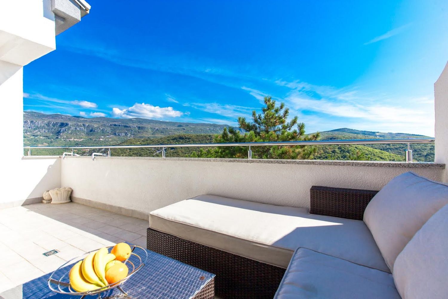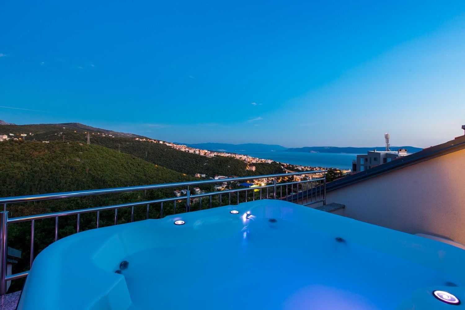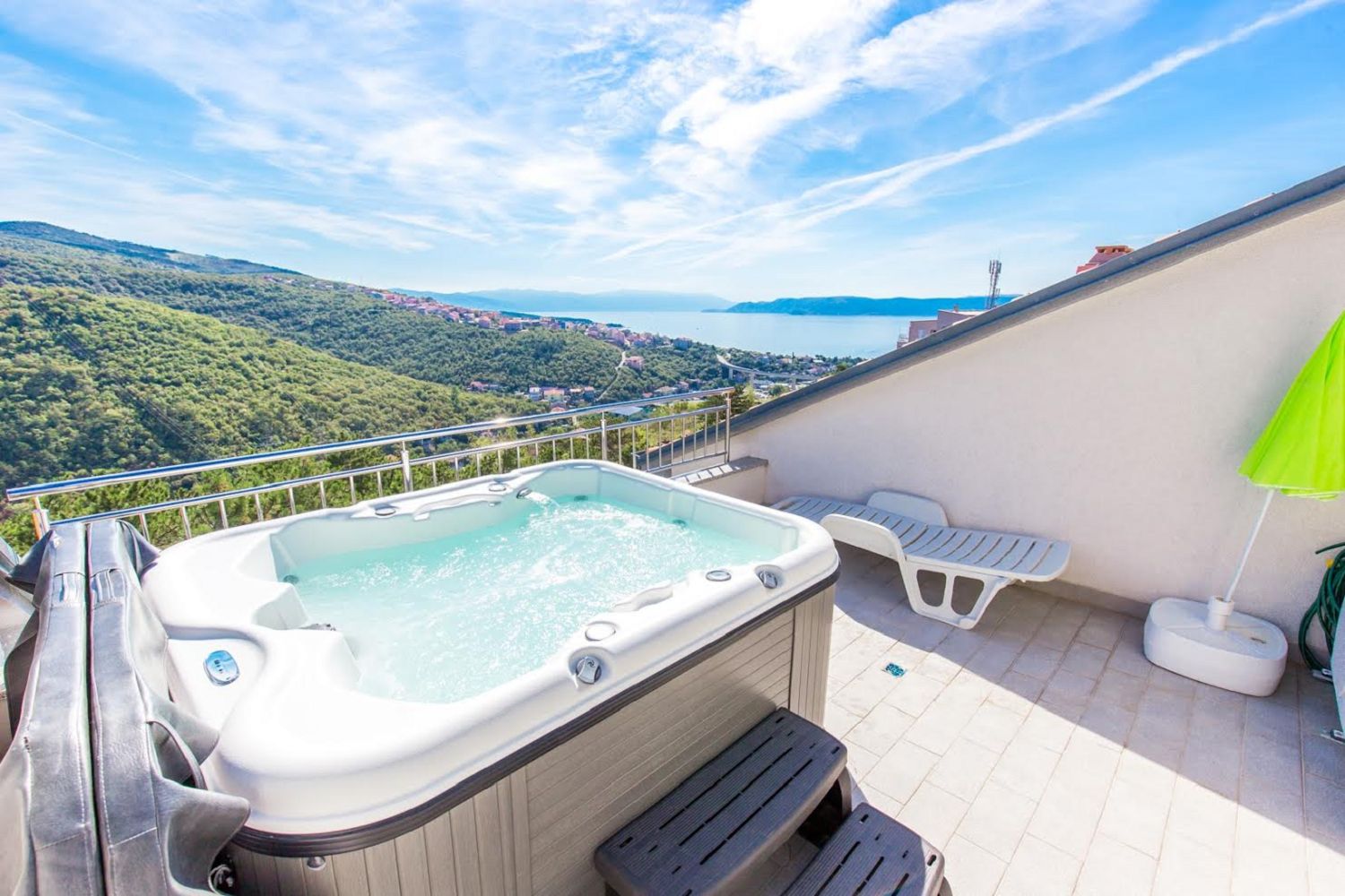 Diese wunderschöne Penthousewohnung mit traumhaftem Meerblick und einem Whirlpool für fünf Personen hat ihre vier Sterne mehr als verdient! Das Haus liegt direkt am Anfang des „Liebespfades“, der für eine sehr angenehme Atmosphäre sorgt. Rund um das Haus wachsen verschiedene mediterrane Pflanzenarten, die den Bewohnern eine gesunde und wohlriechende Brise bescheren. Die Wohnung ist wunderschön, hat einen traumhaften Meerblick und einen Whirlpool für fünf Personen und ist absolut empfehlenswert. Diese 2014 neu eingerichtete Wohnung lässt keine Wünsche offen. Sie besteht aus zwei Etagen. Die untere Etage liegt im zweiten Obergeschoss, wo sich auch der Eingang befindet. Sie besteht aus einem Eingangsbereich, der direkt zum Essbereich und zur voll ausgestatteten Küche führt. Vom Essbereich aus hat man Zugang zu einem Balkon. Gleich neben dem Essbereich befindet sich das großzügige Wohnzimmer, das neben einem Meerblick auch über einen eigenen möblierten Balkon verfügt, von dem aus man die Altstadt von Crikvenica, „Kotor” genannt, und das kristallklare Meer sehen kann. Auf dieser Etage liegen außerdem zwei Schlafzimmer, ein Badezimmer und eine separate Toilette. Die obere Etage ist deutlich kleiner. Sie besteht aus einem Kinderzimmer, einem Badezimmer und einer unübertrefflichen Dachterrasse, auf der sich ein Whirlpool mit fünf Sitzplätzen befindet. Während man sich im modernen Whirlpool abkühlt oder eine Massage genießt, hat man einen wunderschönen Blick auf die Kvarner Bucht. Fitnessliebhaber finden einige Übungsgeräte wie einen Orbitrek und ein Fitnessfahrrad. Beide Etagen sind klimatisiert.