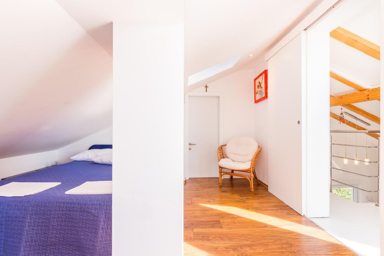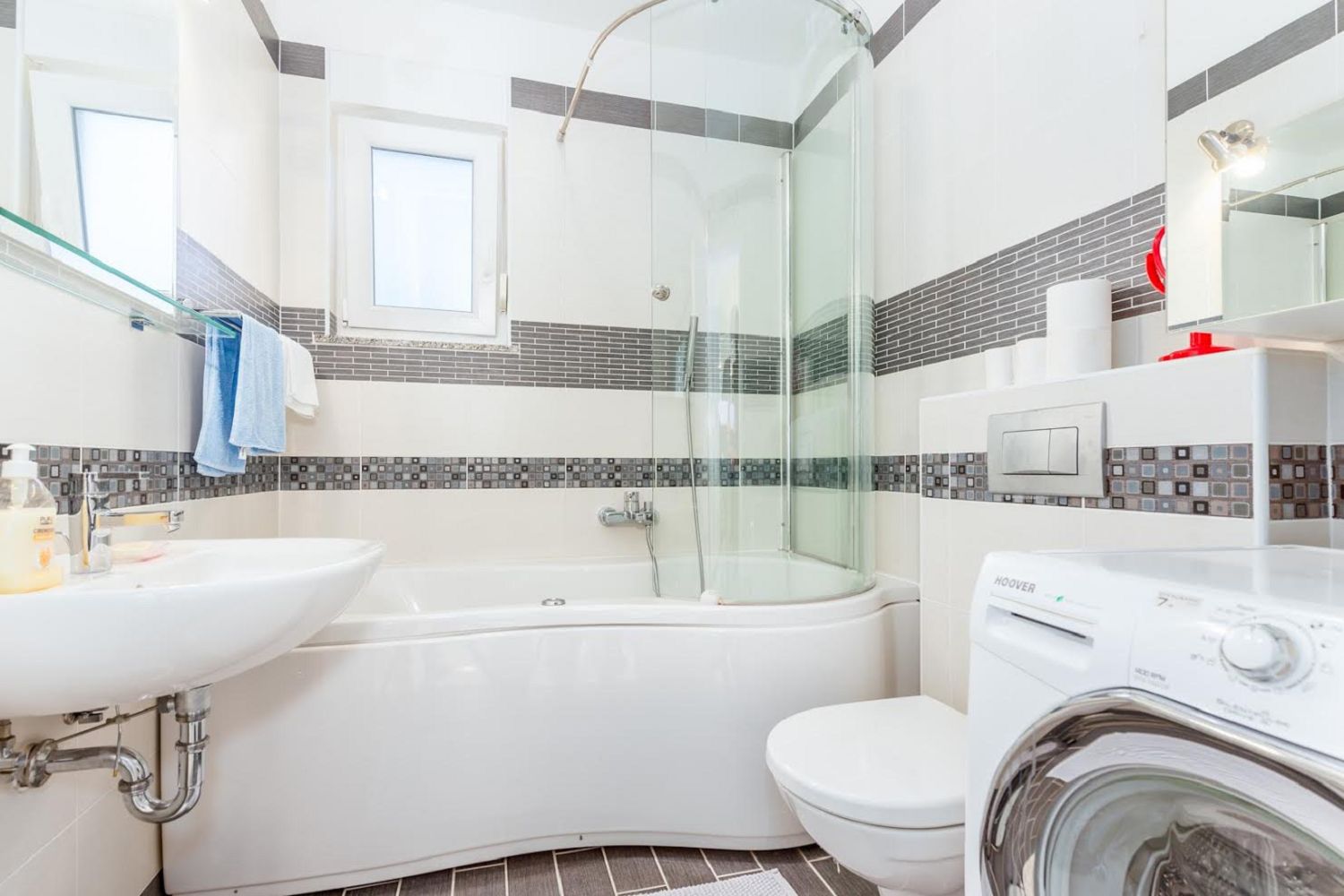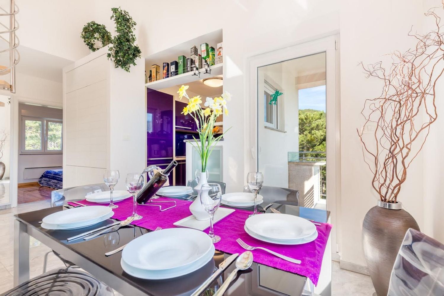 Diese wunderschöne Penthousewohnung mit traumhaftem Meerblick und einem Whirlpool für fünf Personen hat ihre vier Sterne mehr als verdient! Das Haus liegt direkt am Anfang des „Liebespfades“, der für eine sehr angenehme Atmosphäre sorgt. Rund um das Haus wachsen verschiedene mediterrane Pflanzenarten, die den Bewohnern eine gesunde und wohlriechende Brise bescheren. Die Wohnung ist wunderschön, hat einen traumhaften Meerblick und einen Whirlpool für fünf Personen und ist absolut empfehlenswert. Diese 2014 neu eingerichtete Wohnung lässt keine Wünsche offen. Sie besteht aus zwei Etagen. Die untere Etage liegt im zweiten Obergeschoss, wo sich auch der Eingang befindet. Sie besteht aus einem Eingangsbereich, der direkt zum Essbereich und zur voll ausgestatteten Küche führt. Vom Essbereich aus hat man Zugang zu einem Balkon. Gleich neben dem Essbereich befindet sich das großzügige Wohnzimmer, das neben einem Meerblick auch über einen eigenen möblierten Balkon verfügt, von dem aus man die Altstadt von Crikvenica, „Kotor” genannt, und das kristallklare Meer sehen kann. Auf dieser Etage liegen außerdem zwei Schlafzimmer, ein Badezimmer und eine separate Toilette. Die obere Etage ist deutlich kleiner. Sie besteht aus einem Kinderzimmer, einem Badezimmer und einer unübertrefflichen Dachterrasse, auf der sich ein Whirlpool mit fünf Sitzplätzen befindet. Während man sich im modernen Whirlpool abkühlt oder eine Massage genießt, hat man einen wunderschönen Blick auf die Kvarner Bucht. Fitnessliebhaber finden einige Übungsgeräte wie einen Orbitrek und ein Fitnessfahrrad. Beide Etagen sind klimatisiert.