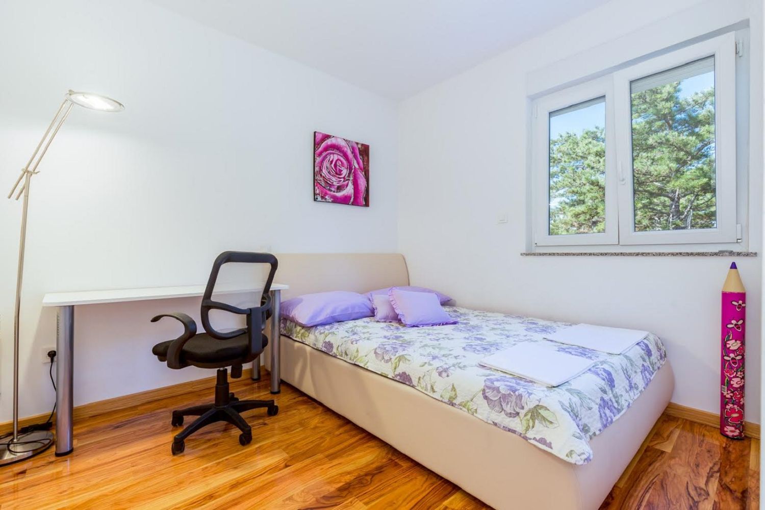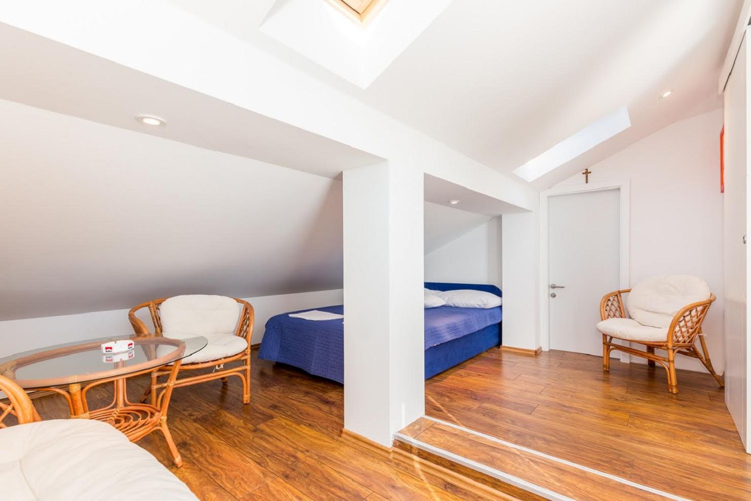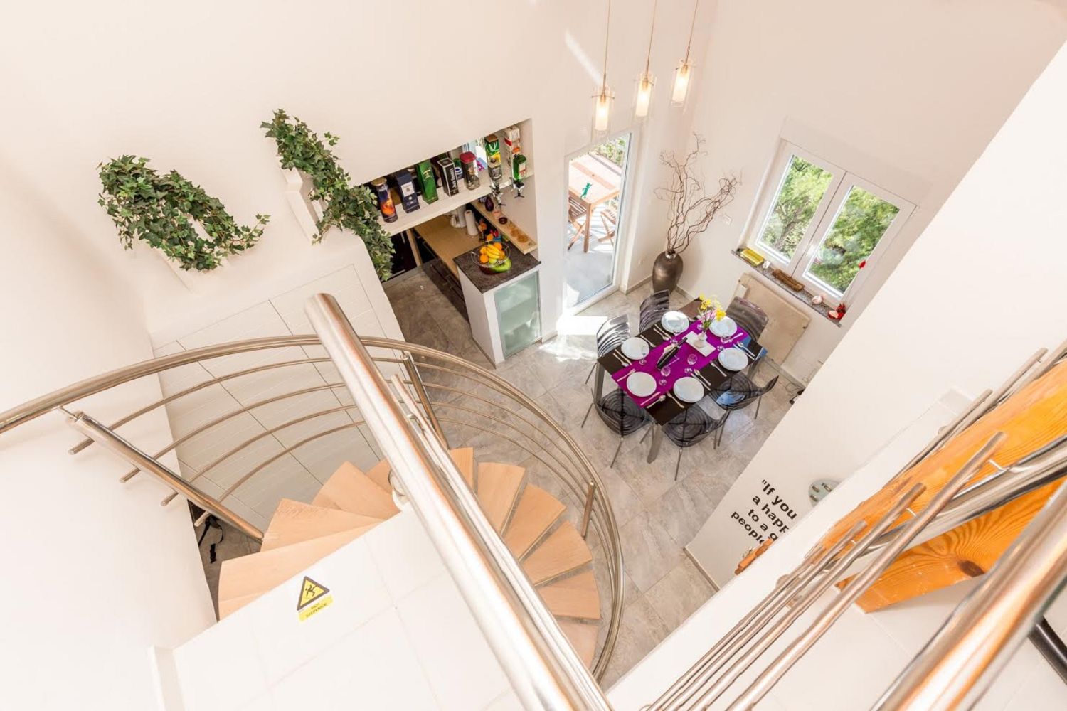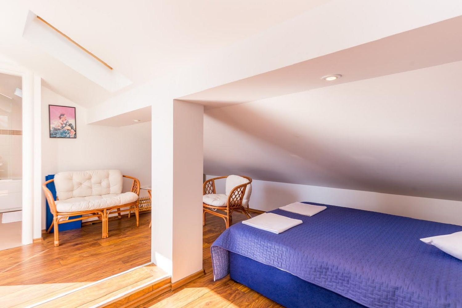 Diese wunderschöne Penthousewohnung mit traumhaftem Meerblick und einem Whirlpool für fünf Personen hat ihre vier Sterne mehr als verdient! Das Haus liegt direkt am Anfang des „Liebespfades“, der für eine sehr angenehme Atmosphäre sorgt. Rund um das Haus wachsen verschiedene mediterrane Pflanzenarten, die den Bewohnern eine gesunde und wohlriechende Brise bescheren. Die Wohnung ist wunderschön, hat einen traumhaften Meerblick und einen Whirlpool für fünf Personen und ist absolut empfehlenswert. Diese 2014 neu eingerichtete Wohnung lässt keine Wünsche offen. Sie besteht aus zwei Etagen. Die untere Etage liegt im zweiten Obergeschoss, wo sich auch der Eingang befindet. Sie besteht aus einem Eingangsbereich, der direkt zum Essbereich und zur voll ausgestatteten Küche führt. Vom Essbereich aus hat man Zugang zu einem Balkon. Gleich neben dem Essbereich befindet sich das großzügige Wohnzimmer, das neben einem Meerblick auch über einen eigenen möblierten Balkon verfügt, von dem aus man die Altstadt von Crikvenica, „Kotor” genannt, und das kristallklare Meer sehen kann. Auf dieser Etage liegen außerdem zwei Schlafzimmer, ein Badezimmer und eine separate Toilette. Die obere Etage ist deutlich kleiner. Sie besteht aus einem Kinderzimmer, einem Badezimmer und einer unübertrefflichen Dachterrasse, auf der sich ein Whirlpool mit fünf Sitzplätzen befindet. Während man sich im modernen Whirlpool abkühlt oder eine Massage genießt, hat man einen wunderschönen Blick auf die Kvarner Bucht. Fitnessliebhaber finden einige Übungsgeräte wie einen Orbitrek und ein Fitnessfahrrad. Beide Etagen sind klimatisiert.