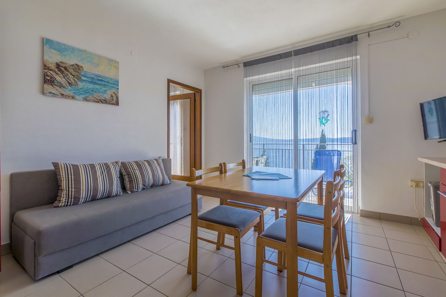 Diese sehr schöne und gepflegte Ferienwohnung in Crikvenica bietet allen Gästen durch ihren Balkon mit Meerblick, die schöne Einrichtung und die Sauberkeit der Vermieter einen sehr angenehmen Aufenthalt. Die 35 m² Wohnraum des Apartments verteilen sich auf ein Schlafzimmer, ein Badezimmer, ein Wohn-/Esszimmer und eine Küche, in der sich eine Schlafcouch für eine Person befindet. Vom Objekt bis zum Strand sind es 80 Meter und die Entfernung zum Zentrum beträgt 1,6 km. Das nächstgelegenste Lebensmittelgeschäft befindet sich 400 Meter von der Ferienimmobilie entfernt. In 250 Metern ist das umliegende Restaurant zu erreichen.