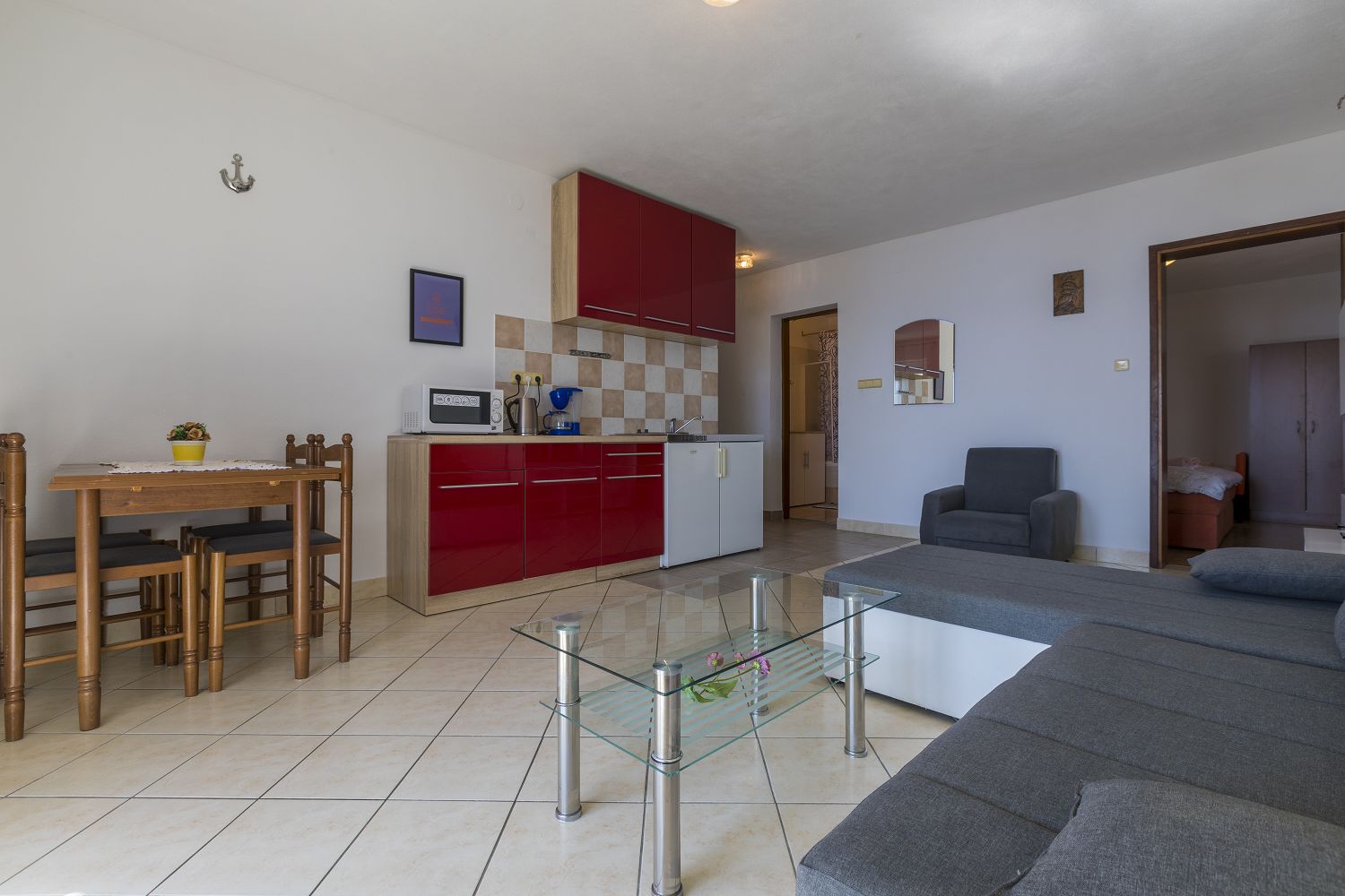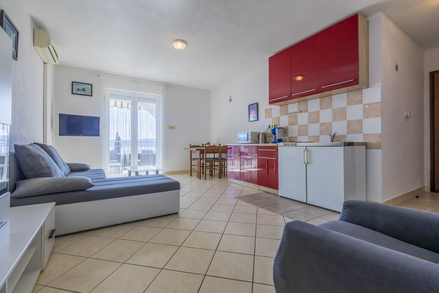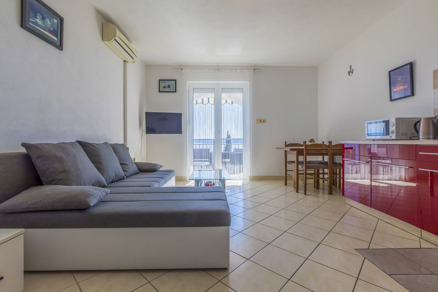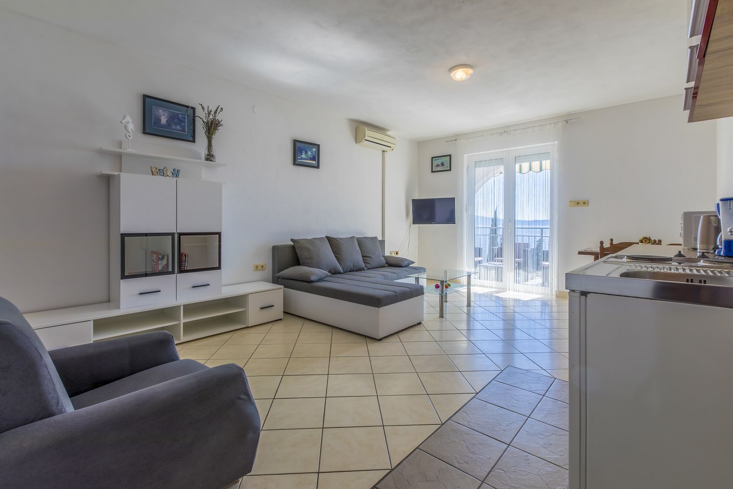 Diese schöne Ferienwohnung in Crikvenica verfügt über einen überdachten Balkon mit wunderschönem Meerblick auf die Insel Krk. Die 36 m² Wohnraum des Apartments verteilen sich auf ein Schlafzimmer, ein Badezimmer, ein Wohn-/Esszimmer und eine Küche mit einer Schlafcouch für eine Person. Vom Objekt bis zum Strand sind es 80 Meter und die Entfernung zum Zentrum beträgt 1,6 km. Das nächstgelegenste Lebensmittelgeschäft befindet sich 400 Meter von der Ferienimmobilie entfernt. In 250 Metern ist das umliegende Restaurant zu erreichen.