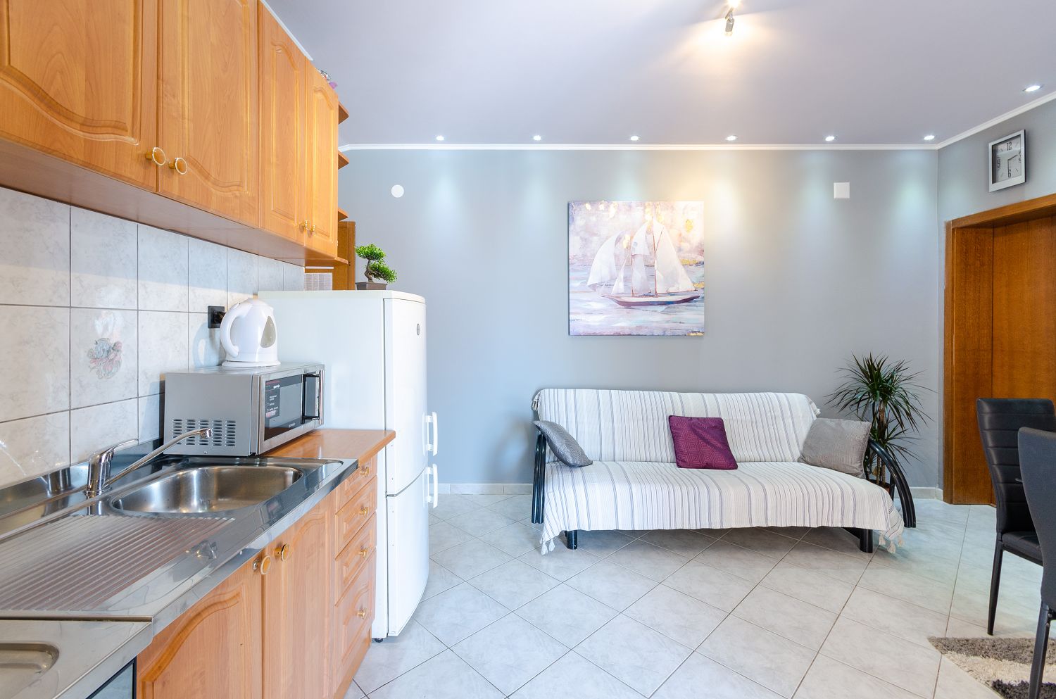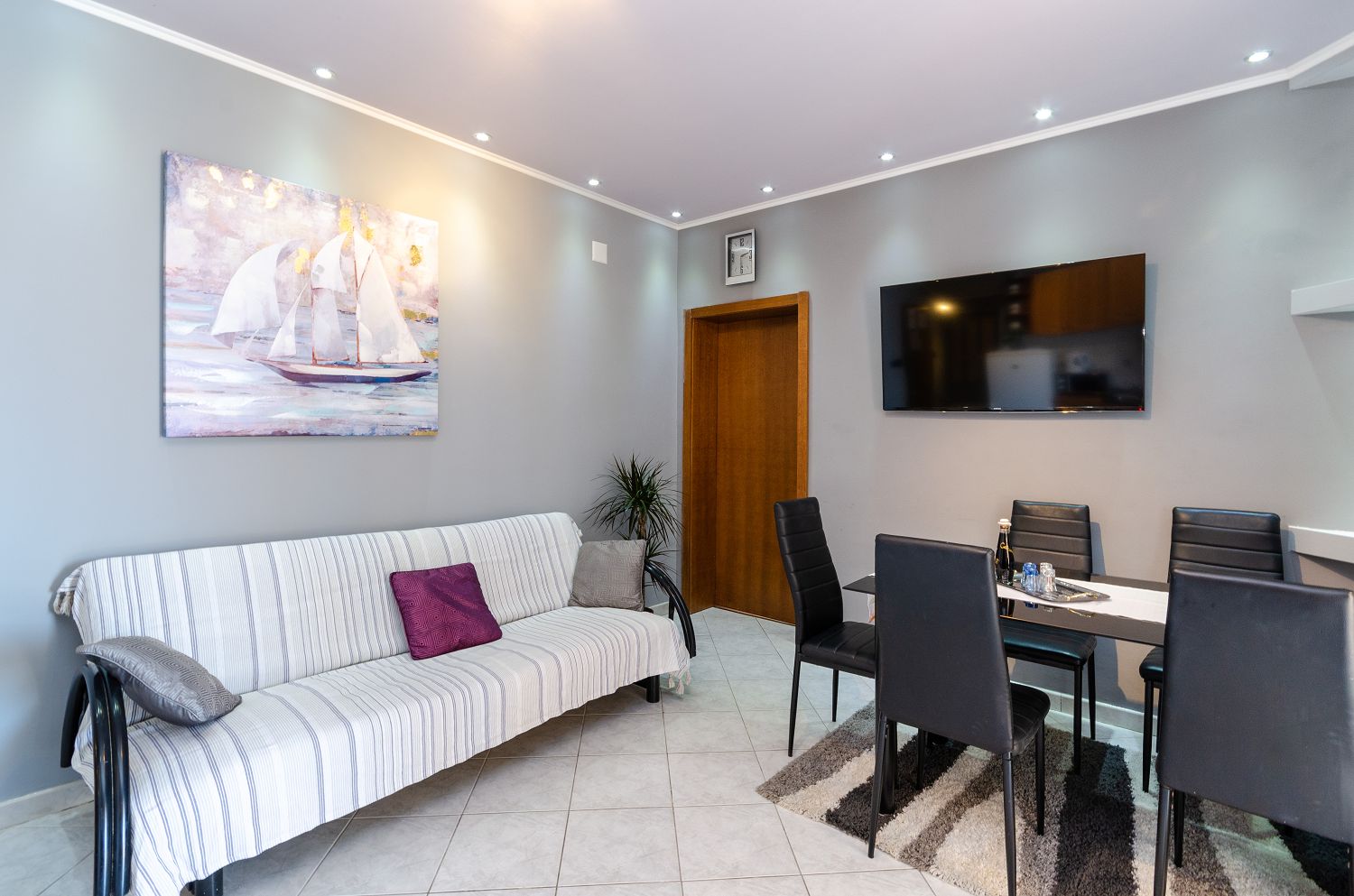 Diese Wohnung für vier bis fünf Personen ist nur fünf Gehminuten vom Meer entfernt. Sie besteht aus einem Wohn-/Esszimmer mit Küche, zwei Schlafzimmern, einem Badezimmer sowie zwei Balkonen, von denen aus Sie einen herrlichen Blick auf das Zentrum von Crikvenica und das Meer haben. Vom Objekt bis zum Strand sind es 500 Meter und die Entfernung zum Zentrum beträgt 750 Meter. Das nächstgelegenste Lebensmittelgeschäft befindet sich 600 Meter von der Ferienimmobilie entfernt. In 500 Metern ist das umliegende Restaurant zu erreichen.