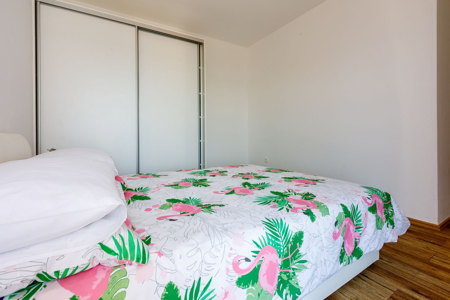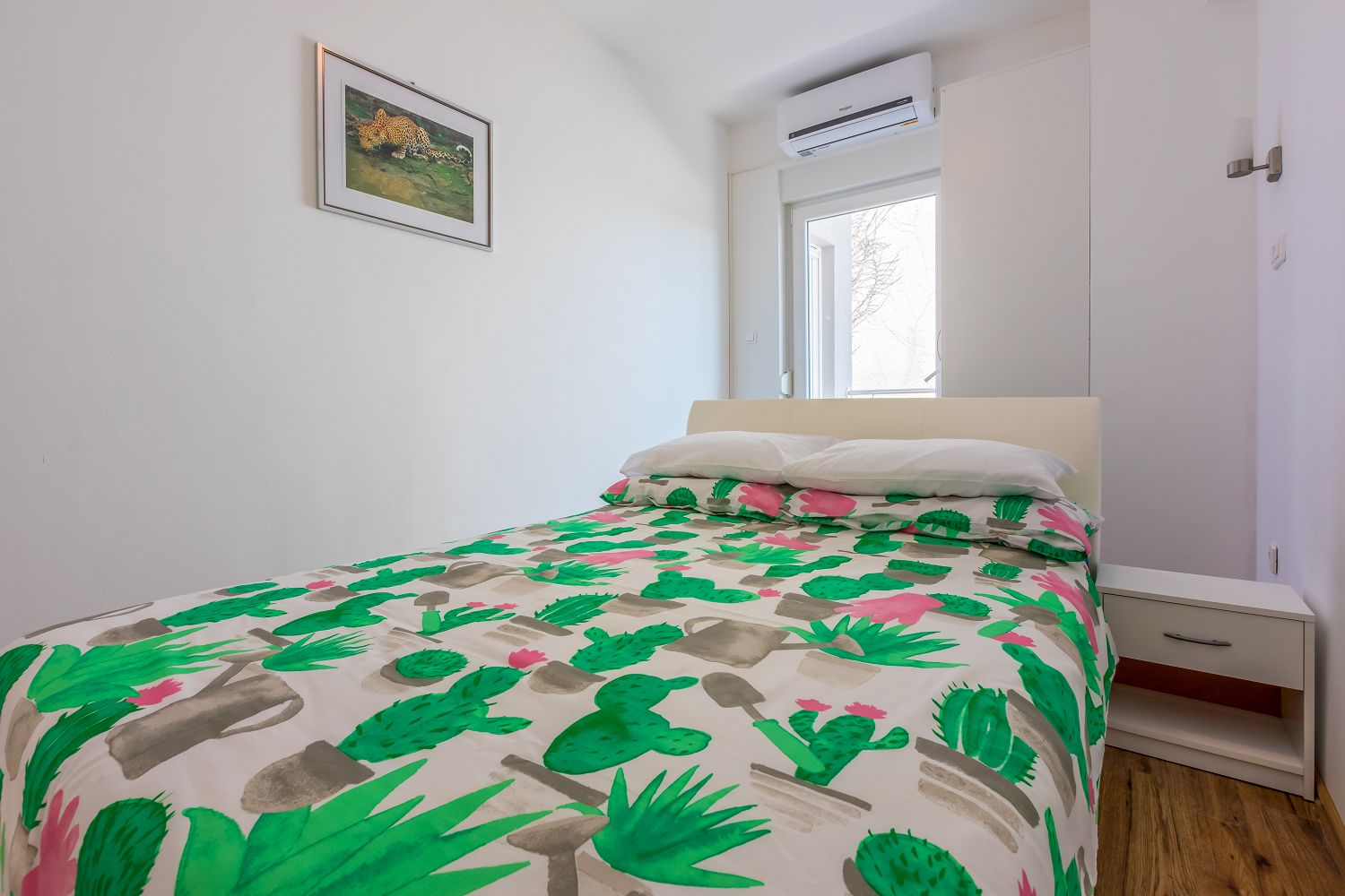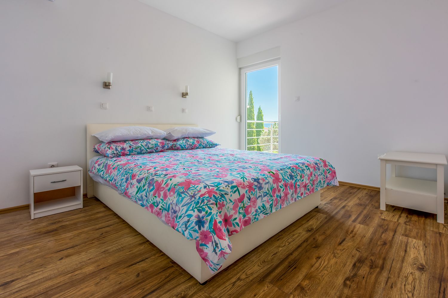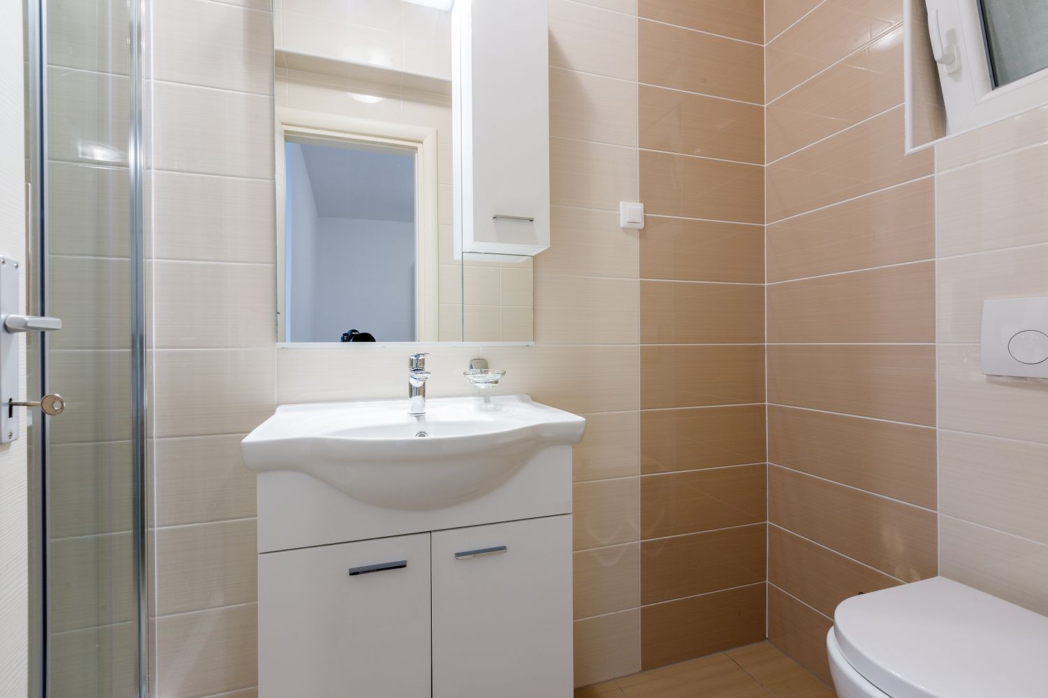 Die Unterkunft im ersten Obergeschoss des Anwesens besteht aus einer Küche mit Wohn- und Essbereich, drei Schlafzimmern, drei Badezimmern und einem eigenen Balkon. Der 20 m² große, teilweise überdachte Balkon ist möbliert. Ein Parkplatz befindet sich vor dem Haus. Des Weiteren stehen den Gästen Internet per WLAN, Satellitenfernsehen und eine Klimaanlage zur Verfügung. Vom Objekt bis zum Strand sind es 100 Meter und die Entfernung zum Zentrum beträgt 1,7 km. Das nächstgelegenste Lebensmittelgeschäft befindet sich 150 Meter von der Ferienimmobilie entfernt. In 150 Metern ist das umliegende Restaurant zu erreichen.