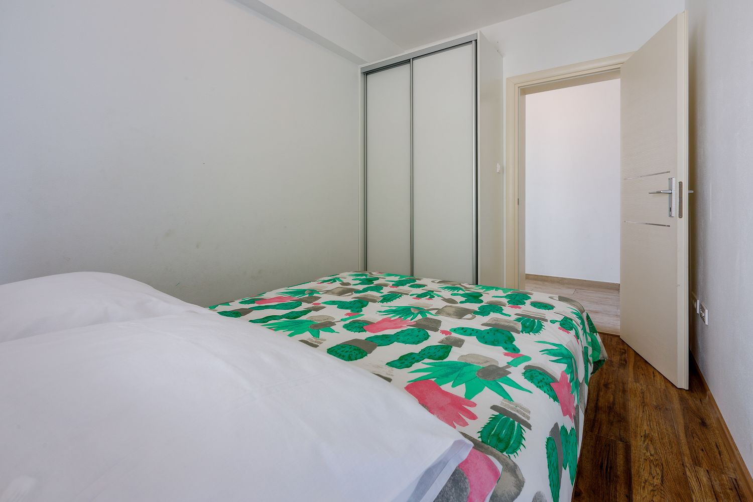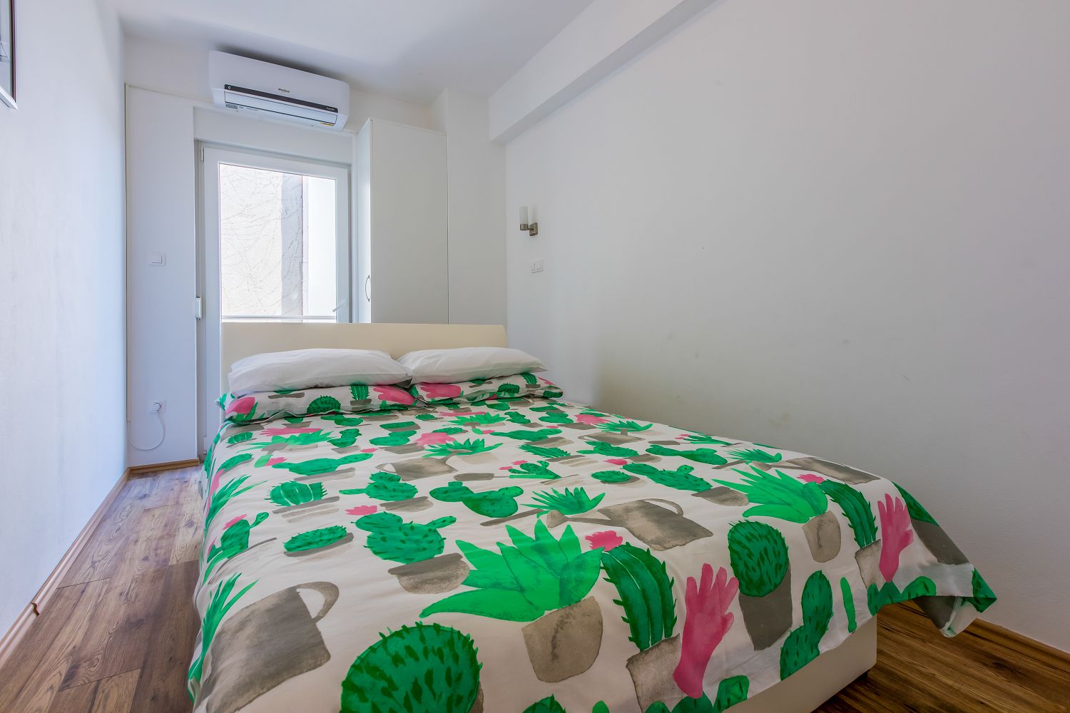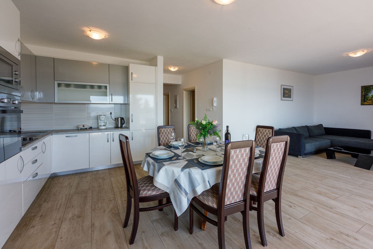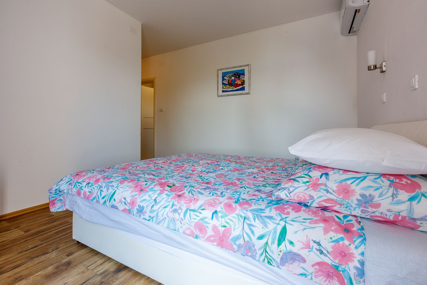 Die Unterkunft im ersten Obergeschoss des Anwesens besteht aus einer Küche mit Wohn- und Essbereich, drei Schlafzimmern, drei Badezimmern und einem eigenen Balkon. Der 20 m² große, teilweise überdachte Balkon ist möbliert. Ein Parkplatz befindet sich vor dem Haus. Des Weiteren stehen den Gästen Internet per WLAN, Satellitenfernsehen und eine Klimaanlage zur Verfügung. Vom Objekt bis zum Strand sind es 100 Meter und die Entfernung zum Zentrum beträgt 1,7 km. Das nächstgelegenste Lebensmittelgeschäft befindet sich 150 Meter von der Ferienimmobilie entfernt. In 150 Metern ist das umliegende Restaurant zu erreichen.
