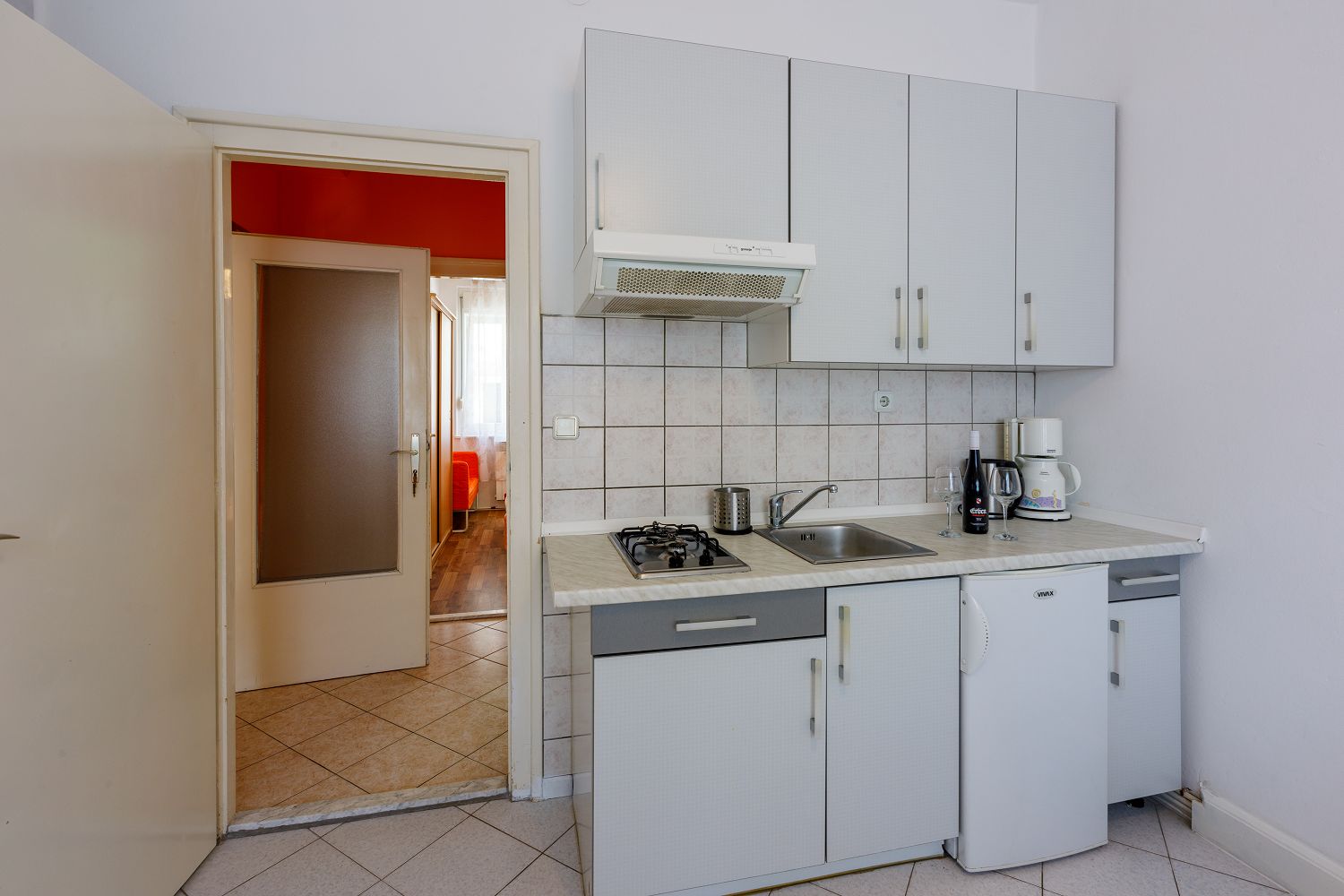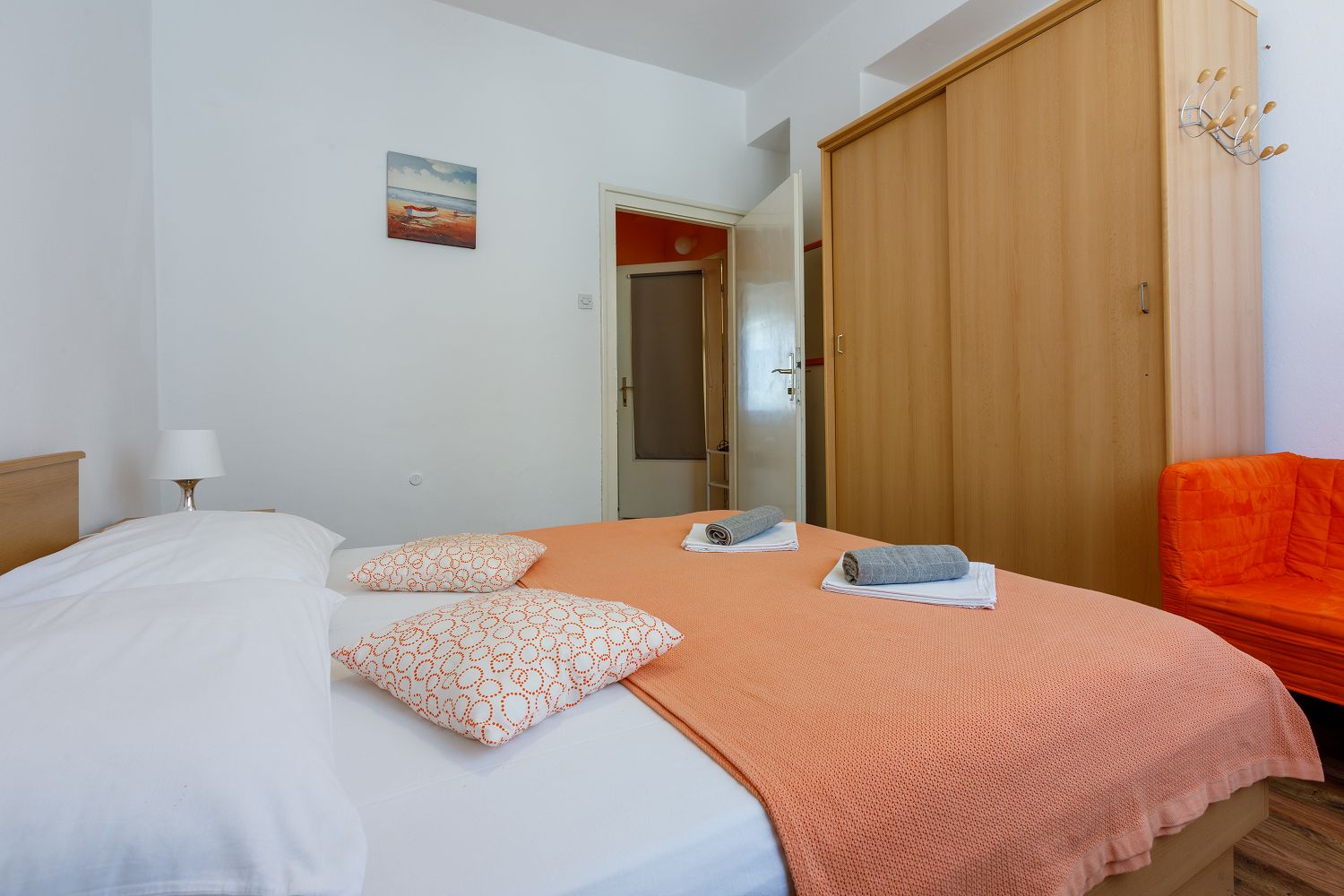 In dieser Unterkunft bilden das Wohn-/Esszimmer und die Küche einen Raum. Hier befindet sich eine Schlafcouch für eine Person. Zusätzlich gibt es ein Schlafzimmer mit einem Doppelbett und ein Badezimmer mit Dusche. Vom Objekt bis zum Strand sind es 200 Meter und die Entfernung zum Zentrum beträgt 1,5 km. Das nächstgelegenste Lebensmittelgeschäft befindet sich 200 Meter von der Ferienimmobilie entfernt. In 220 Metern ist das umliegende Restaurant zu erreichen.