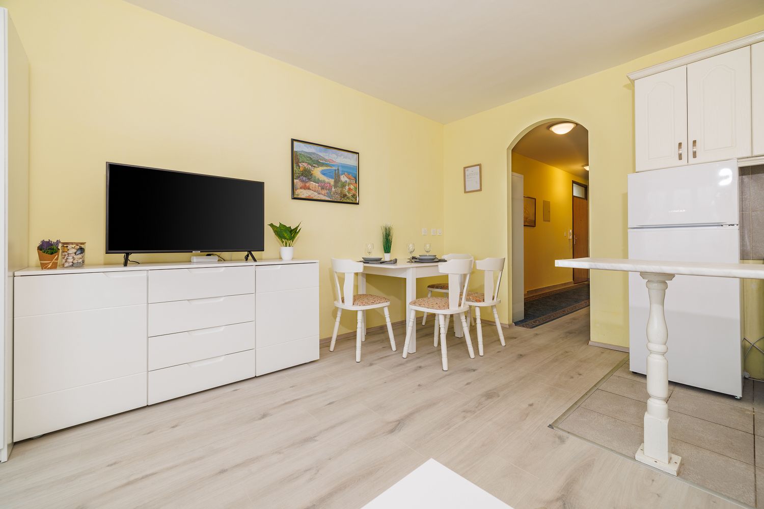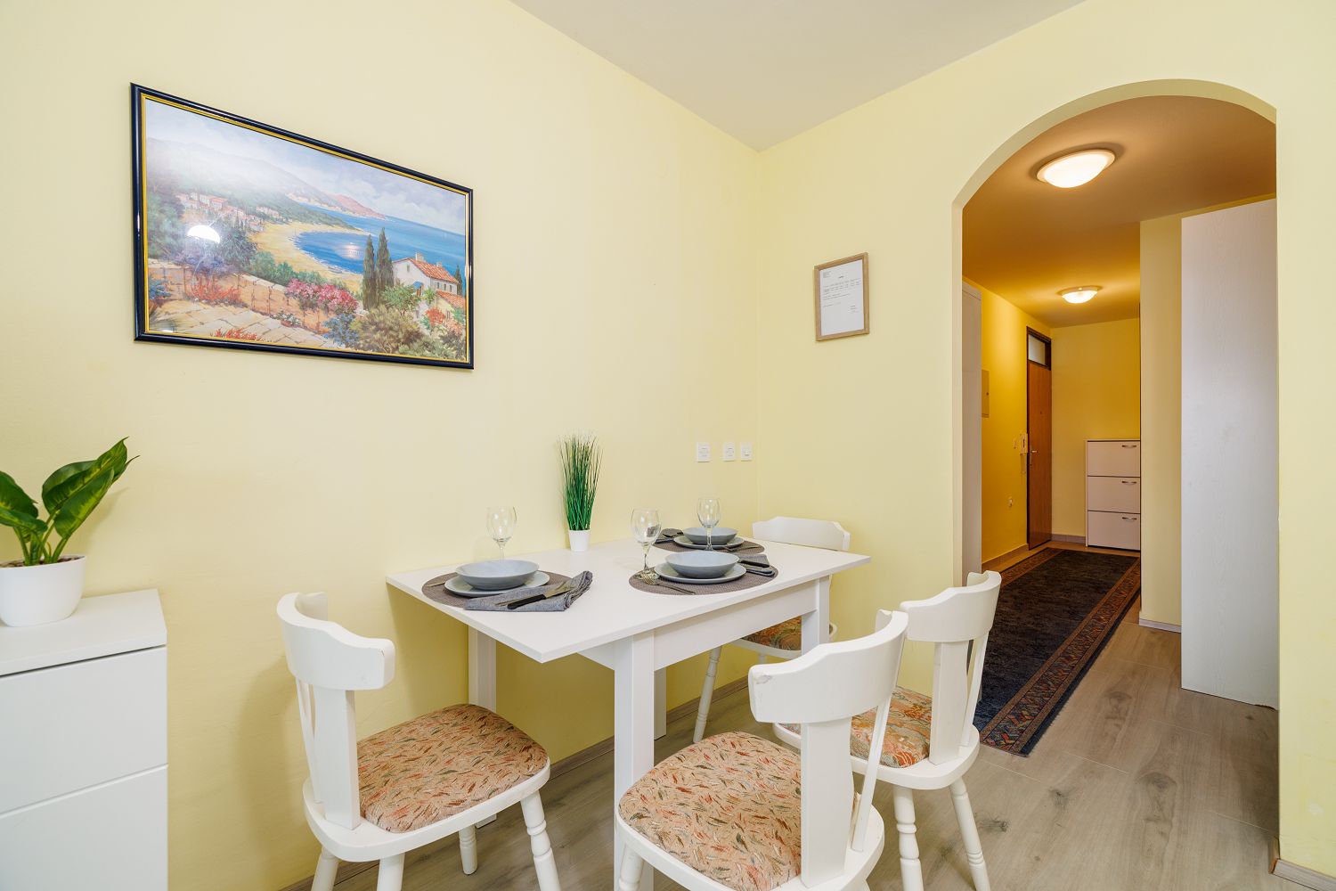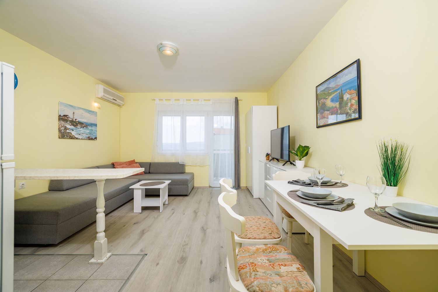 Diese gemütliche Ferienwohnung in Crikvenica bietet Platz für zwei bis drei Personen und ist die perfekte Unterkunft für einen entspannten und komfortablen Aufenthalt. Wohn-, Essbereich und Küche sind offen miteinander verbunden, was für ein großzügiges und modernes Ambiente sorgt. Das Schlafzimmer ist ideal für erholsame Nächte, während das Badezimmer mit einer Dusche ausgestattet ist. Die Ferienwohnung befindet sich im hohen Erdgeschoss. Vom Balkon aus haben Sie einen atemberaubenden Blick auf das Meer, der zum Verweilen und Entspannen einlädt. Eine im Preis inbegriffene Klimaanlage sorgt für angenehme Temperaturen zu jeder Jahreszeit. Eine Waschmaschine steht ebenfalls zur Verfügung und macht den Aufenthalt noch komfortabler. Die Unterkunft liegt in einer ruhigen Gegend und ein öffentlicher Parkplatz ist nur etwa 50 Meter entfernt und kostenlos zugänglich. Bitte beachten Sie, dass Grillen auf dem Balkon nicht gestattet ist und Haustiere in der Wohnung nicht erlaubt sind. Diese Ferienwohnung bietet somit die perfekte Kombination aus Komfort, Ruhe und wunderschönem Meerblick für einen entspannten Urlaub in Crikvenica.