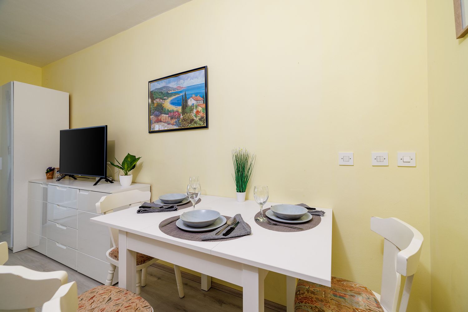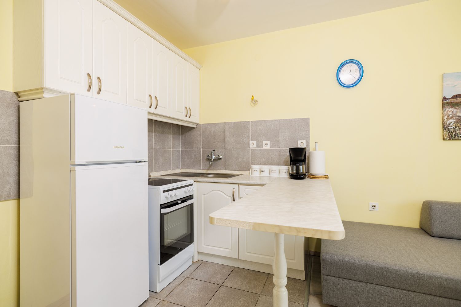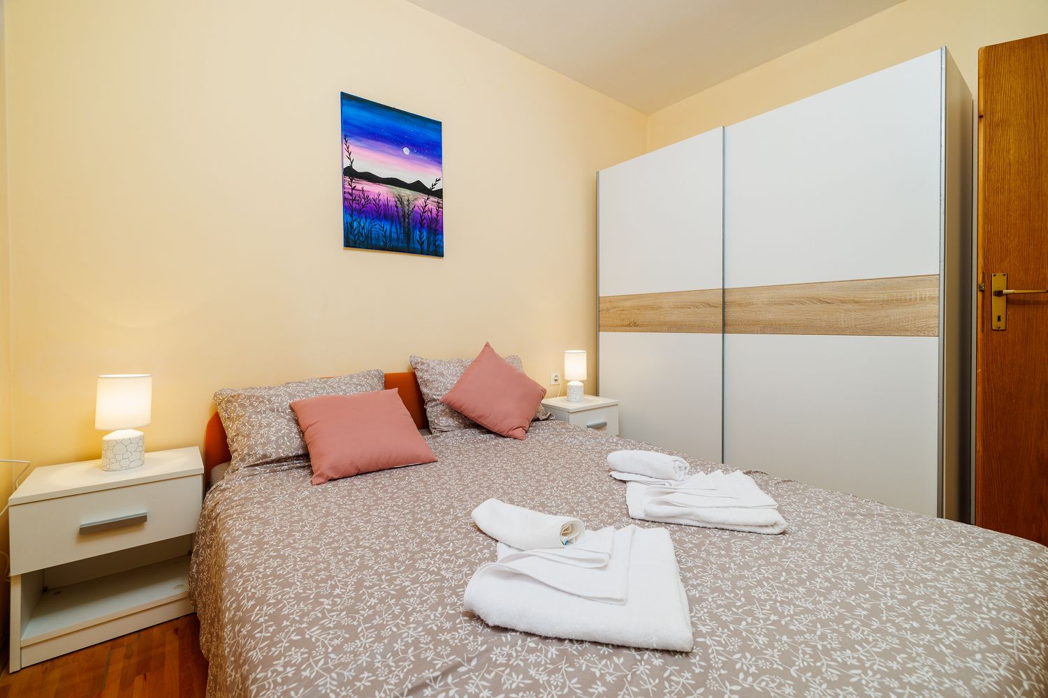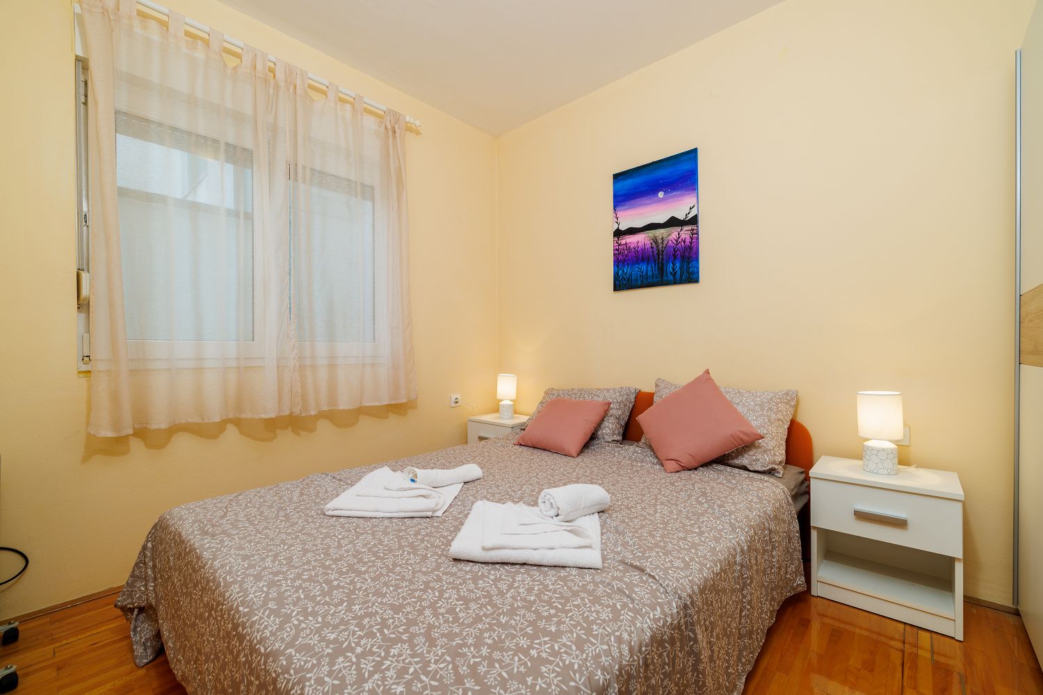 Diese gemütliche Ferienwohnung in Crikvenica bietet Platz für zwei bis drei Personen und ist die perfekte Unterkunft für einen entspannten und komfortablen Aufenthalt. Wohn-, Essbereich und Küche sind offen miteinander verbunden, was für ein großzügiges und modernes Ambiente sorgt. Das Schlafzimmer ist ideal für erholsame Nächte, während das Badezimmer mit einer Dusche ausgestattet ist. Die Ferienwohnung befindet sich im hohen Erdgeschoss. Vom Balkon aus haben Sie einen atemberaubenden Blick auf das Meer, der zum Verweilen und Entspannen einlädt. Eine im Preis inbegriffene Klimaanlage sorgt für angenehme Temperaturen zu jeder Jahreszeit. Eine Waschmaschine steht ebenfalls zur Verfügung und macht den Aufenthalt noch komfortabler. Die Unterkunft liegt in einer ruhigen Gegend und ein öffentlicher Parkplatz ist nur etwa 50 Meter entfernt und kostenlos zugänglich. Bitte beachten Sie, dass Grillen auf dem Balkon nicht gestattet ist und Haustiere in der Wohnung nicht erlaubt sind. Diese Ferienwohnung bietet somit die perfekte Kombination aus Komfort, Ruhe und wunderschönem Meerblick für einen entspannten Urlaub in Crikvenica.