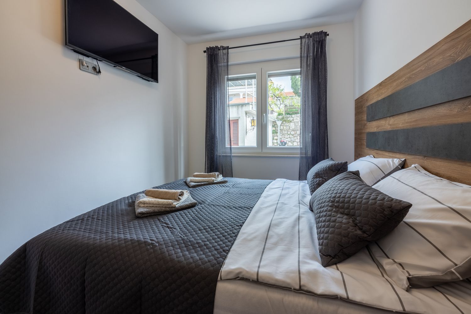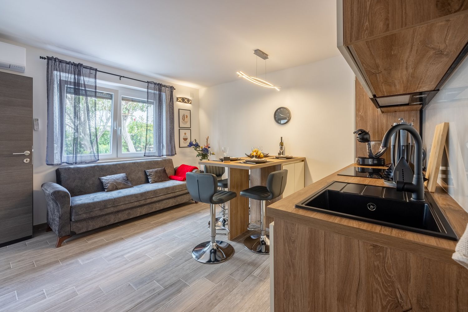 Diese traumhafte Ferienwohnung bietet die perfekte Kombination aus Nähe zum Meer und Komfort und ist somit ideal für einen entspannten Urlaub mit Ihrem Vierbeiner. Nur wenige Schritte trennen Sie vom nächsten Strand und der nur 450 Meter entfernte Hundestrand macht diese Unterkunft zu einer ausgezeichneten Wahl für Hundeliebhaber. Die Wohnung ist vollständig ausgestattet und sorgt mit einer im Preis inbegriffenen Klimaanlage, einem reservierten Parkplatz sowie der Möglichkeit, die Waschmaschine zu nutzen, für einen sorgenfreien Aufenthalt. Haustiere sind ebenfalls im Preis enthalten, sodass Ihr treuer Begleiter ganz ohne zusätzliche Kosten dabei sein kann. Der Wohnbereich verfügt über ein gemütliches Schlafsofa, das speziell für Kinder geeignet ist, und bietet somit zusätzlichen Raum für kleine Gäste. Diese Ferienwohnung ist eine wunderbare Wahl für alle, die die Nähe zum Meer, die Gesellschaft ihres Haustiers und komfortable Annehmlichkeiten in vollen Zügen genießen möchten. Sie besteht aus einem schönen Wohn-/Esszimmer mit Küche, einem Schlafzimmer mit Doppelbett, einem Badezimmer und einem Eingangsbereich. Vom Eingangsbereich aus gelangt man direkt zur Terrasse. Im Wohnbereich steht eine ausziehbare Schlafcouch zur Verfügung, die nur für Kinder vorgesehen ist. Ein eigener Privatparkplatz befindet sich auf dem Grundstück hinter dem Haus. Bis zum Meer und dem Ortszentrum sind es nur wenige Schritte.