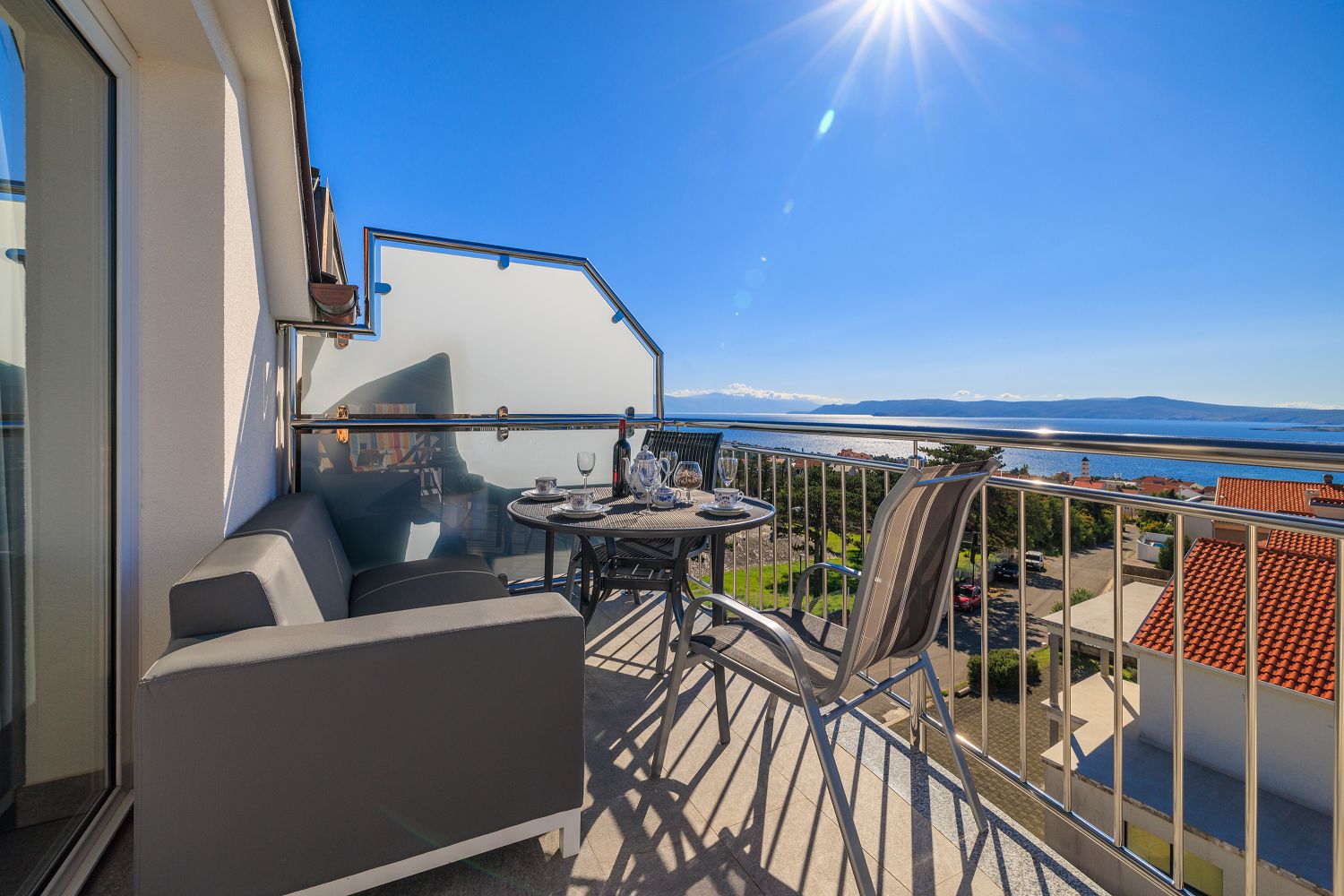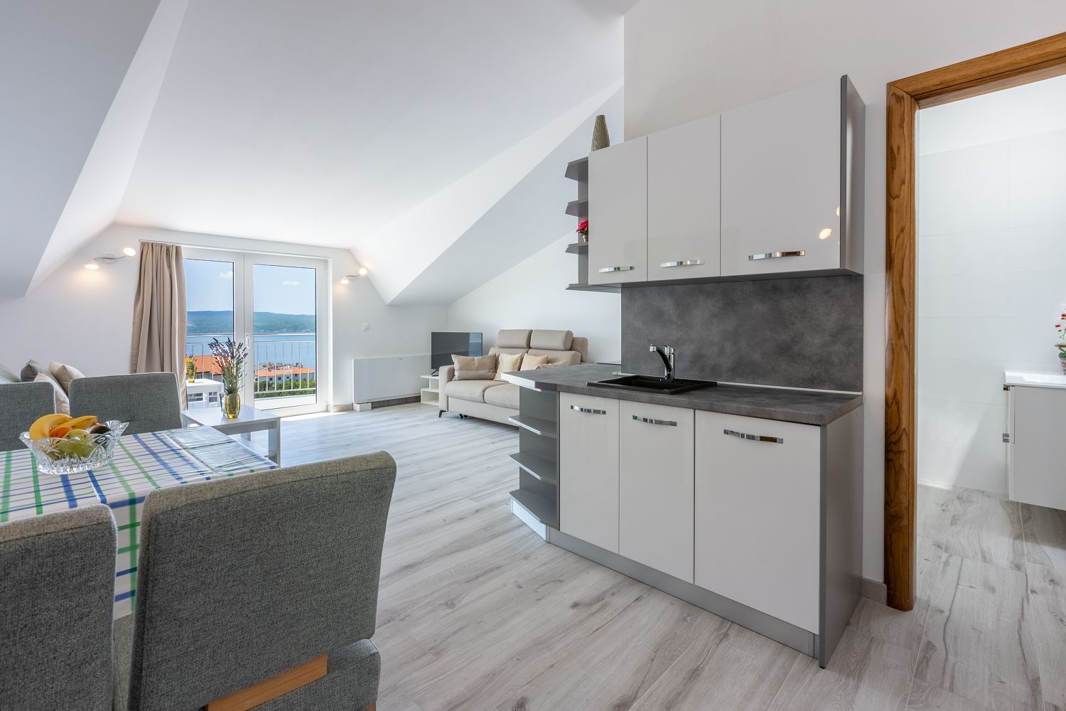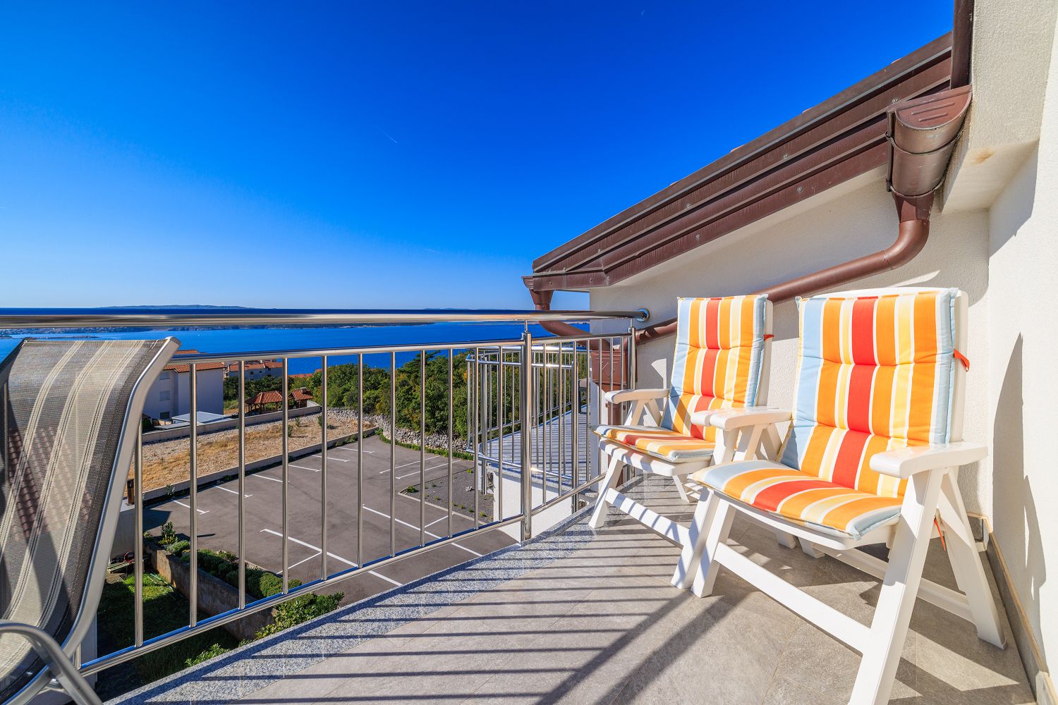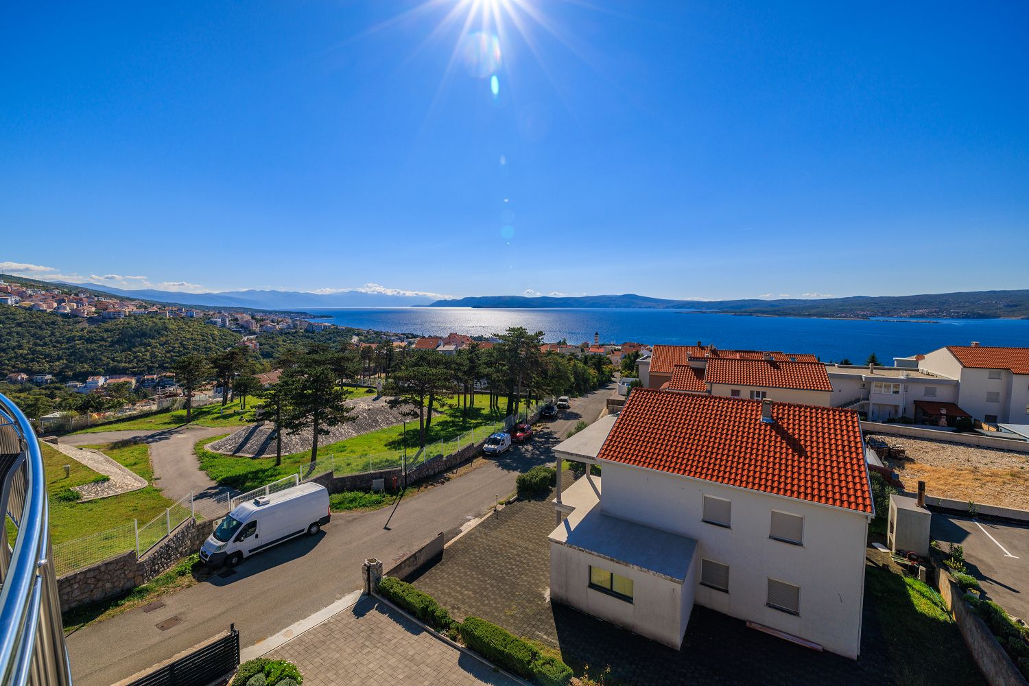 Die Wohnung liegt im dritten Obergeschoss und besteht aus einem geräumigen Wohn-/Esszimmer mit offener Küche, einem Schlafzimmer und einem Badezimmer. Vom Wohnbereich aus hat man direkten Zugang zu dem Balkon der Wohnung, der einen traumhaften Meerblick bietet. Ein privater Parkplatz befindet sich auf dem Grundstück des Hauses und kann kostenfrei genutzt werden. Vom Objekt bis zum Strand sind es 950 Meter und die Entfernung zum Zentrum beträgt 900 Meter. Das nächstgelegenste Lebensmittelgeschäft befindet sich 900 Meter von der Ferienimmobilie entfernt. In 900 Metern ist das umliegende Restaurant zu erreichen.