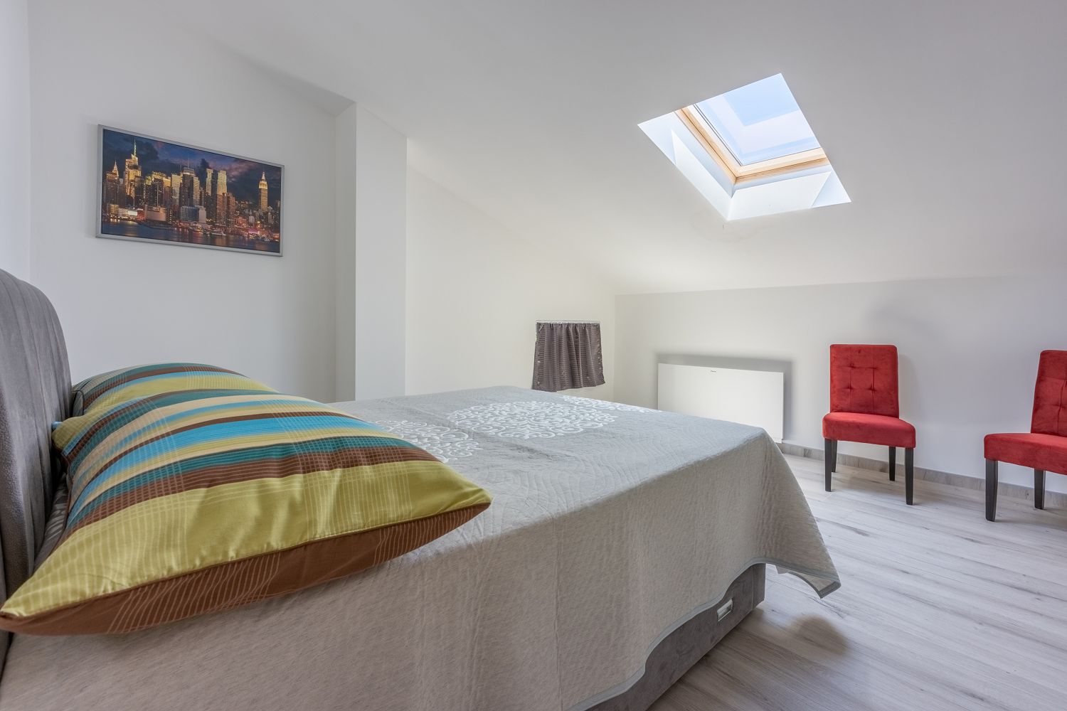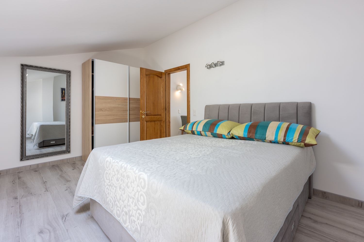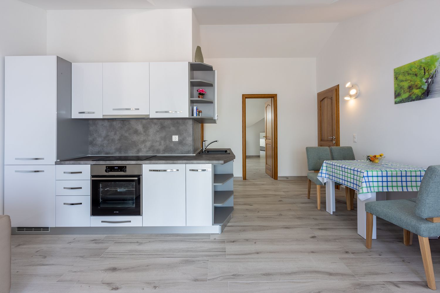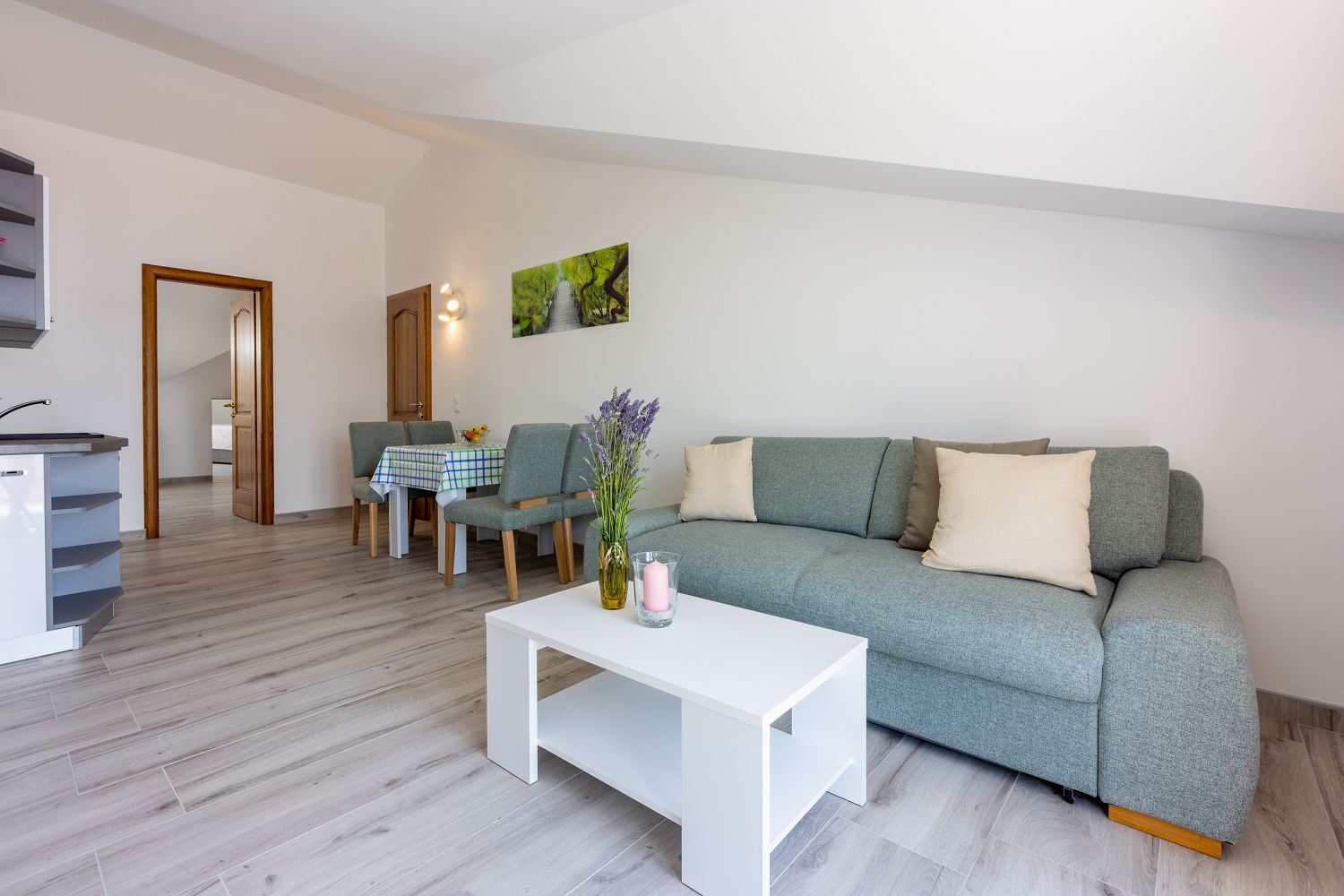 Die Wohnung liegt im dritten Obergeschoss und besteht aus einem geräumigen Wohn-/Esszimmer mit offener Küche, einem Schlafzimmer und einem Badezimmer. Vom Wohnbereich aus hat man direkten Zugang zu dem Balkon der Wohnung, der einen traumhaften Meerblick bietet. Ein privater Parkplatz befindet sich auf dem Grundstück des Hauses und kann kostenfrei genutzt werden. Vom Objekt bis zum Strand sind es 950 Meter und die Entfernung zum Zentrum beträgt 900 Meter. Das nächstgelegenste Lebensmittelgeschäft befindet sich 900 Meter von der Ferienimmobilie entfernt. In 900 Metern ist das umliegende Restaurant zu erreichen.