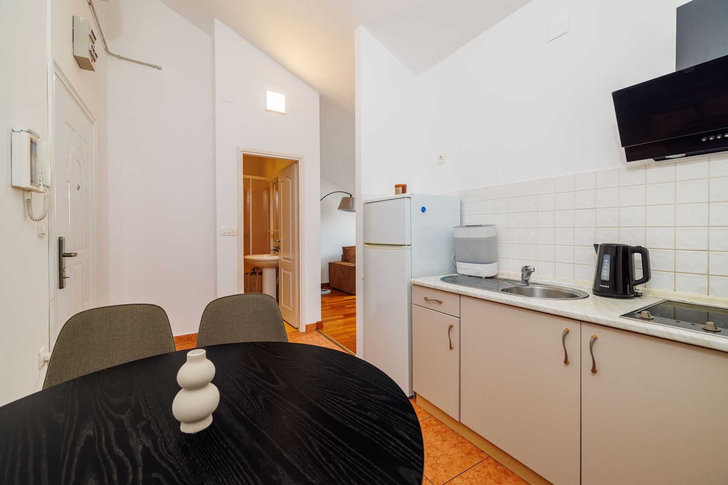 Diese moderne Dachgeschoss-Ferienwohnung in Crikvenica bietet Platz für zwei bis vier Personen und besticht durch ihren atemberaubenden Meerblick. Der offene Wohn- und Essbereich mit integrierter Küche schafft eine einladende Atmosphäre und verfügt über eine Schlafcouch, die zusätzlichen Komfort bietet. Das separate Schlafzimmer ist mit einem gemütlichen Doppelbett ausgestattet und das stilvolle Badezimmer verfügt über eine Dusche und eine Waschmaschine. Die Wohnung ist mit einer Klimaanlage und einem Internetzugang ausgestattet, sodass sowohl Erholung als auch vernetztes Arbeiten möglich sind. Ein eigener Parkplatz sorgt für eine bequeme Anreise mit dem Auto. Der Zugang zum Dachgeschoss erfolgt bequem per Aufzug, sodass auch das Gepäck mühelos transportiert werden kann. Diese Ferienwohnung ist der perfekte Ort für einen unvergesslichen Aufenthalt an der kroatischen Küste.