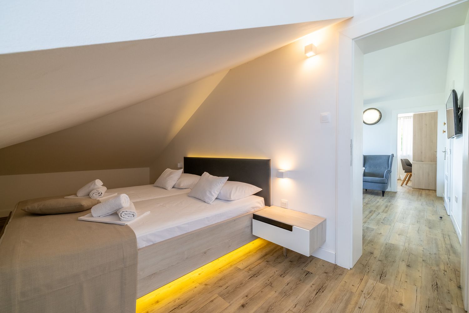 Die Wohnung ist nur einige Gehminuten vom beliebten Sandstrand, Restaurants und einem Supermarkt entfernt. Sie besteht aus einem Wohn-/Esszimmer mit Küche, zwei Schlafzimmern, einem Badezimmer und einem überdachten Balkon mit Meerblick. Vom Objekt bis zum Strand sind es 200 Meter und die Entfernung zum Zentrum beträgt 500 Meter. Das nächstgelegenste Lebensmittelgeschäft befindet sich 300 Meter von der Ferienimmobilie entfernt. In 300 Metern ist das umliegende Restaurant zu erreichen.