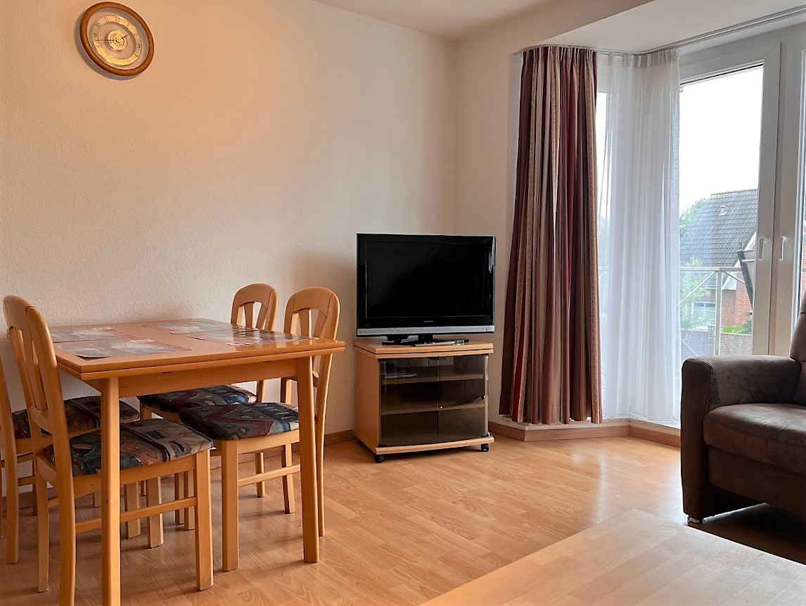 Die Wohnung ist geschmackvoll eingerichtet und bietet eine angenehme Atmosphäre. Sie ist ideal für Familien oder Paare, die einen erholsamen Urlaub in Cuxhaven verbringen möchten. Ein Highlight der Wohnung ist der große Balkon, der zum Entspannen und Sonnenbaden einlädt.