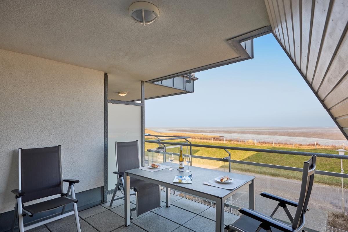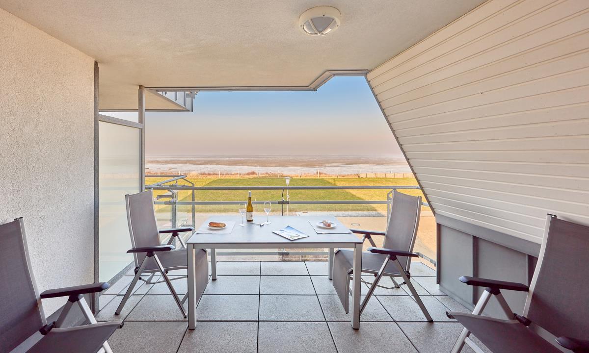 Die beiden Balkone bieten zusätzlichen Komfort: • Südbalkon mit zwei Sonnenliegen • Seesichtbalkon mit Tisch und vier Stühlen – ideal, um Schiffe zu beobachten und die frische Nordseeluft zu genießen.