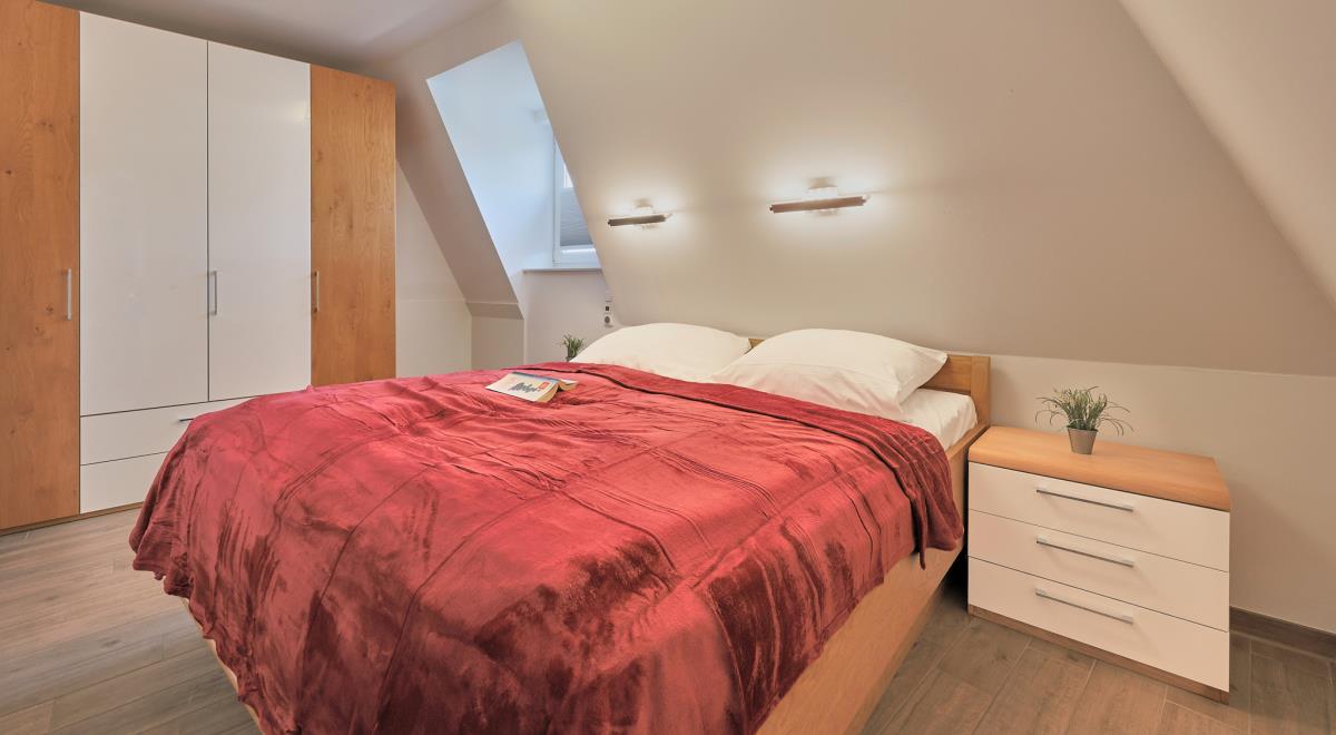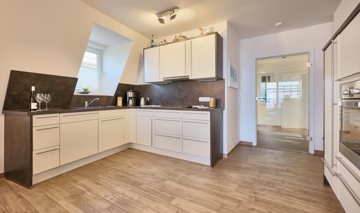 Die modern eingerichtete Ferienwohnung 12 im Haus „Düne 1“ befindet sich im 2. Obergeschoss und bietet eine gehobene Ausstattung, viel Tageslicht und eine wunderschöne Seesicht. Die Wohnung ist ideal für bis zu vier Personen und überzeugt durch ihre großzügige Raumaufteilung – jeder Raum, einschließlich beider Bäder, verfügt über mindestens ein Fenster.