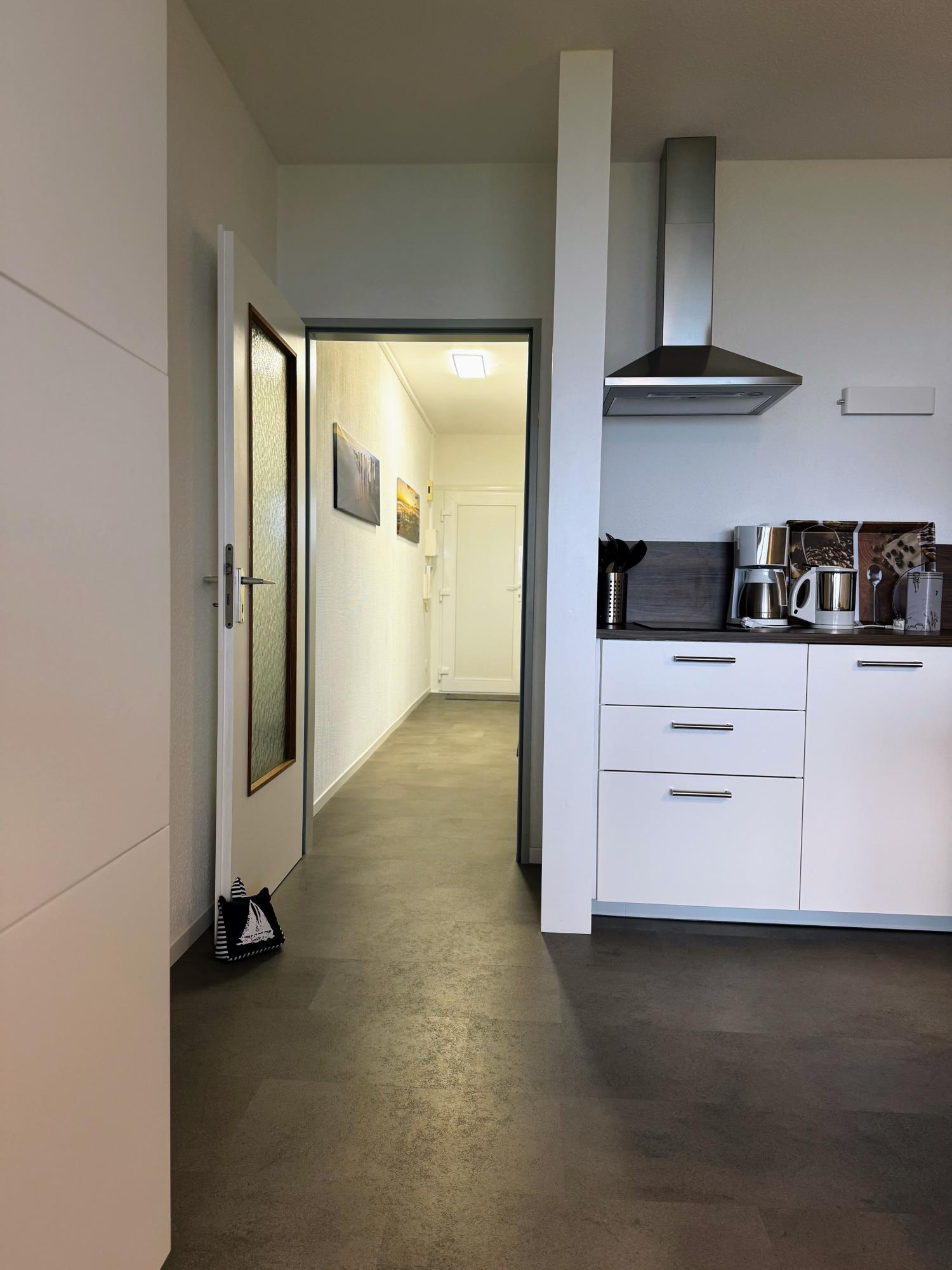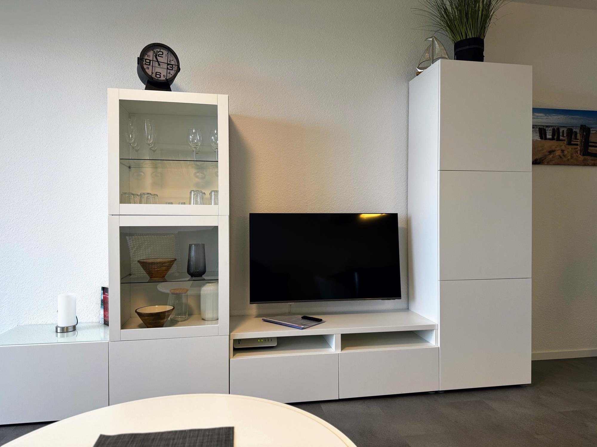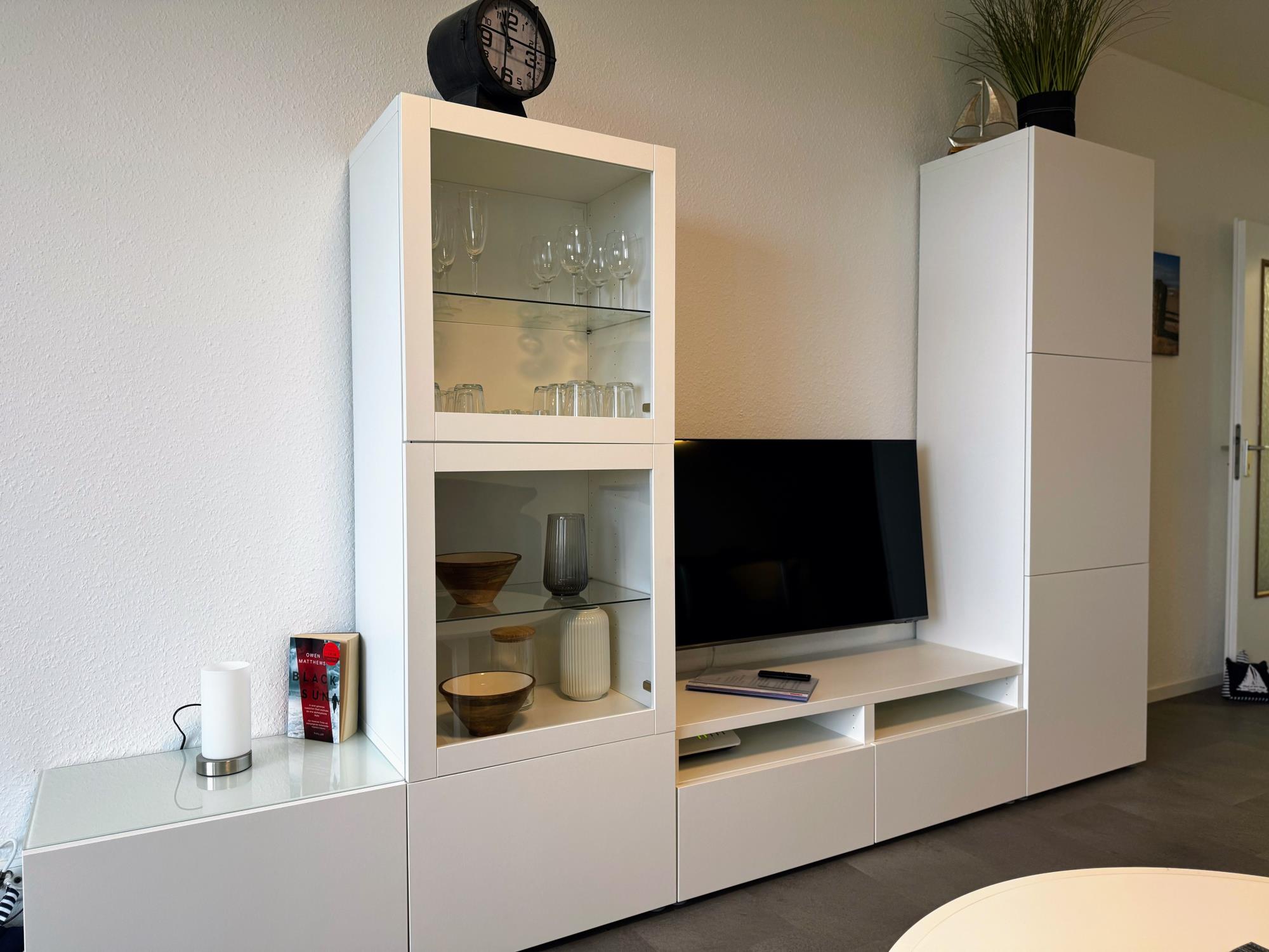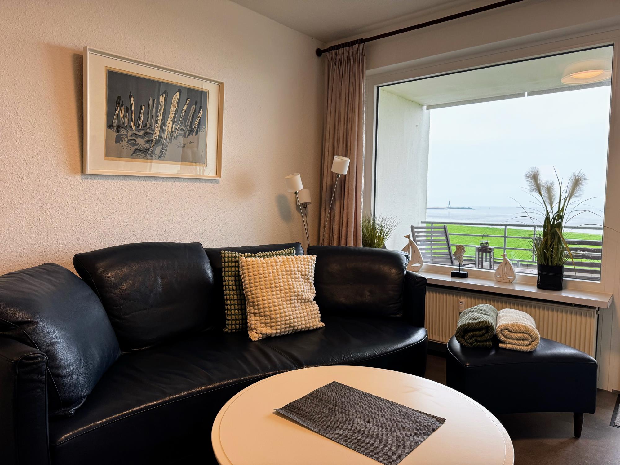 Mit dem Fahrstuhl erreichen Sie Ihre Wohnung ganz bequem. Der helle Wohnbereich bietet eine gemütliche Couch, einen modernen SMART-TV und natürlich schnelles Gigabit-WLAN. In der offenen Wohnküche finden Sie alles, was Sie brauchen – von der Geschirrspülmaschine bis zur Backofen-Mikrowellen-Kombi. Vom Balkon aus genießen Sie bei einer Tasse Kaffee oder einem Glas Wein den wunderbaren Blick auf Elbe und Nordsee – maritimes Urlaubsgefühl inklusive.