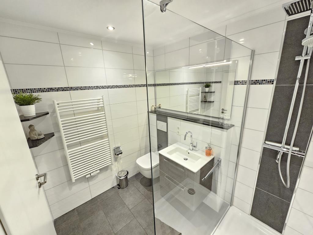 Das Badezimmer wurde ebenfalls komplett modernisiert und verfügt über eine Walk-In-Dusche, ein WC und einen Föhn. Selbstverständlich steht Ihnen in der gesamten Wohnung kostenloses WLAN zur Verfügung. Die Wohnung ist eine Nichtraucherwohnung, und direkt am Haus finden Sie Parkmöglichkeiten.