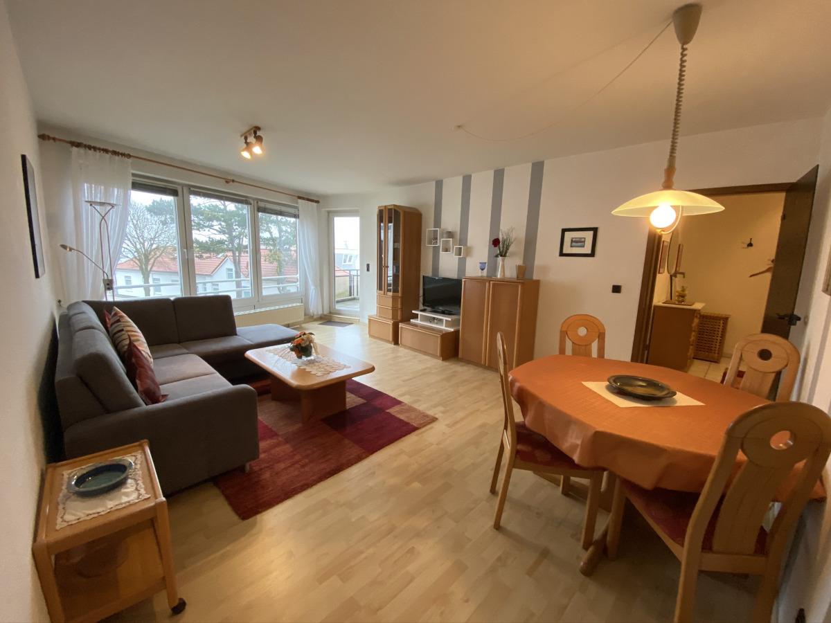 Die Ferienwohnung 29 im Haus Meeresbrandung in Cuxhaven‑Duhnen ist eine großzügige und komfortable 2‑Raum‑Wohnung, die Ihnen alles bietet, was Sie für einen erholsamen Nordseeurlaub benötigen. Der offene Wohn‑ und Essbereich ist hell gestaltet und bietet direkten Zugang zum Balkon, von dem aus Sie eine wunderschöne volle Seesicht genießen können – sowohl vom Wohnzimmer als auch vom Balkon haben Sie freien Blick auf die Nordsee, das Strandleben und das Wattenmeer.
