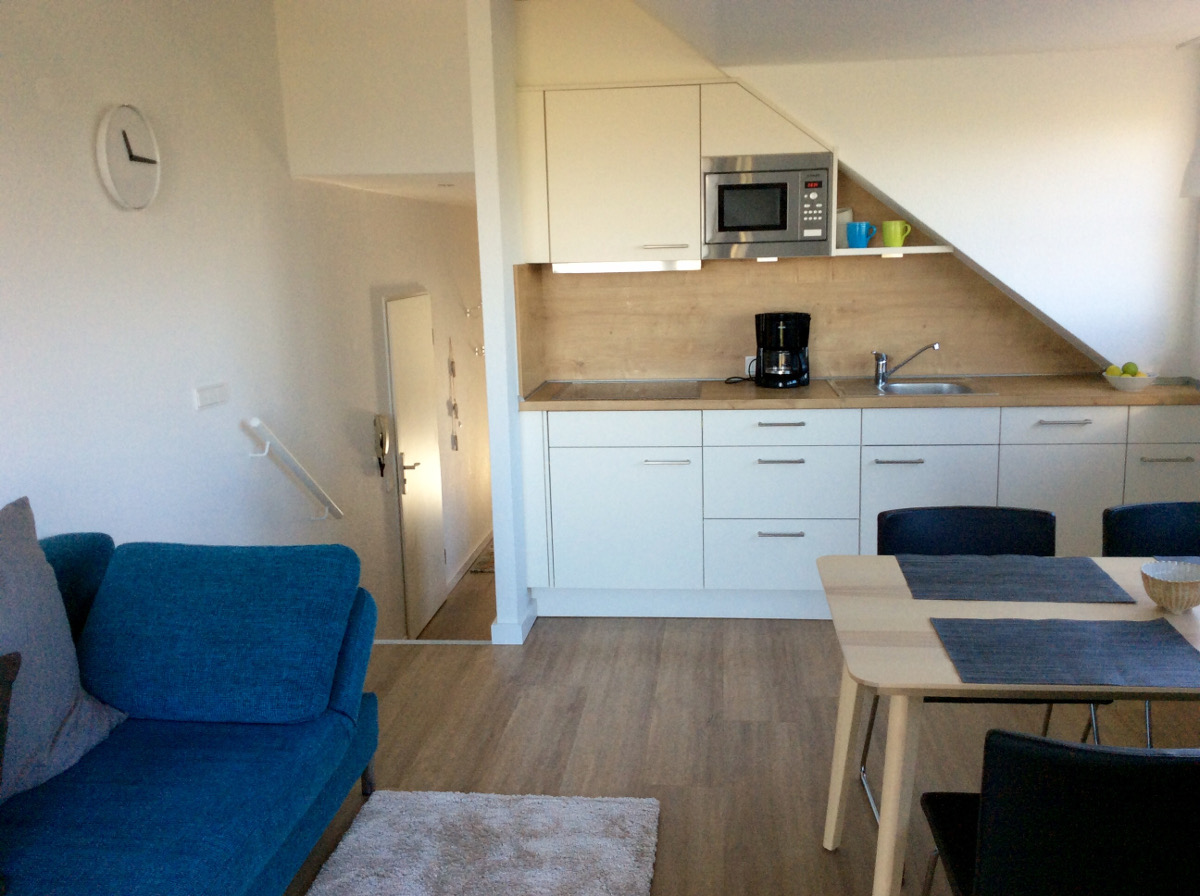 Die Wohnung verfügt über ein helles Wohnzimmer mit integrierter Küchenzeile, das zum Wohlfühlen einlädt. Zwei separate Schlafzimmer sorgen für erholsame Nächte: • Ein Schlafzimmer ist mit einem komfortablen Doppelbett (180 × 200 cm) ausgestattet. • Das zweite Schlafzimmer verfügt über zwei Einzelbetten (je 90 × 200 cm) – perfekt für Kinder, Freunde oder mitreisende Familienmitglieder.