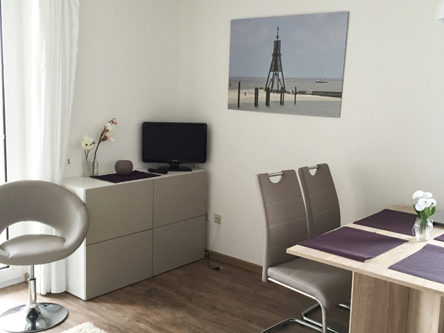 Die Ferienwohnung 5 im Haus Nordseedüne, gelegen im beliebten Dünenweg 9 in Cuxhaven‑Duhnen, bietet Ihnen auf komfortable Weise alles, was Sie für einen erholsamen Nordseeurlaub benötigen. Die modern eingerichtete Wohnung verfügt über ein helles Wohnzimmer mit moderner Küchenzeile, ideal für gemütliche Kochabende oder entspannte Stunden nach einem Tag am Strand.
