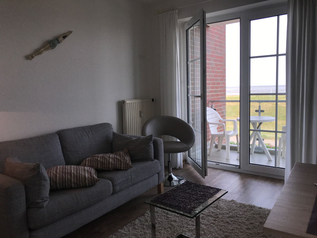Das gepflegte Duschbad bietet modernen Komfort. Ein besonderes Highlight ist der Balkon mit voller Seesicht, von dem aus Sie den Blick auf die Nordsee genießen können – ideal für ein Frühstück mit Meerblick oder entspannte Abendstunden.