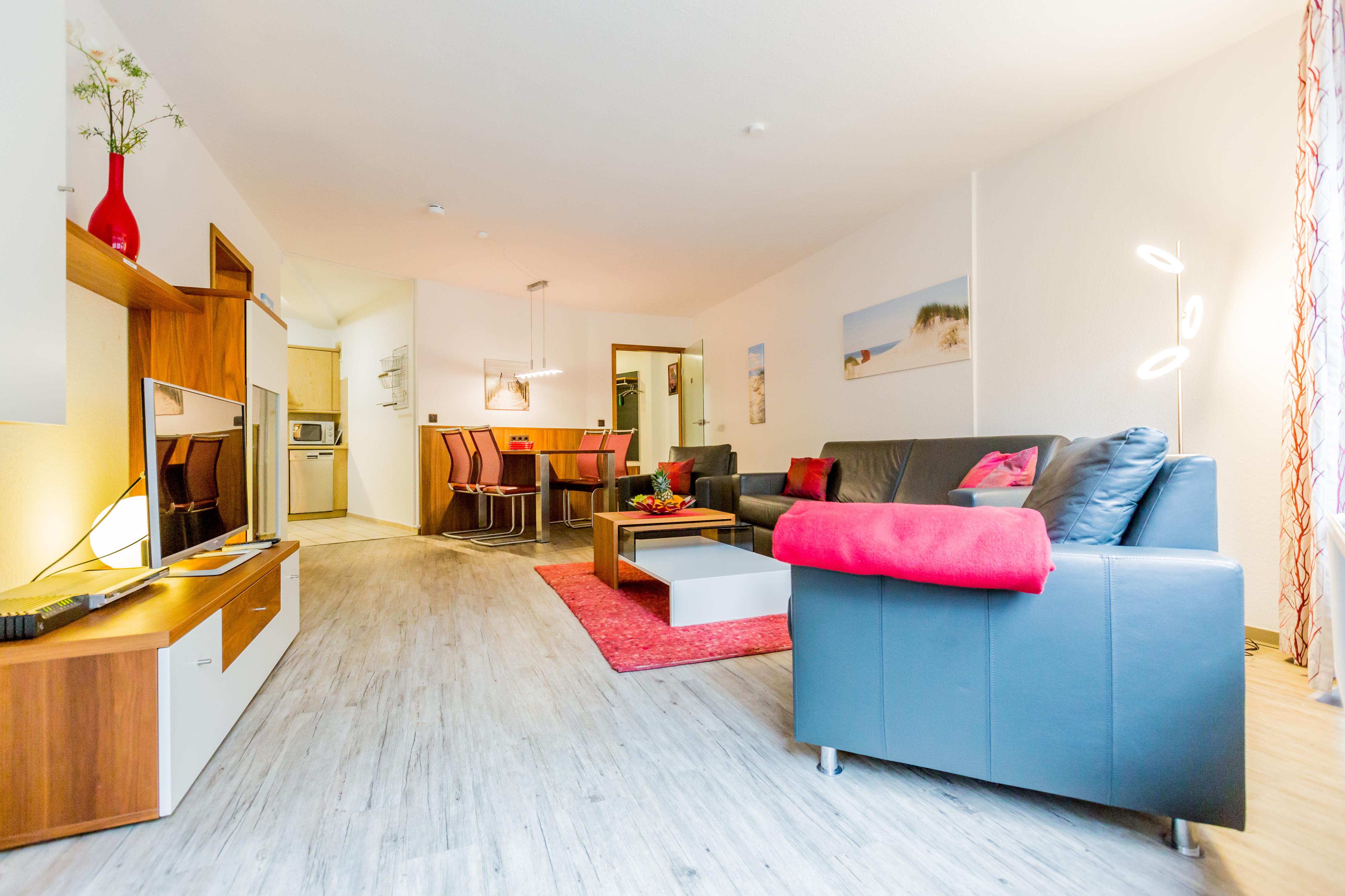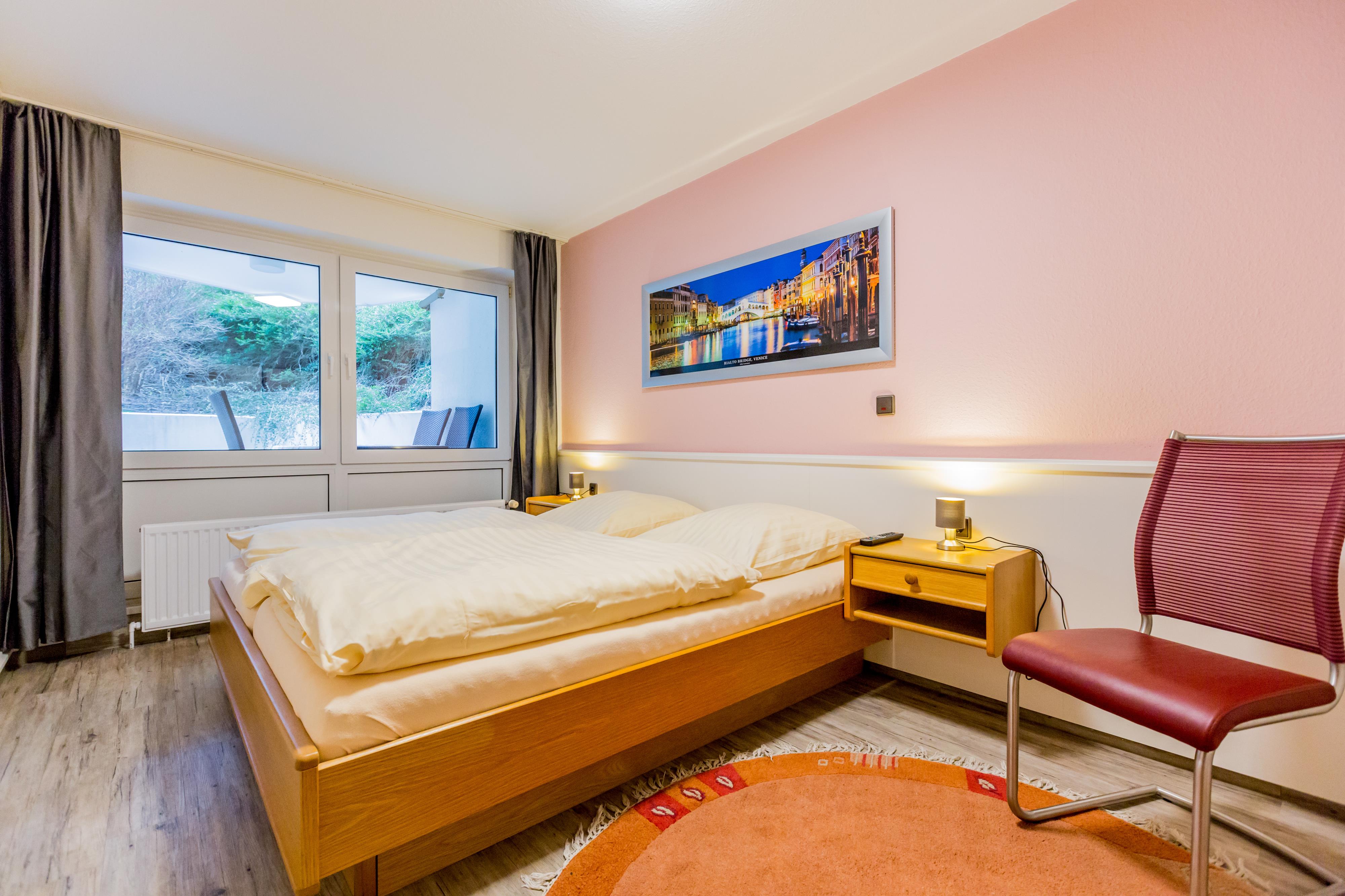 Diese schöne 2-Zimmer-Souterrain-Wohnung ist perfekt für einen Urlaub mit bis zu 4 Personen geeignet. Vom großen Wohnzimmer mit integriertem Essplatz kommen Sie direkt auf eine 20 m² West – Terrasse. Die schöne Wohnung verfügt über eine eigene Küche mit Geschirrspüler und allem was sie zum Kochen benötigen. Anschließend an den Wohnraum befindet das gemütliche Schlafzimmer mit einem Doppelbett und Kleiderschrank und TV. Ein neues geräumiges Duschbad mit bodentiefer Dusche und WC steht zur Verfügung. Die Wohnung ist mit hochwertigen PVC – Laminatboden versehen. Ein nicht reservierter Stellplatz steht auf dem Grundstück zur Verfügung ! Wlan ist Standard !