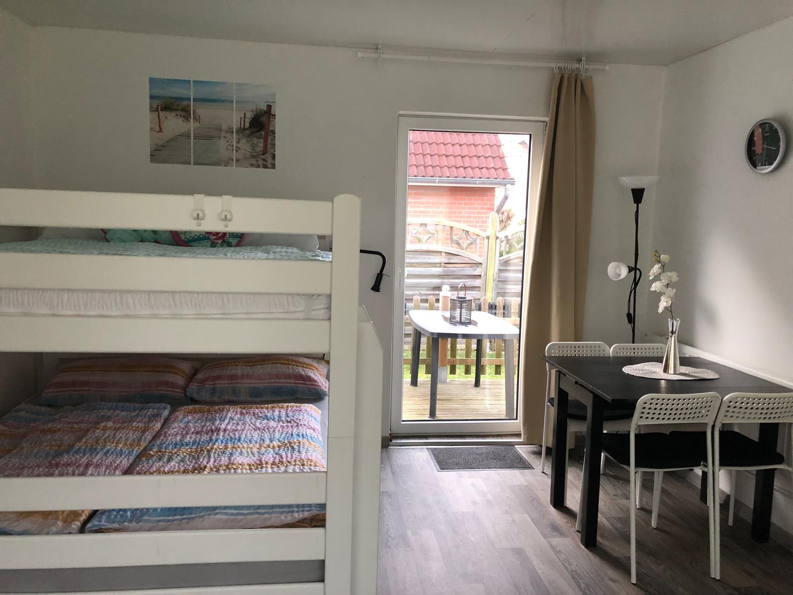 Sie wohnen in einer kleinen Bungalow Anlage mit 3 Ferienwohnungen und eigener Terasse. Sie bietet idealerweise Platz für 2 Erwachsene und 2 Kinder.