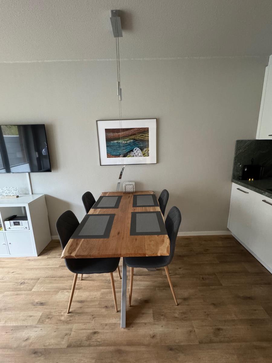 Das Haus "Seeadler", Häfchenweg 10, befindet sich nicht weit vom Deich und Strand entfernt in einer ruhigen Nebenstrasse. Sie haben ein Wohnzimmer mit offener Küchenzeile, ein Duschbad und ein Schlafzimmer. Die moderne Küchenzeile ist ausgestattet mit einem Backofen, einem Induktionskochfeld, einem Kühlschrank mit Gefrierfach, einer Geschirrspülmaschine, einem Toaster, einem Wasserkocher und zwei Kaffeemaschinen. Eine Filter-Kaffeemaschine und eine Nespresso-Kaffeemaschine. Im Wohn und Essbereich haben Sie ein gemütliches Sofa, einen Smart- Fernseher, ein Esstisch mit 4 Stühlen und einem Radio. Vom Wohnzimmer aus kommen Sie zu der zugehörigen Südterrasse. Das Schlafzimmer verfügt über ein Boxspringbett 180x200cm, einem Kleiderschrank mit Kleiderbügeln, einer Kommode, zwei Nachttische sowie einen Smart-Fernseher. Für die warmen Monate (Mai bis Oktober) steht Ihnen ein Strandkorb am Sandstrand Duhnens kostenfrei zur Verfügung. Das Badezimmer verfügt über eine Dusche, ein Waschbecken, ein Haartrockner, ein WC . Weitere Ausstattungsmerkmale sind : Bügeleisen + Bügelbrett, Rolläden im Wohn- und Schlafzimmer, Sichtschutz (Plissees) im Schlafzimmer + Insektenschutz und ein Wäscheständer. Generell steht im Haus Seeadler allen Gästen ein Fahrradkeller, eine Waschmaschine, ein Trockner und eine Sauna gegen Münzeinwurf zur Verfügung. Für die Sicherheit der Gäste ist vor der Wohnungstür ein digitaler Türspion vorhanden.