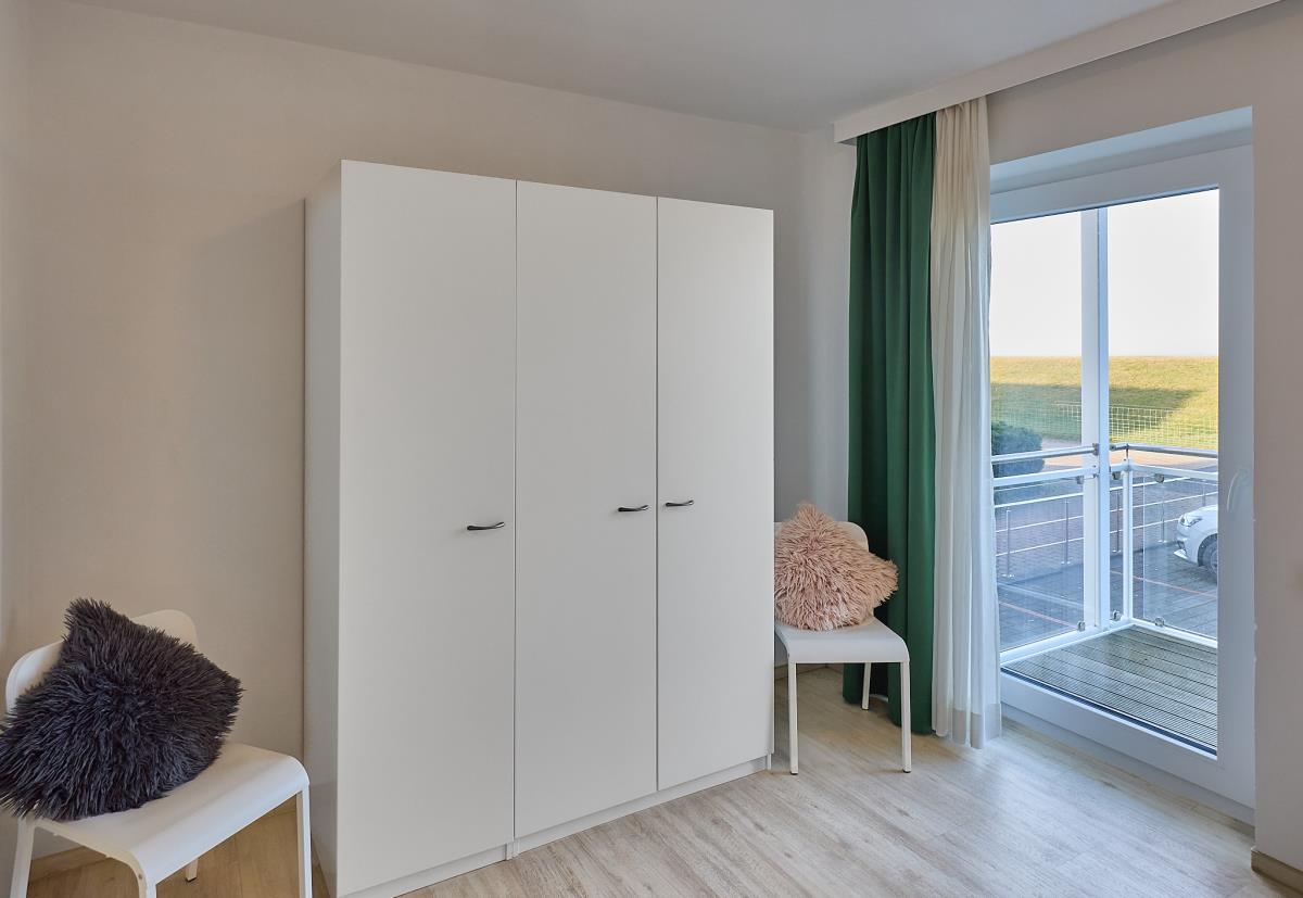 Ein besonderes Highlight dieser Wohnung ist der Balkon, von dem aus Sie – ebenso wie aus dem großen Schlafzimmer – im Stehen einen herrlichen Blick auf die Nordsee und die Insel Neuwerk genießen können. Dieser maritime Ausblick macht die Wohnung zu einem beliebten Rückzugsort für Gäste, die die Nähe zum Meer schätzen und sich nach Ruhe und Erholung sehnen.