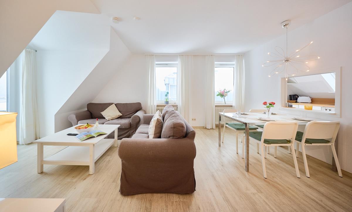 Die Villa Sonnenschein am Meer – Ferienwohnung 4 in Cuxhaven Duhnen bietet auf großzügige und lichtdurchflutete Weise alles, was man sich für einen erholsamen Urlaub an der Nordsee wünscht. Die Ferienwohnung verfügt über zwei separate Schlafzimmer, einen gemütlichen Wohnbereich mit integrierter Küchenzeile sowie zwei Balkone, die Ihnen ein ganz besonderes Urlaubserlebnis ermöglichen. Die Wohnung ist ideal für bis zu vier Personen und eignet sich perfekt für Paare, Familien oder Freunde, die eine strandnahe und komfortable Unterkunft suchen.