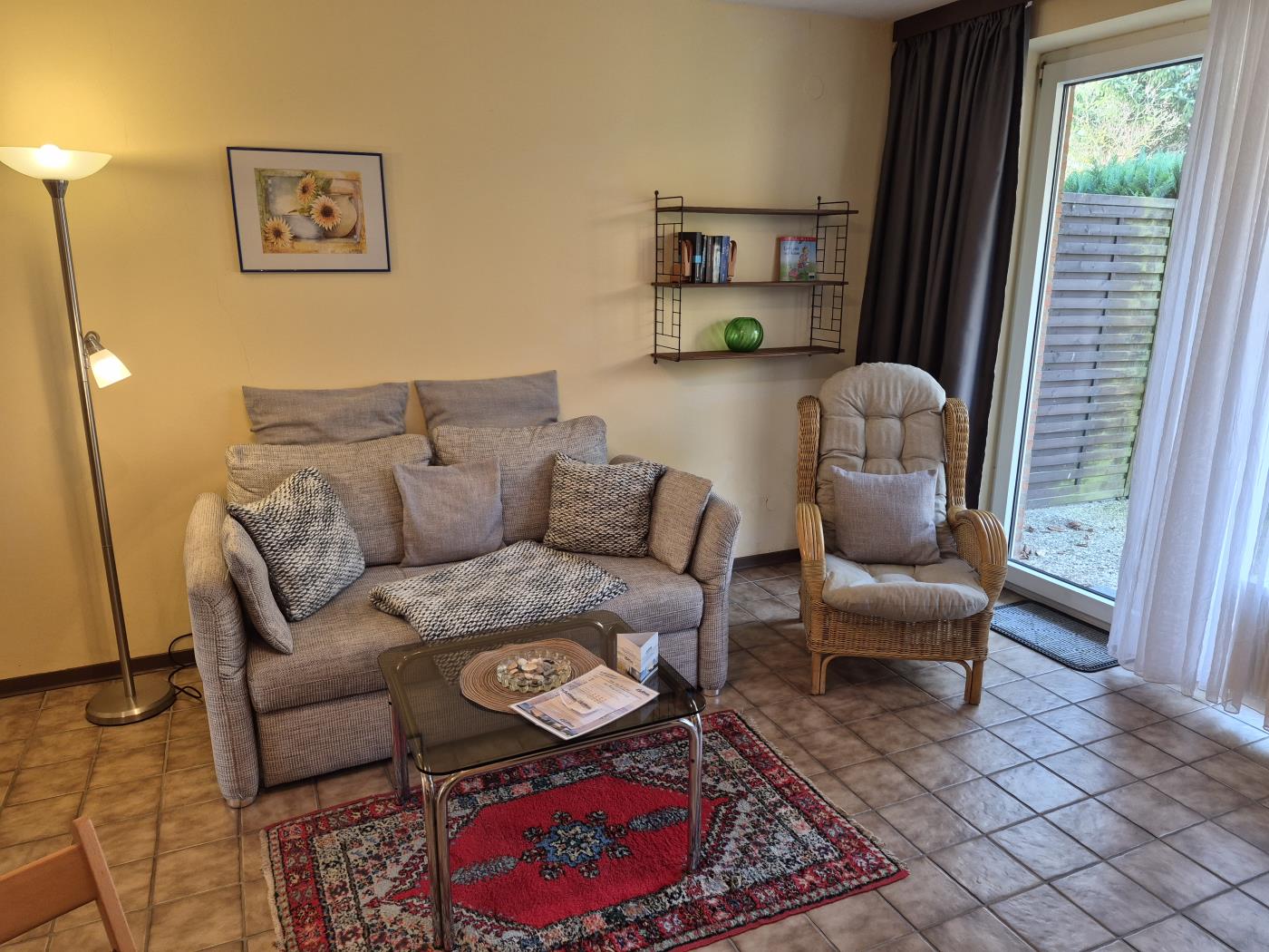 Die Ferienwohnung liegt ca. 200m vom Strand entfernt. Die Ferienwohnung besteht aus: Wohnschlafraum mit Doppelbettcouch, Küchenzeile, Essecke, Farb-TV, Terrasse, Schlafzimmer mit Doppelbett, Dusche, WC. Lage: An der Aue 4d, Parterre, Tiefgaragenplatz Nr. 02