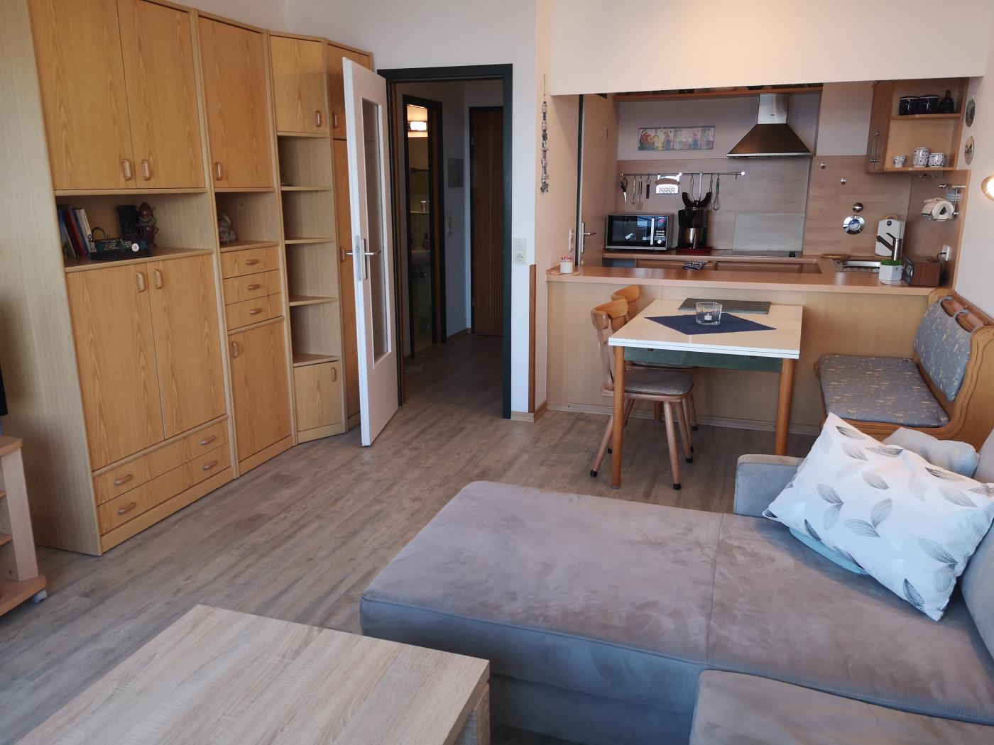 Das Appartementhaus Strandhotel liegt unmittelbar hinter dem Deich in absoluter Strandnähe. Im Haus befinden sich ein Schwimmbad, Sauna, Waschmaschine und Trockner gegen Gebühr. Mit dem Fahrstuhl oder auch mit der Treppe kommen Sie in jede Etage. Die Wohnung 61 befindet sich in der 5. Etage und hat herrlichen Seeblick. Das Wohnzimmer hat eine gemütliche Sitzecke, welche man zu einer Schlafmöglichkeit wandeln kann, Essecke und natürlich einen Balkon. Im Schlafzimmer befindet sich zwei Einzelbetten. Die Küche ist ausgestattet mit Geschirrspüler etc. und hat eine Durchreiche zum Essbereich im Wohnzimmer. Dusche/WC und Parkplatz