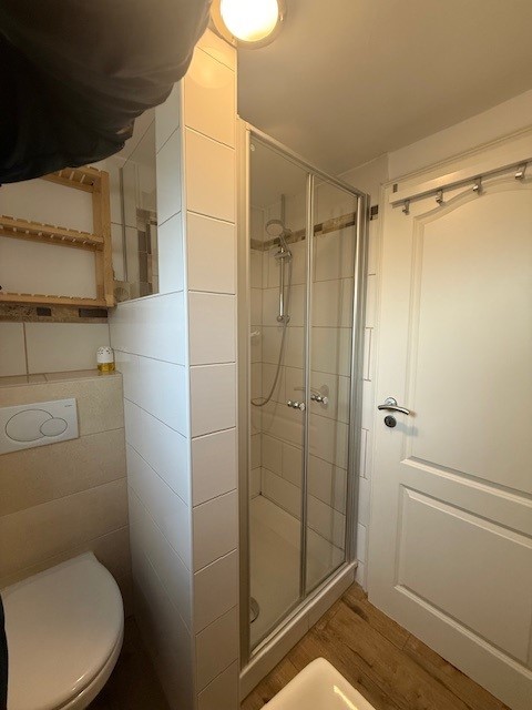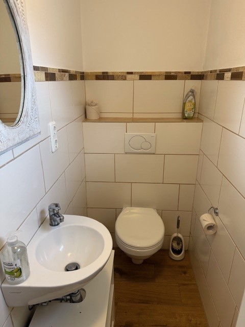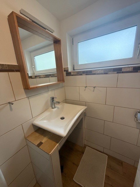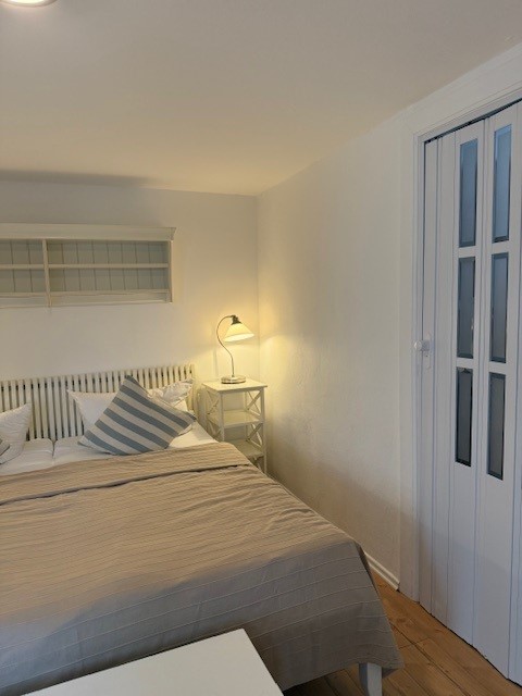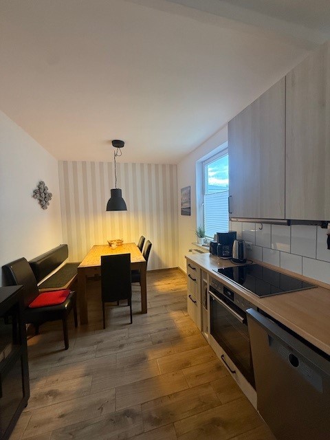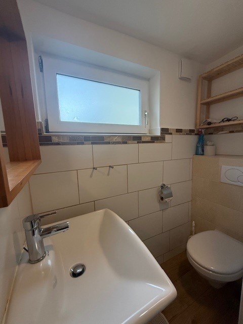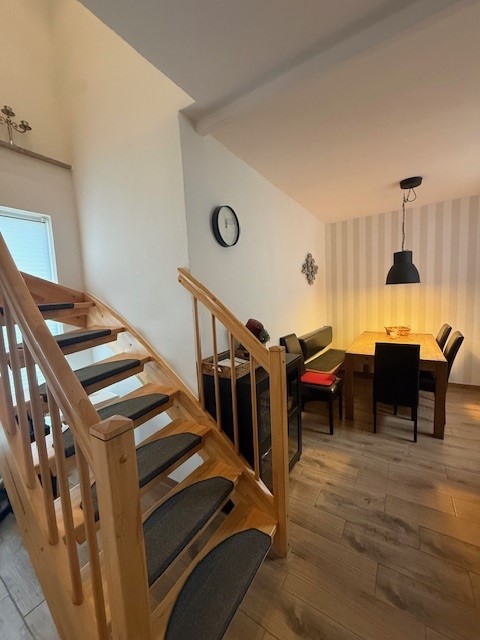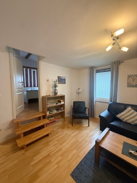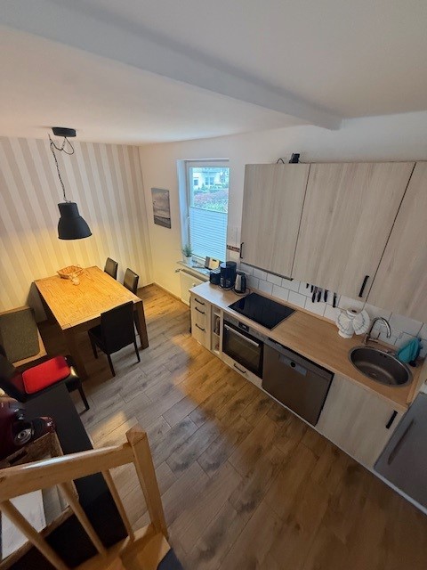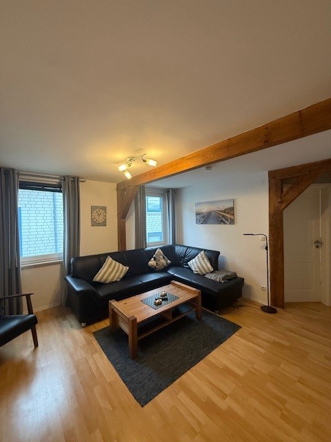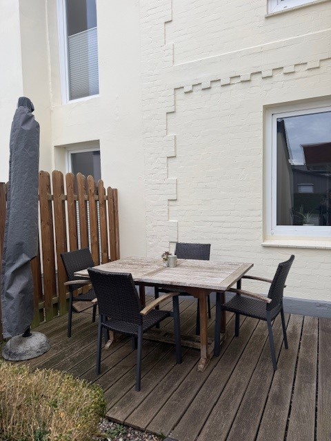 Die Ferienwohnung " Strandperle " ist wie folgt aufgeteilt. Im Eingangsbereich befindet sich ein mit kleiner Vorflur von dem Sie in das Schlafzimmer kommen. Dusche und WC und die Küche befinden sich ebenfalls im Erdgeschoß. Von der Küche aus kommen Sie ins Obergeschoß. Dort befindet sich das Wohnzimmer, das zweite Schlafzimmer mit einem Ausziehbett auf (160x200cm), das dritte Schlafzimmerund das Gäste-WC. Die Wohnung verfügt über eine Waschmaschine, W-LAN, Terrasse mit Markise und ein PKW-Stellplatz.