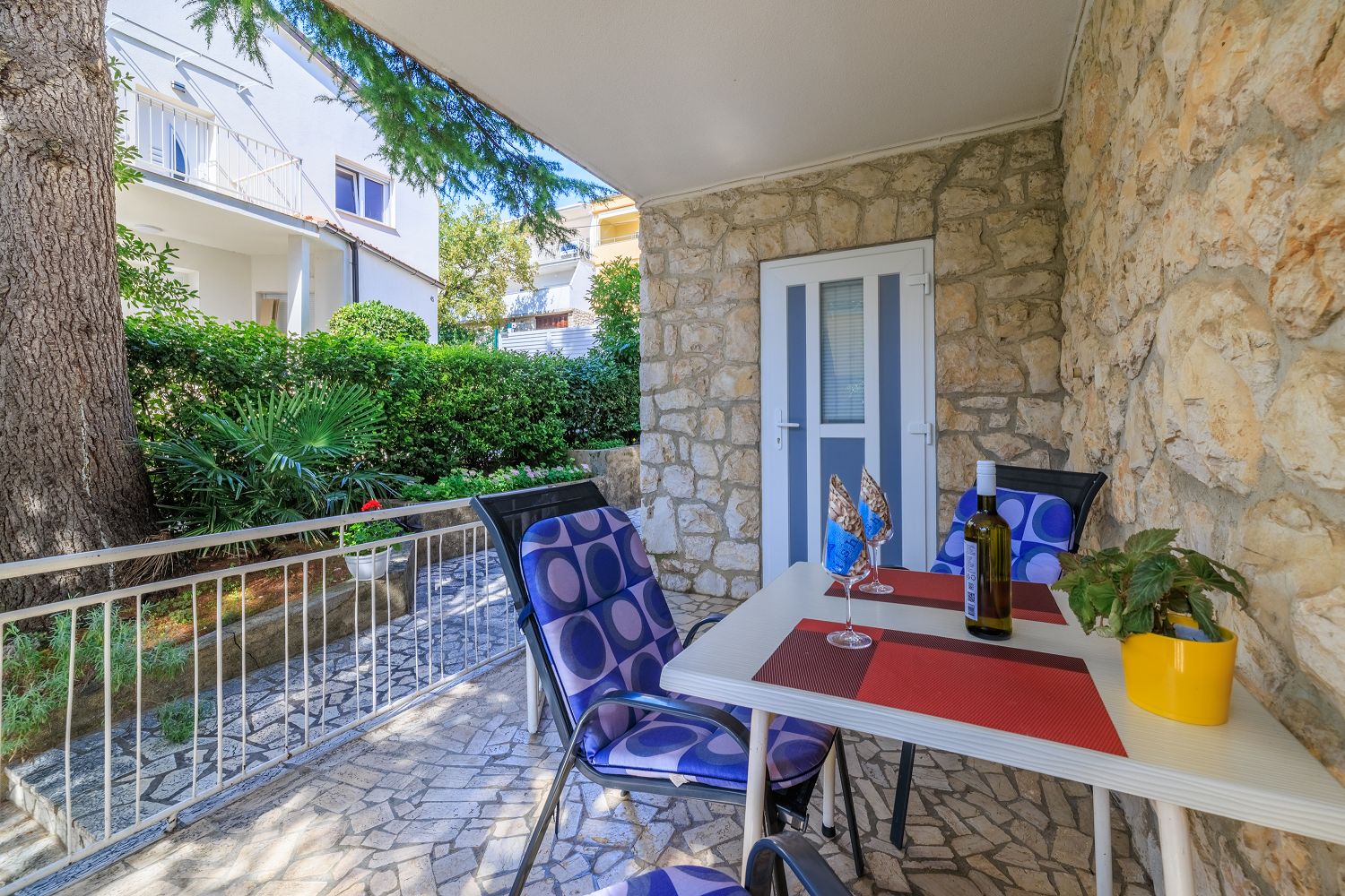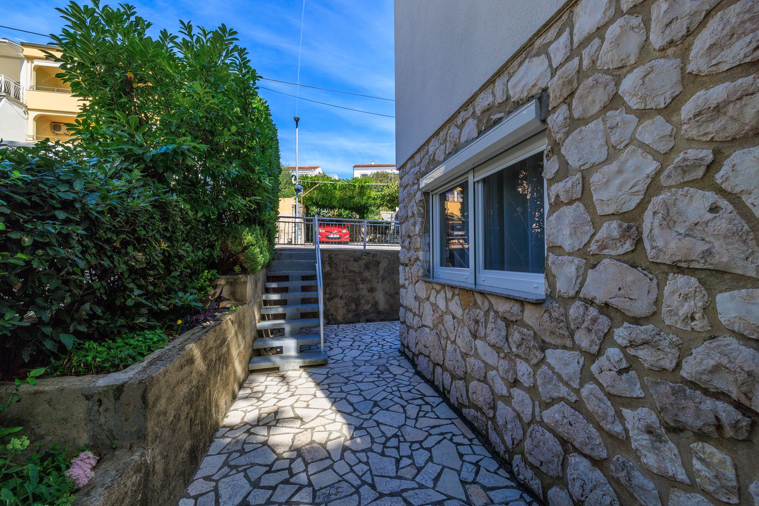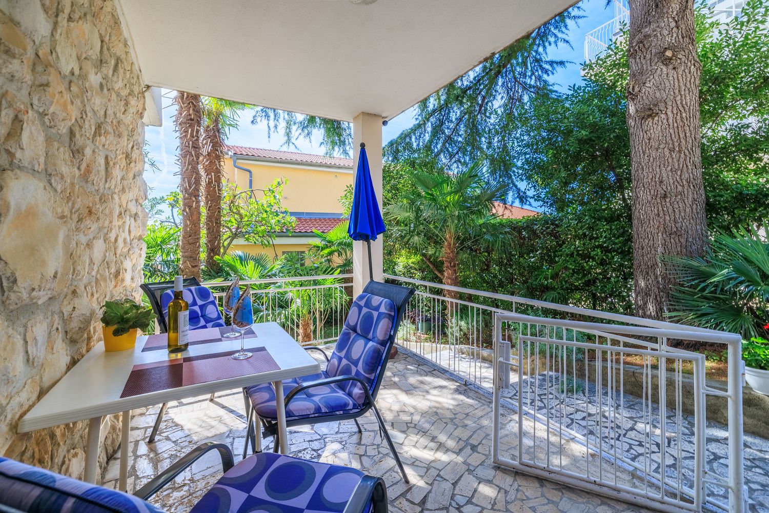 Genießen Sie Ihren Urlaub in dieser gemütlichen Ferienwohnung in Dramalj nahe Crikvenica. Die im Erdgeschoss gelegene Wohnung bietet Platz für zwei bis drei Personen. Von der überdachten Terrasse aus haben Sie einen wunderschönen Blick auf das Meer und den mediterranen Garten. Hier können Sie entspannte Stunden im Freien verbringen. Die klimatisierte Unterkunft ist geschmackvoll eingerichtet und verfügt über eine voll ausgestattete Küche mit Essbereich, ein komfortables Schlafzimmer sowie eine zusätzliche Schlafmöglichkeit. Ein privater Parkplatz steht Ihnen direkt am Haus zur Verfügung. Die Lage ist perfekt: Nur 250 Meter trennen Sie vom kristallklaren Meer und den schönen Stränden der Kvarner Bucht. Einkaufsmöglichkeiten, Restaurants und Freizeitangebote befinden sich in der Nähe. Erleben Sie Erholung und Komfort in dieser idyllischen Ferienwohnung – wir freuen uns auf Ihren Besuch!
