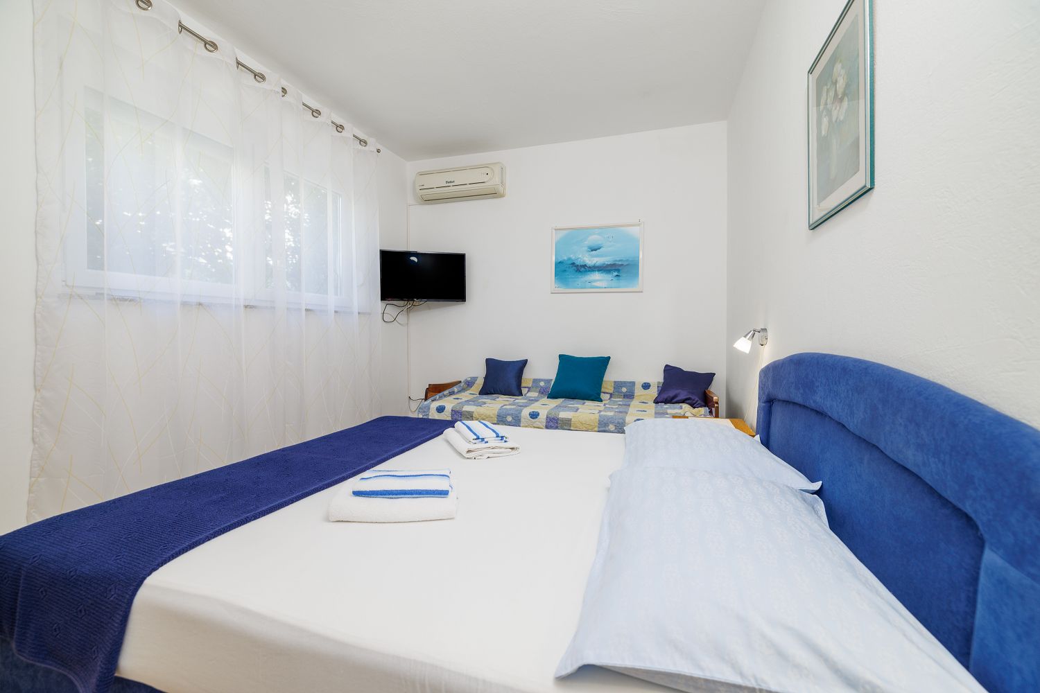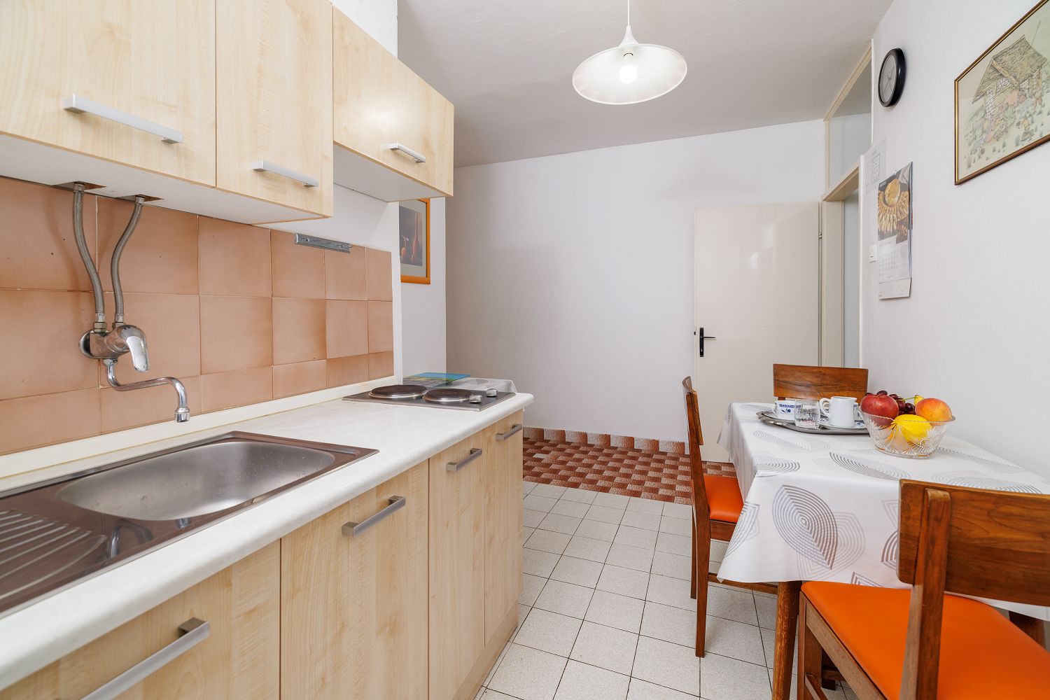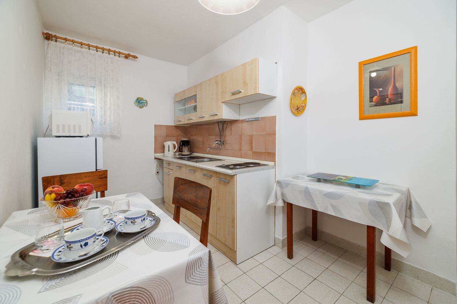 Genießen Sie Ihren Urlaub in dieser gemütlichen Ferienwohnung in Dramalj nahe Crikvenica. Die im Erdgeschoss gelegene Wohnung bietet Platz für zwei bis drei Personen. Von der überdachten Terrasse aus haben Sie einen wunderschönen Blick auf das Meer und den mediterranen Garten. Hier können Sie entspannte Stunden im Freien verbringen. Die klimatisierte Unterkunft ist geschmackvoll eingerichtet und verfügt über eine voll ausgestattete Küche mit Essbereich, ein komfortables Schlafzimmer sowie eine zusätzliche Schlafmöglichkeit. Ein privater Parkplatz steht Ihnen direkt am Haus zur Verfügung. Die Lage ist perfekt: Nur 250 Meter trennen Sie vom kristallklaren Meer und den schönen Stränden der Kvarner Bucht. Einkaufsmöglichkeiten, Restaurants und Freizeitangebote befinden sich in der Nähe. Erleben Sie Erholung und Komfort in dieser idyllischen Ferienwohnung – wir freuen uns auf Ihren Besuch!