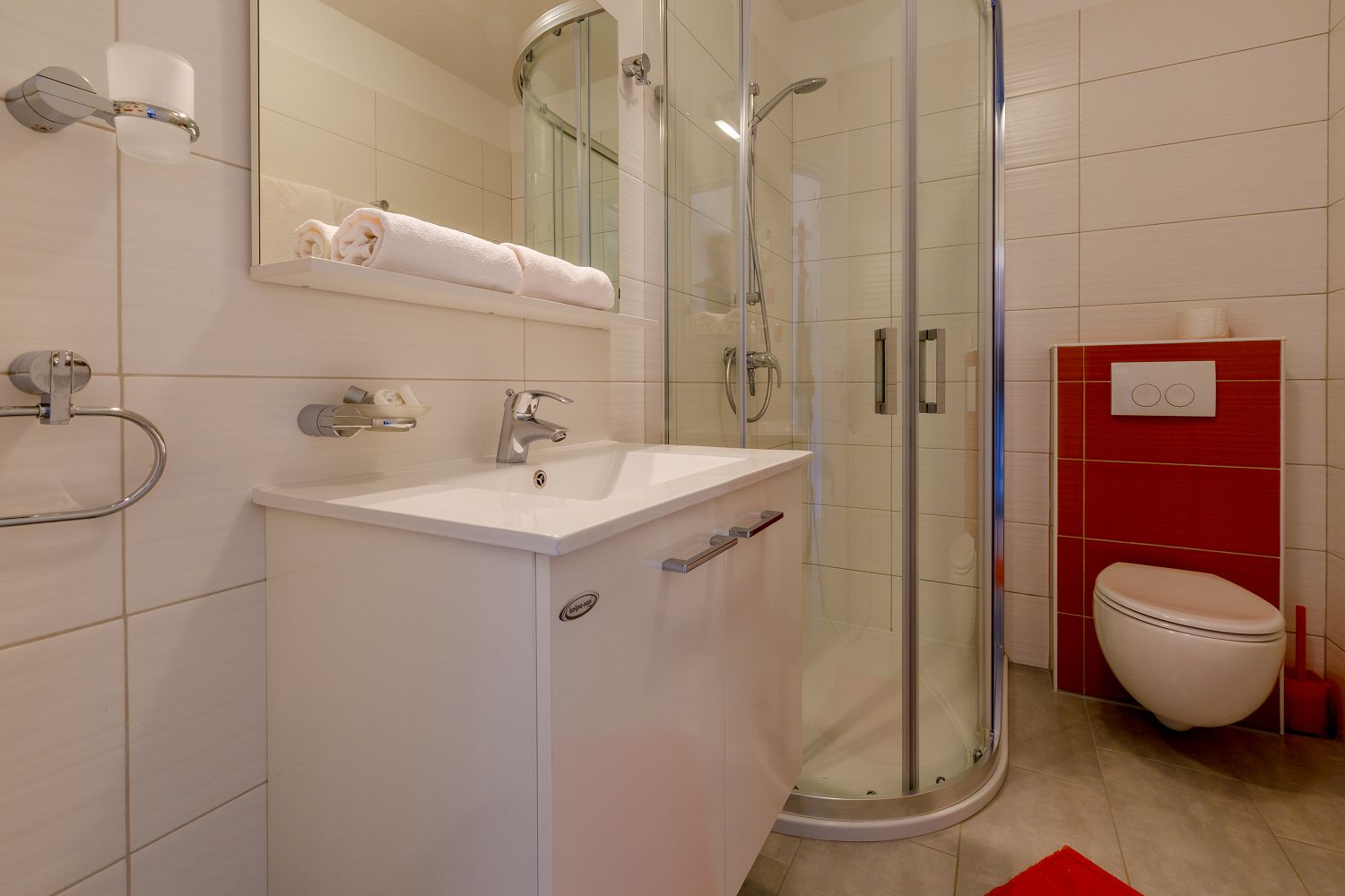 Das Highlight dieses Hauses ist die Dachterrasse mit Wellnessoase, die drei beheizte Whirlpools, Sonnenliegen, eine Sauna und zwei Loungeecken bietet. Diese kann man zwei Stunden am Tag gratis nutzen.
