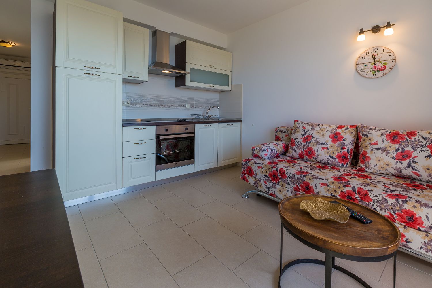 Alle Möbel sind qualitativ hochwertig und modern. Die Wohnung besteht aus einem Wohn-/Esszimmer mit Küche, einem Schlafzimmer, einem Badezimmer, dem Eingangsbereich und zwei sehr schönen Balkonen.